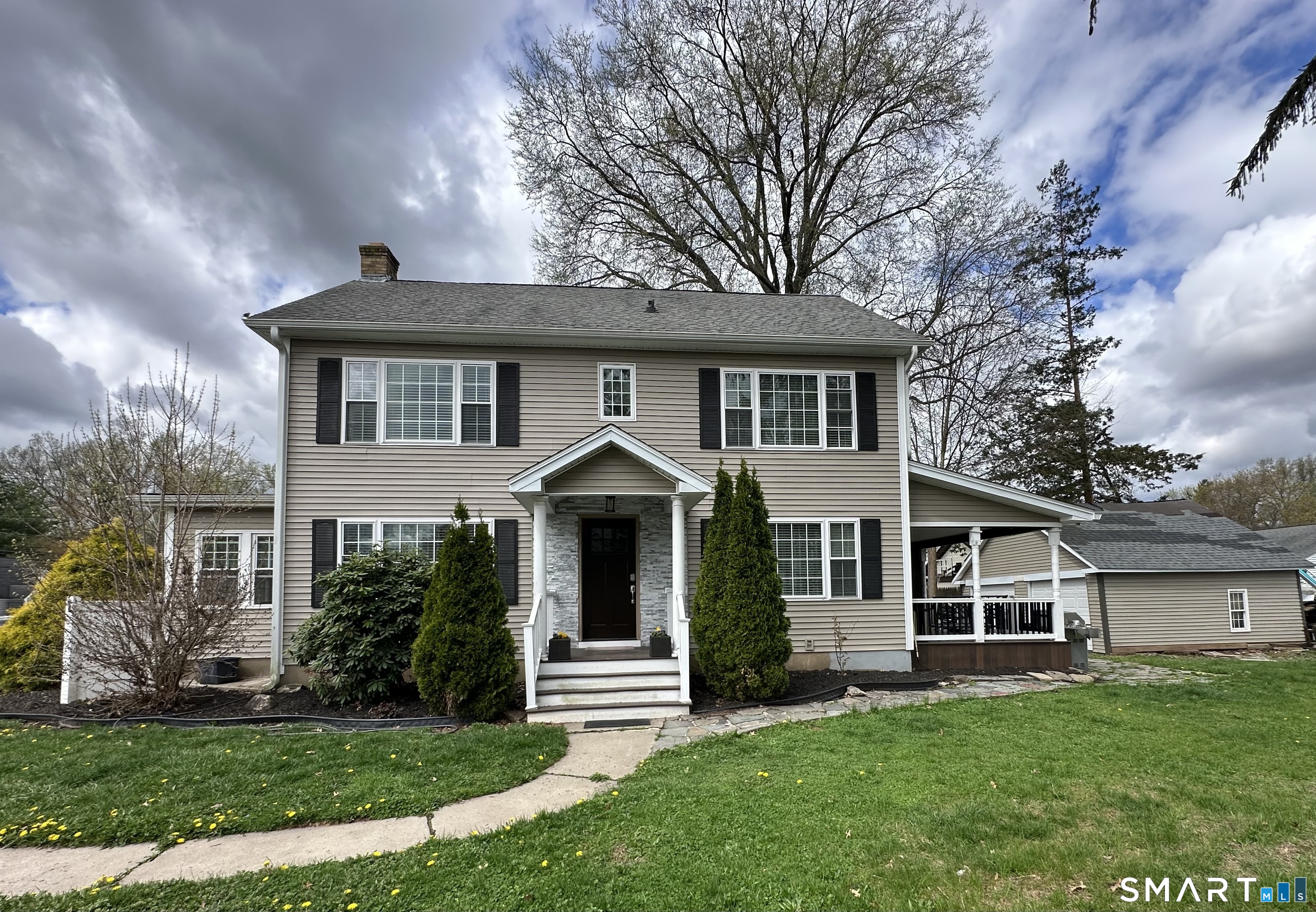 8-room Colonial offering timeless charm and modern updates. This home features 4 bedrooms, 1 1/2 baths, a welcoming foyer, and a cozy fireplace. The sun room has heat and central air, providing year-round enjoyment. The large kitchen boasts maple cabinetry, granite counter tops, and is fully equipped with all stainless appliances. Hardwood floors run throughout the home, adding warmth and continuity. Additional highlights include forced hot air heating with central air conditioning, a spacious dining area with sliders leading to a large rear porch, and a fenced-in yard ideal for outdoor enjoyment. The property sits on a desirable corner lot and includes a two-car garage. All major mechanical systems have been updated within the last four years, offering peace of mind for the next owner.