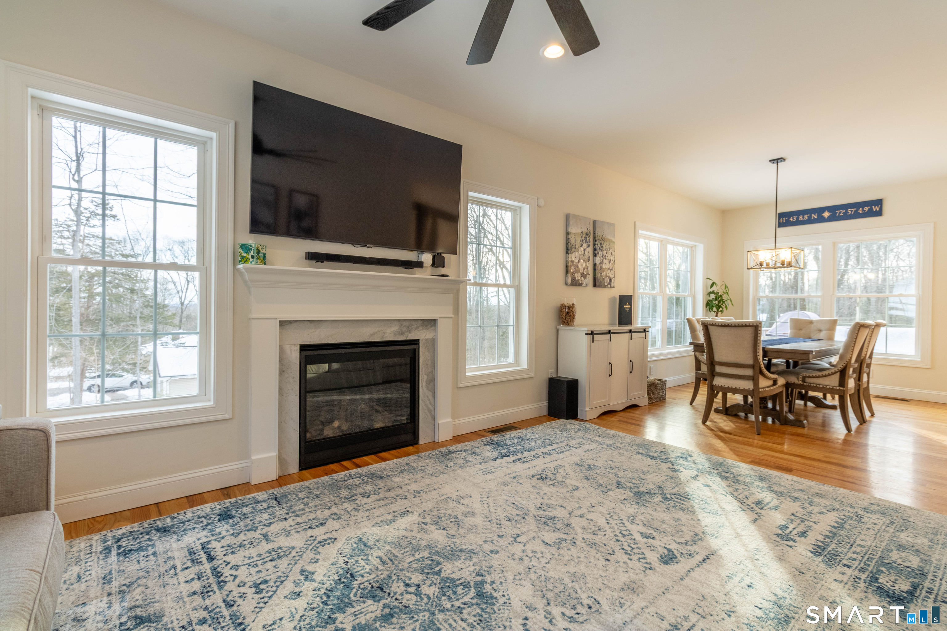 Welcome to this beautifully maintained 3-year Colonial-style home offering timeless design and modern luxury throughout. Featuring 4 bedrooms & 2.5 baths, this home showcases hardwood floors throughout, 9-foot ceilings on every level, and a bright, open floor plan ideal for todays living. The chef's delight kitchen is the heart of the home, complete with quartz countertops, stainless steel appliances, a generous breakfast bar and seamless flow into the dining area. Sliders lead to a deck overlooking a private, tree lined backyard. The fireplaced living room adds warmth and charm with lots of generous sized windows. Upstairs, enjoy the convenience of a second-floor laundry area. The primary suite is spacious and inviting, featuring a walk in closet and private bath. All bathrooms are finished with granite countertops. The remaining bedrooms are impressively sized with large closets. The full unfinished basement has exceptional potential, with 9-foot ceilings, large windows, and walk out sliders. Just waiting for the new owners to add a rec/playroom. There is a third full bathroom already plumbed in. With newer systems throughout, this home provides peace of mind along with energy efficiency. This move in ready property offers the look and feel of new construction without the wait.