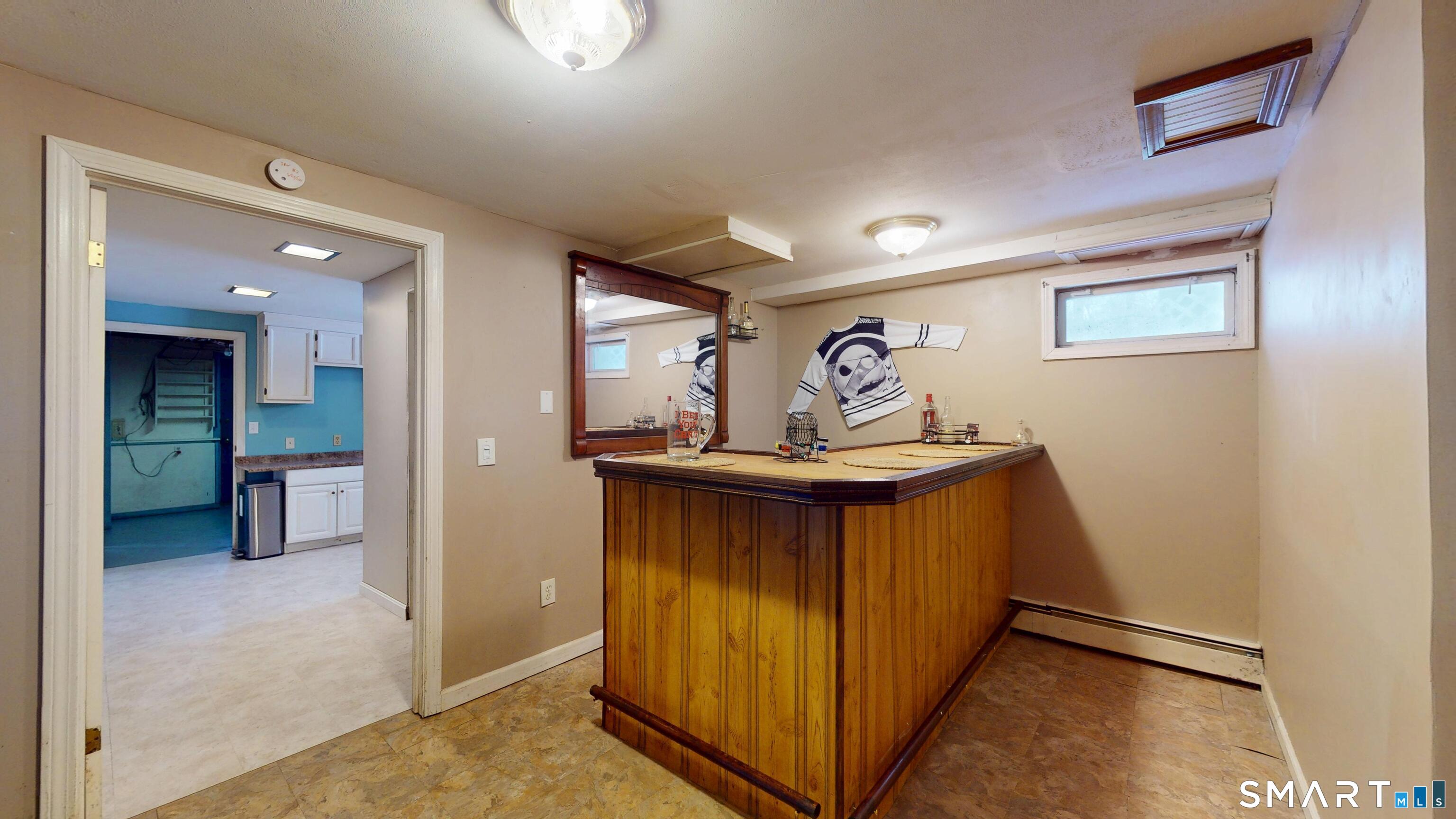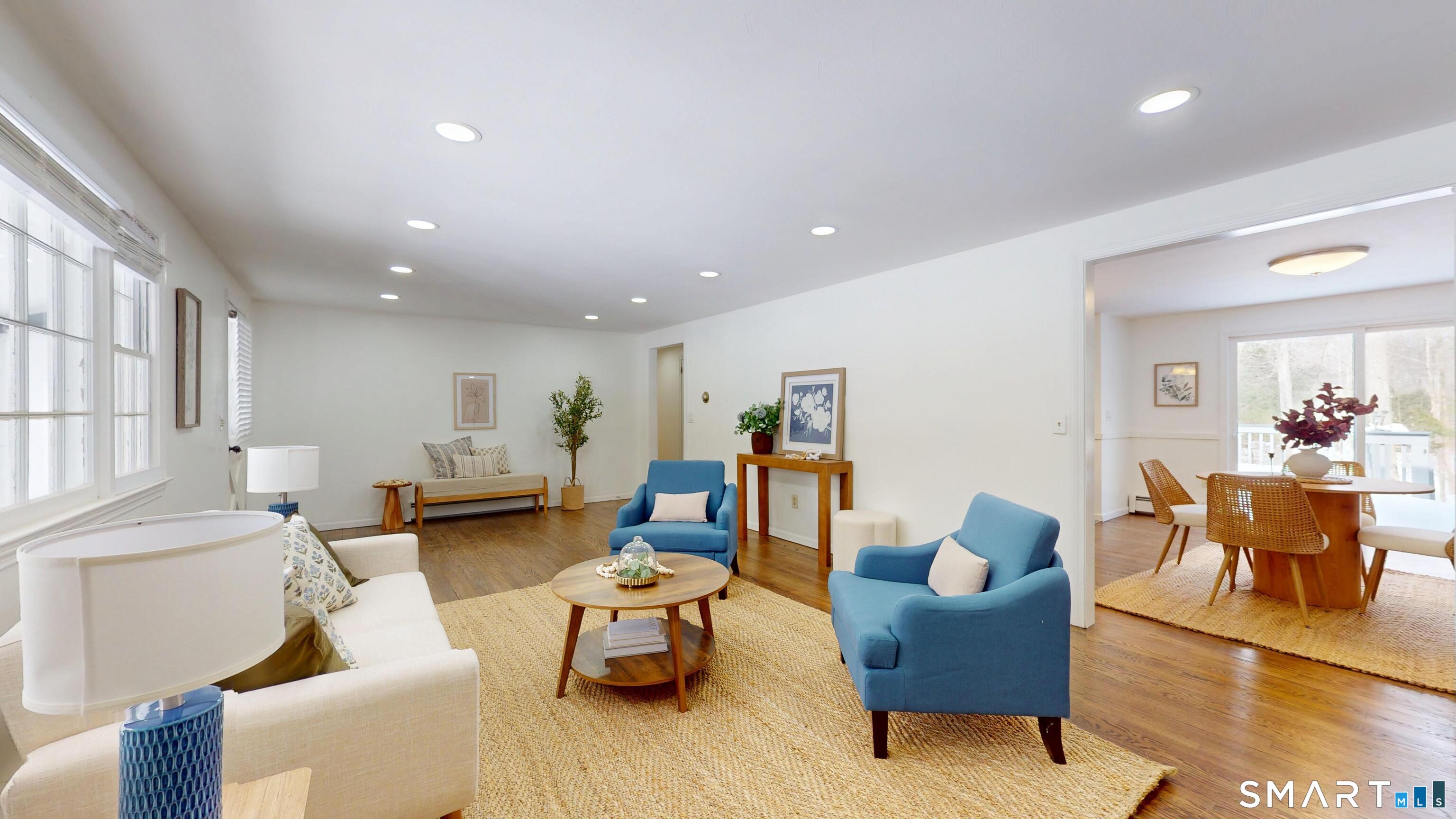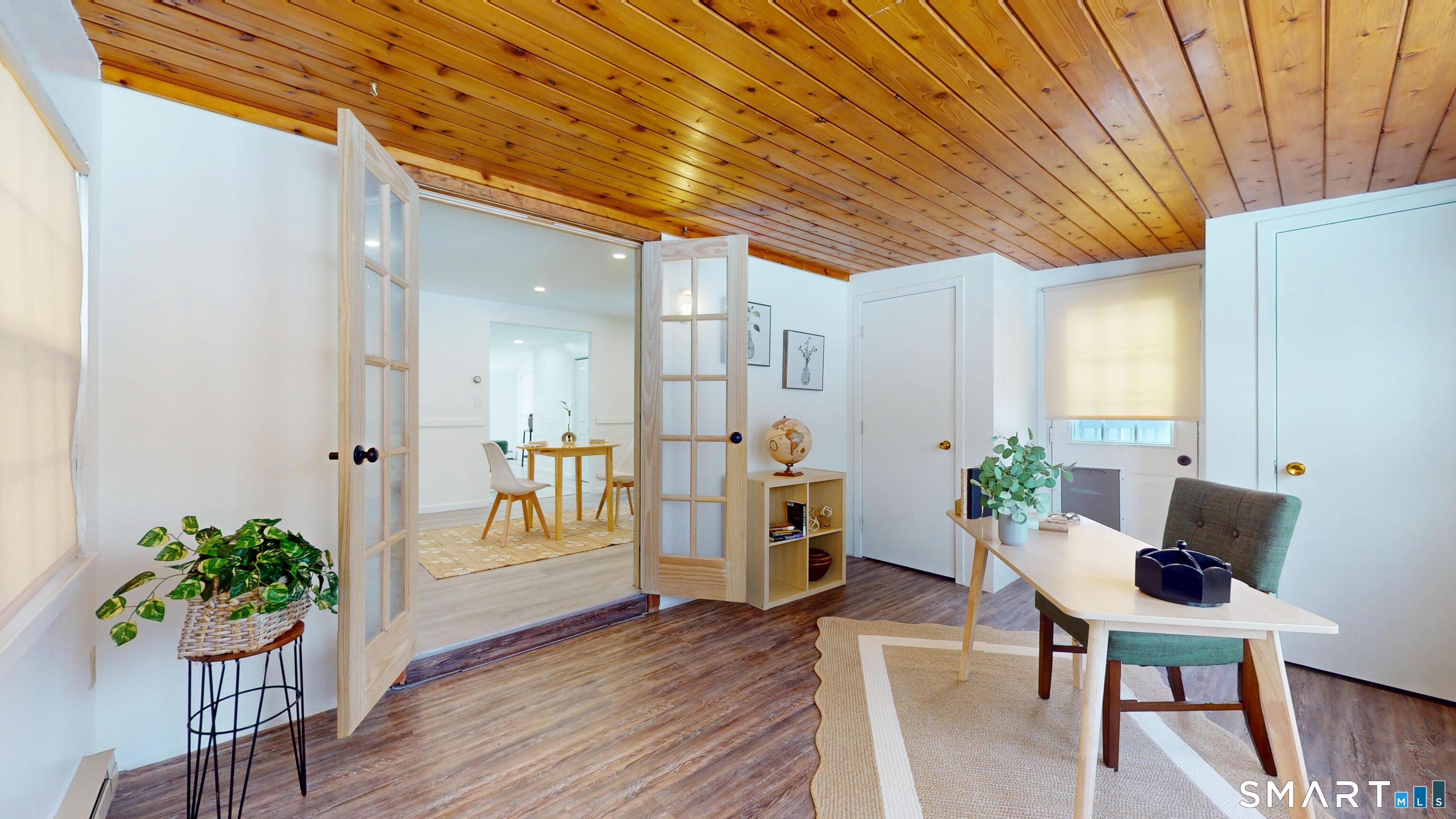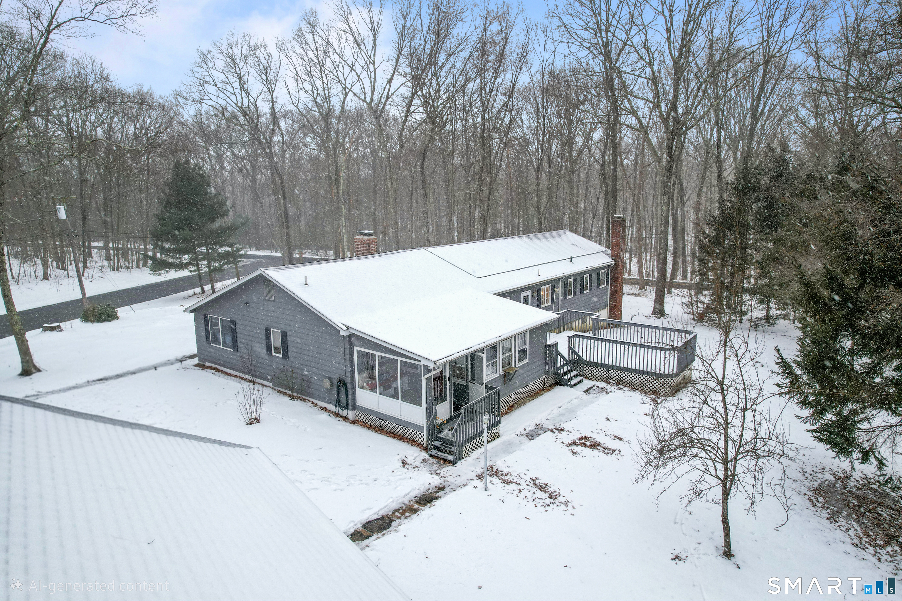 Welcome to this unique & versatile home in Marlborough, offering a rare multi-generational or income-producing layout not commonly found in the area. An enclosed front sunroom provides a welcoming space to relax and enjoy abundant natural light. The main residence offers a spacious living & dining area with a fireplace, 3 bedrooms, & 2 full bathrooms, including a primary suite with a private bath. The kitchen includes granite countertops, an under-mount sink, island with bar seating, and appliances. The main bathroom features a double vanity and flexible space for a walk-in shower or laundry hookup. The in-law suite features its own living room, dining area, kitchen, updated full bath, & 1 bedroom with the possibility of a 2nd; along with a private sun porch, entrance to the back deck, in-unit washer/dryer, updated appliances, & dedicated electrical subpanel. The hardwood flooring has been re-finished throughout, & freshly painted walls enhance the move-in-ready feel. The finished lower level adds valuable living space with a half bath, fireplace, kitchenette, washer/dryer hookup, workout room, and walk-out access. Highlights include a generator hookup in place, newer roof (2022), newer well system (2022), oversized deck wired for a hot tub, tin storage shed, and an oversized 2-car garage with walk-up storage. Situated on 1.4 acres on a cul-de-sac, the home borders state forest and offers access to hiking trails, convenient access to local beach, & much more!