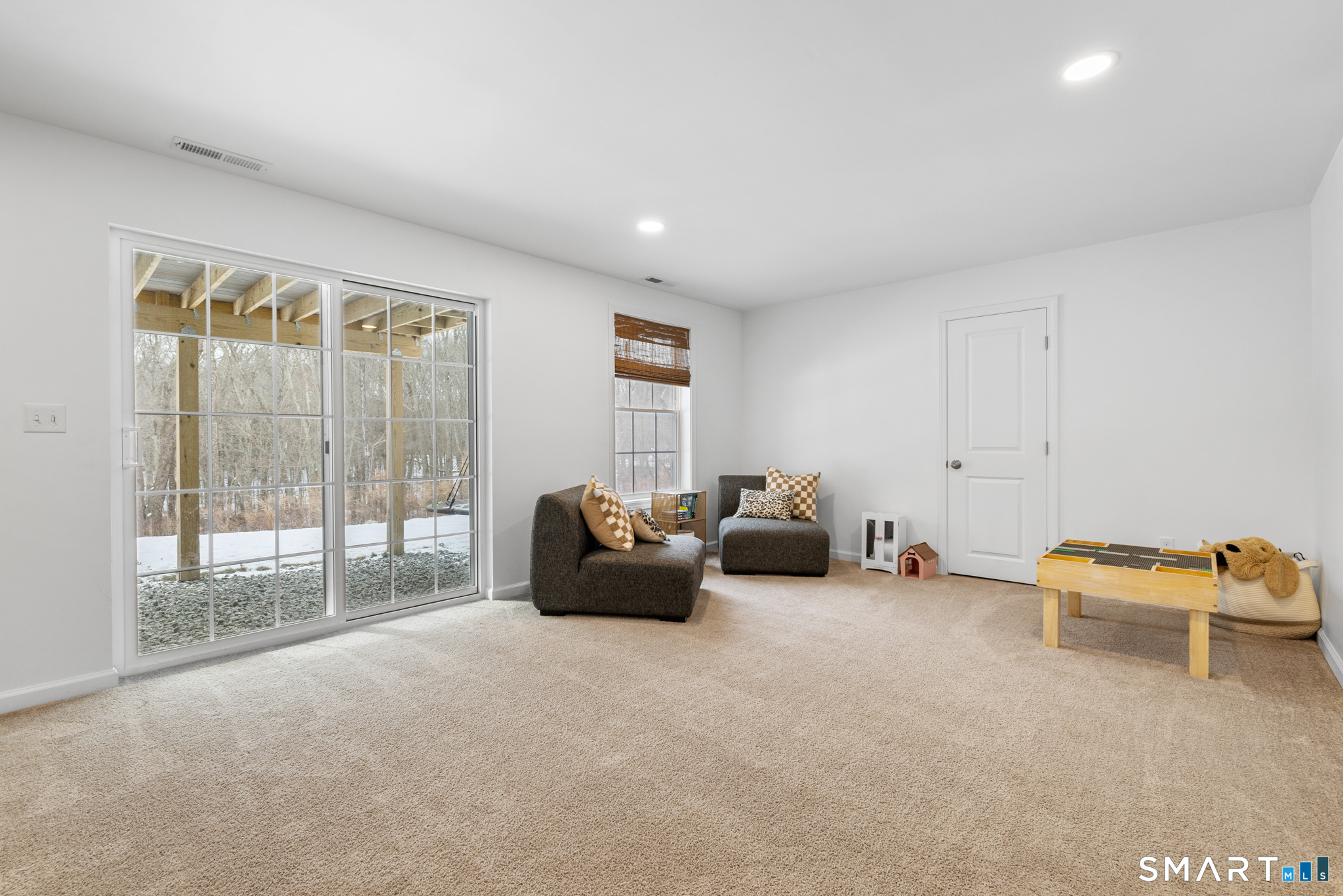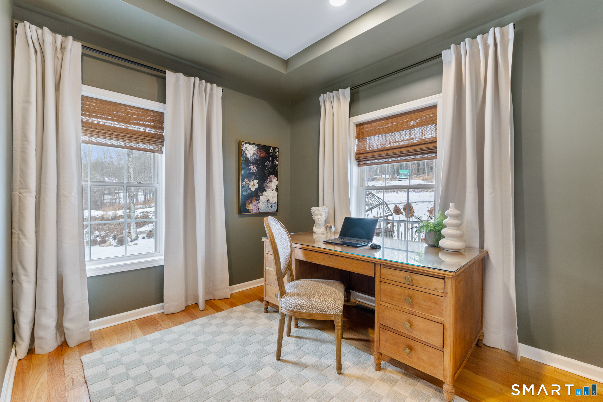 Stunning 2,518 4 bed, 3 and a half bath sq ft colonial with a welcoming covered front porch, open floor plan, and a beautifully designed layout with all the finest finishes. First floor with 9' ceilings and a welcoming foyer that opens to a private study with a stepped ceiling and French doors. An open-rail staircase leads toward the expansive great room filled with natural light from multiple windows and accented by a gas fireplace with windows on each side. Great room flows seamlessly into the kitchen and rear dining area, creating a bright and airy gathering space. Opens to rear deck. The kitchen offers a large 7 foot island, excellent workspace, and easy connection to the dining area, which opens to the rear deck perfect for relaxing or outdoor dining. A well-appointed mudroom provides generous space for organizing groceries, shoes, coats, backpacks, and everyday essentials. Upstairs you'll find 4 bedrooms. Primary bedroom with en suite bathroom. Another bedroom features a tray ceiling, walk-in closet, and ensuite bath with dual sinks and a 5' tiled shower. 2 additional bedrooms upstairs. The main hall bathroom includes dual sinks plus a separate tub/shower and toilet room for added functionality. Flooring throughout the home is a thoughtful blend of hardwood, tile, and carpeting, and ample recessed lighting. Fully finished walkout lower level offers additional living space along with a full bathroom. c/air, propane heat.
