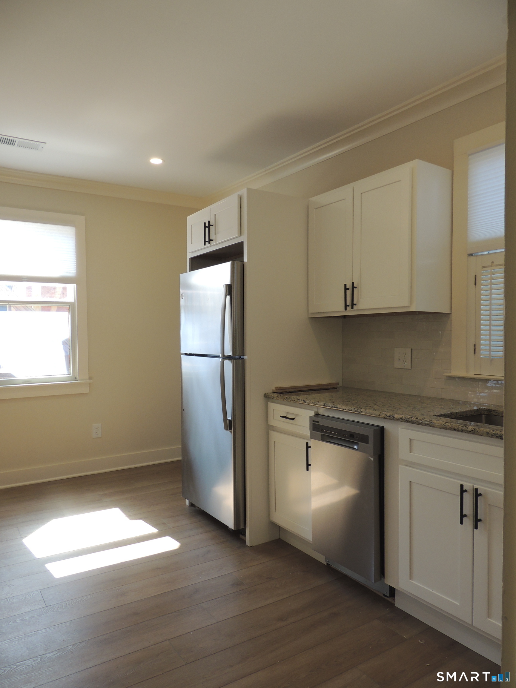 SPRING INTO THIS NEWLY RENOVATED APARTMENT! Bright, spacious 2nd floor apartment in a three family home close to Branford Center. All new floors, new kitchen & bath, new furnace & AC, freshly painted and ready for a new tenant! Entry with stack washer/dryer & mud room area, kitchen with granite counters, plenty of cabinets & workspace, living room with french doors to front office room and two bedrooms! Porch off living room to sit and enjoy the music from the concerts on the Green in the Summertime! Enjoy all that Branford Center has to offer - great restaurants, shopping, library and train station - also close to Branford Point. No pets, no smoking - good credit a must!