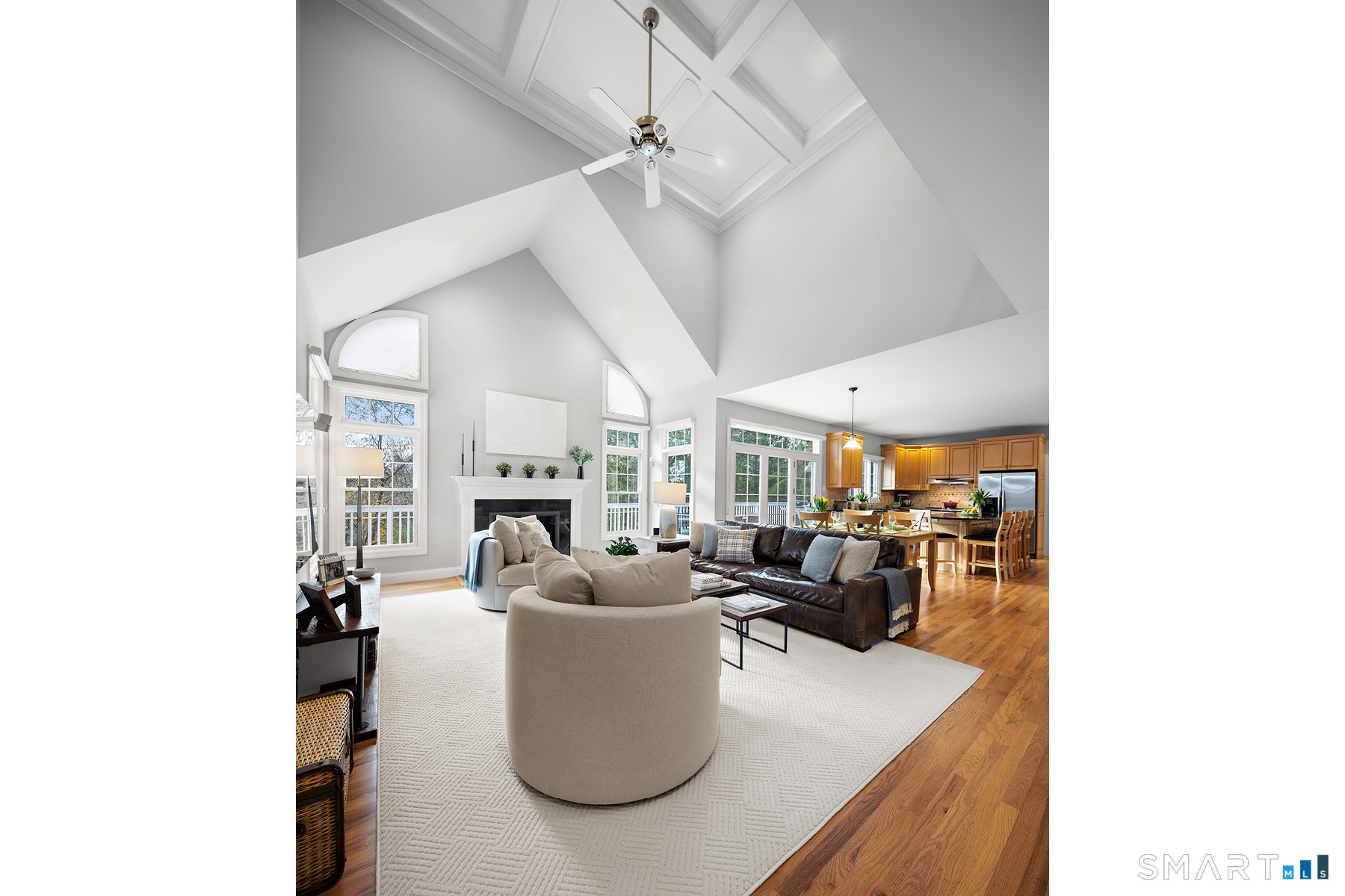Set on a private acre in the sought-after Four Winds Farm community, this turnkey colonial offers a peaceful, country setting with exceptional convenience. The sunny, open floor plan centers around an upscale kitchen with a large island and generous cabinetry, flowing seamlessly into a spacious family room with coffered ceilings and fireplace that's ideal for everyday living and entertaining. A wraparound deck extends the living space outdoors, overlooking a peaceful, private setting ideal for dining, alfresco, relaxing, and entertaining. The thoughtfully designed layout balances open living with privacy, featuring a luxurious primary suite with sitting area and ample closets, along with three additional well-proportioned bedrooms. Additional highlights include formal living and dining rooms, a first-floor private home office with nearby full bath, and a high-ceiling walk-out basement offering flexible living space and attached garage equipped with a ChargePoint Home Flex Level 3 EV charger for modern energy conscience living. Conveniently located near Wilton Center, Westport town center, Cranbury Market, and Merritt Parkway access, this home feels like a retreat without sacrificing ease of living.