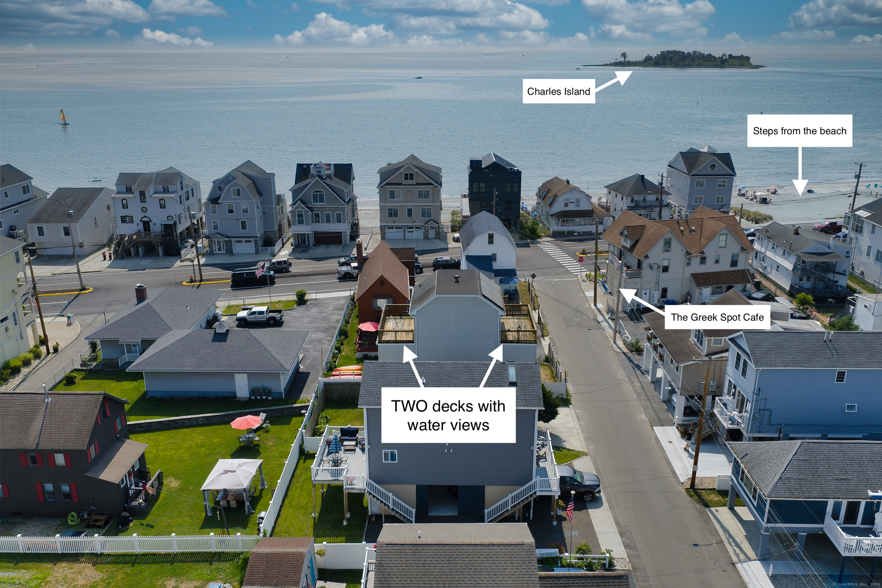 This 3-bedroom, 2.5-bath, 3-story home offers 2,060 square feet of opportunity with of the most breathtaking views in Milford. From two private decks, take in panoramic sights of Long Island Sound, Charles Island, and Silver Sands Beach-a stunning coastal backdrop for everyday living. Inside, the main level features a kitchen with an efficient layout, half bath, and an expansive living room, perfect for unwinding after a day by the water. The second floor offers two comfortable bedrooms and a full bathroom, while the top level boasts a private suite with its own full bath-an ideal space to relax and recharge, complete with stunning water views. Situated just steps from the shoreline and minutes from downtown Milford's restaurants, shops, and train station, this location delivers the best of both peace and convenience. This diamond in the rough is the perfect opportunity to craft your dream coastal haven. With a little TLC, you can enjoy vacation all year round on the Connecticut coast.