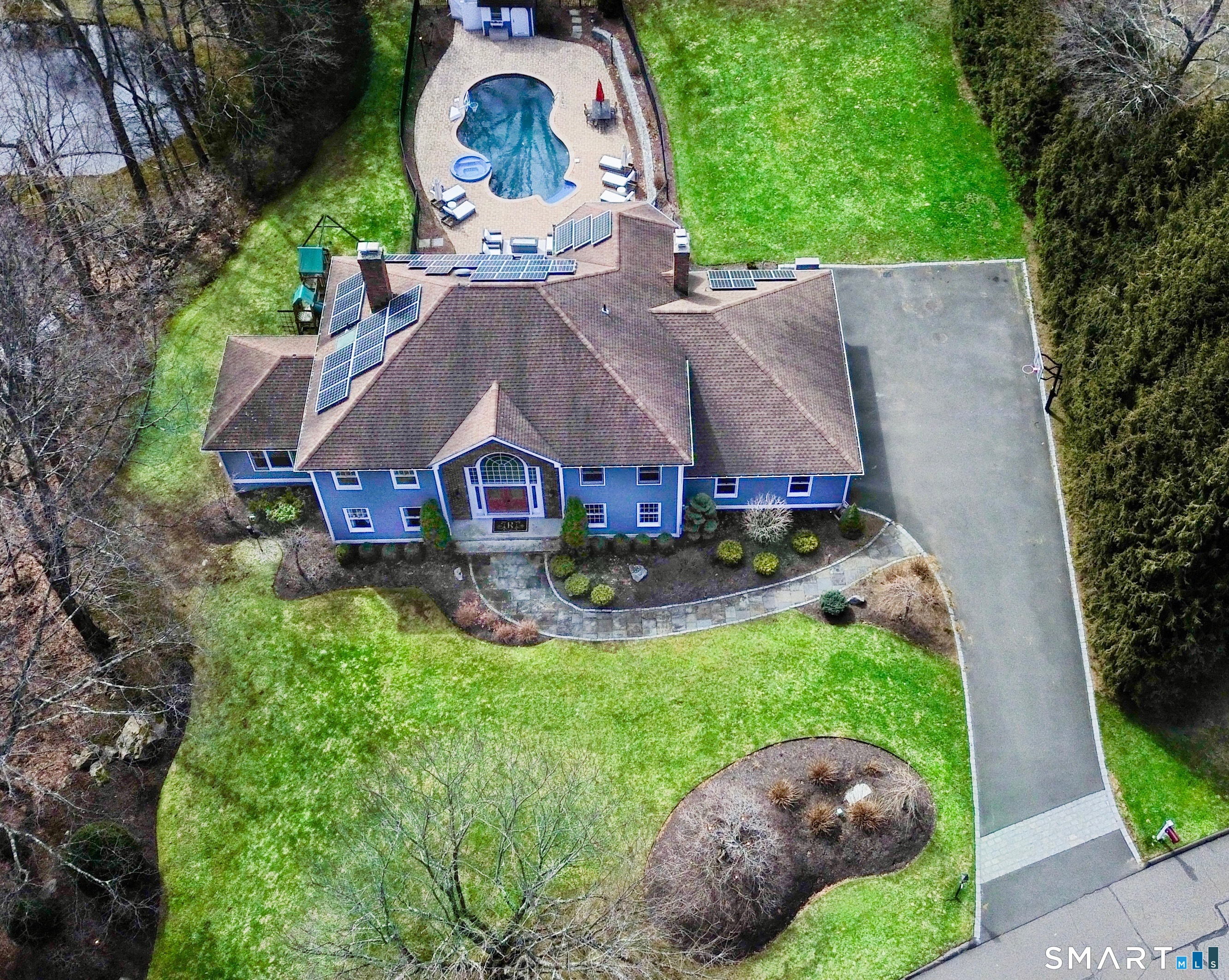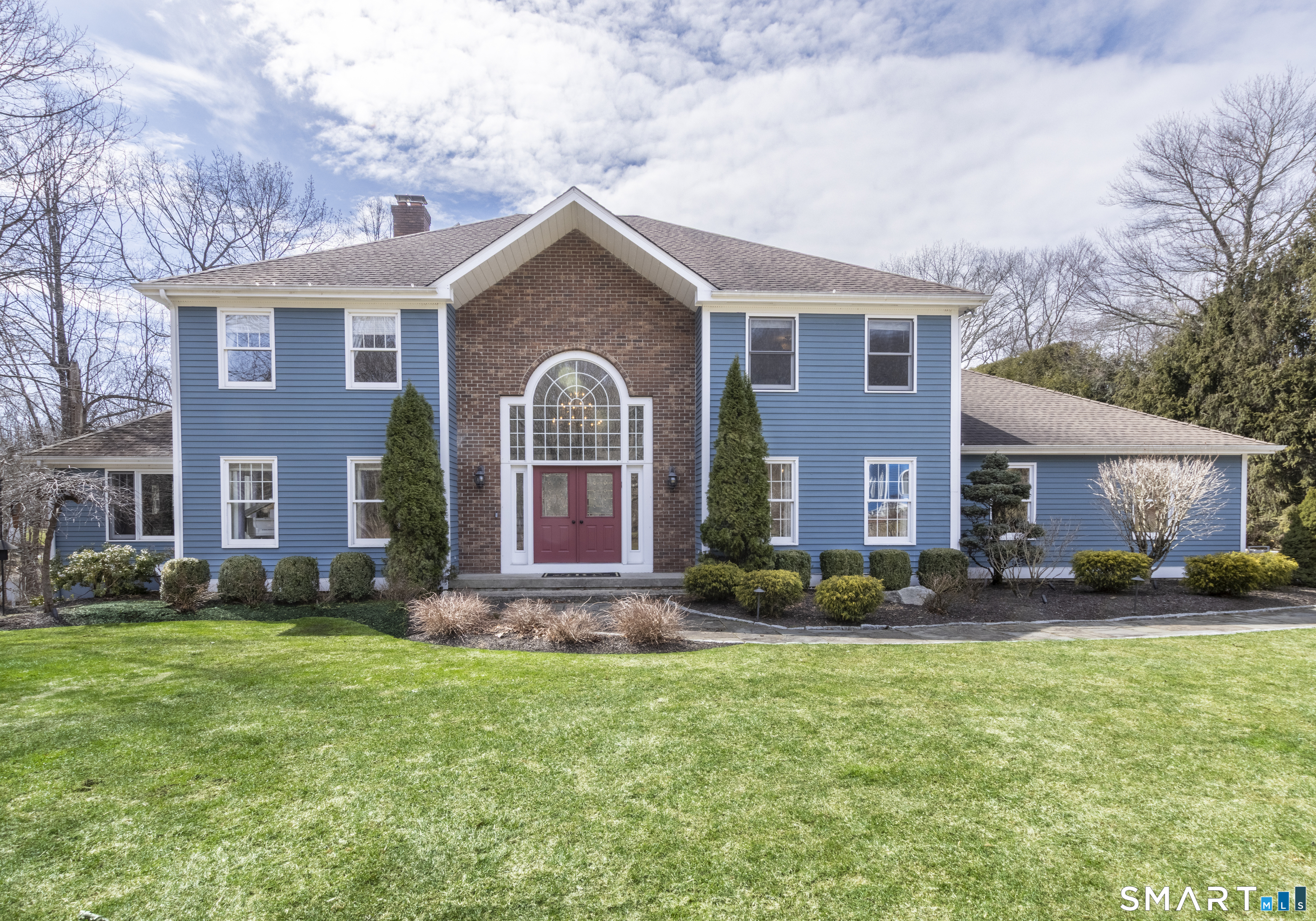 Set on a beautifully landscaped 1+ acre lot in sought-after Tashua, this exceptional custom-built colonial offers over $300K in recent upgrades and a rare opportunity to enjoy resort-style living. Located in a neighborhood of spacious, high-end homes, this property offers a peaceful, low-traffic setting with multiple cul-de-sacs. The outdoor setting is a standout-featuring a stunning pool, year-round spa, expansive patio, and multiple entertaining areas, all designed for effortless indoor-outdoor living. Car enthusiasts will appreciate the 3-car garage, fully remodeled and enhanced with a premium epoxy flooring, along with all-new garage doors. The spacious kitchen features abundant cabinetry, granite counters, Sub-Zero, gas cooktop, double wall ovens, and pantry-all overlooking the private backyard oasis. A casual dining area opens directly to the deck with a retractable awning. Elegant formal living with gas fireplace and dining room provide refined gathering places while the family room offers a wet bar and second gas fireplace for relaxed evenings. The impressive two-story foyer leads to a fully remodeled office, updated powder room, and generous closet space. Upstairs, a gorgeous balcony overlooks the foyer and leads to the primary suite with cathedral ceilings, dual walk-in closets, and a beautifully updated bath. Three additional bedrooms include one with a new, luxurious en-suite bath plus a newer full bath with double sinks and quartz counters.