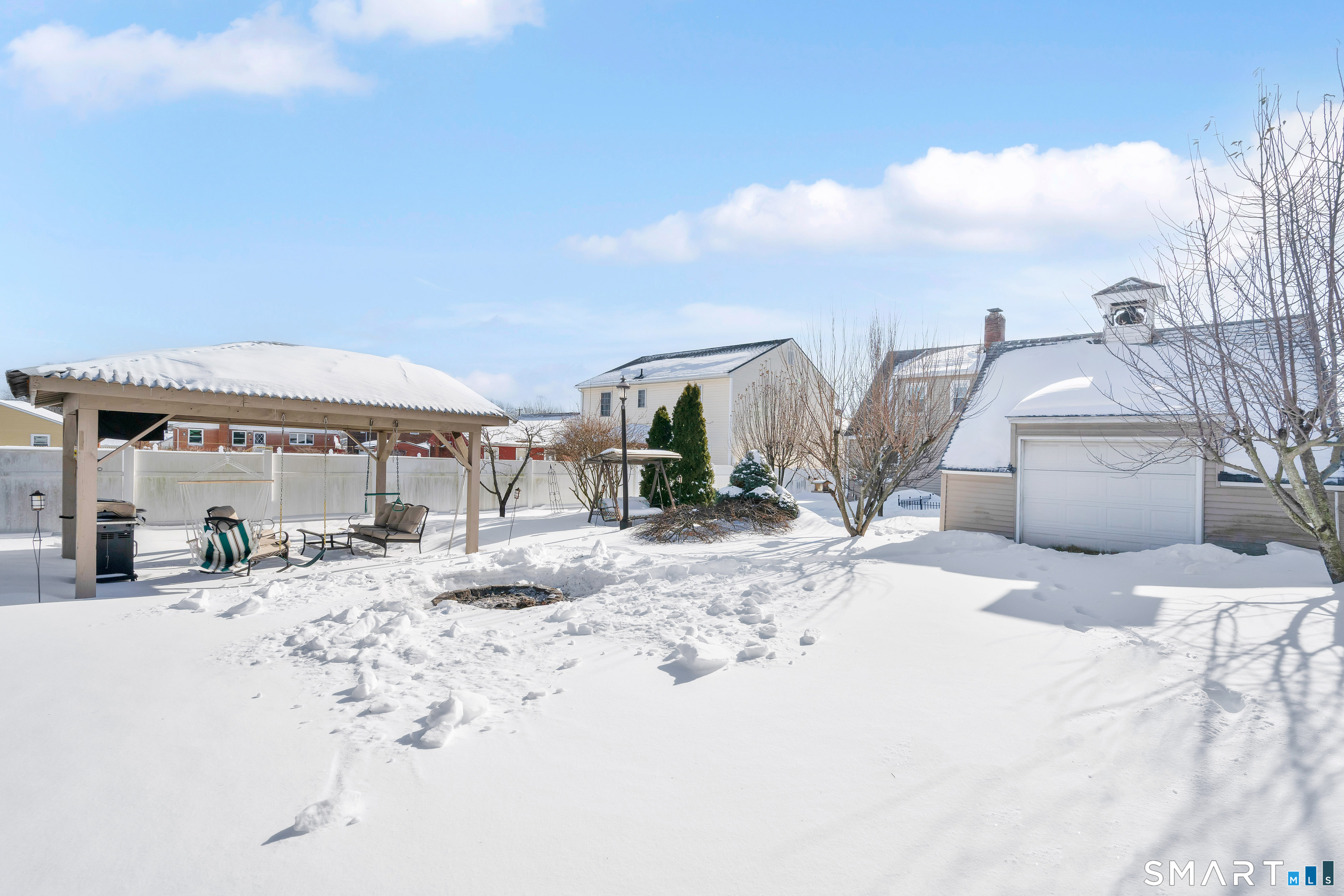 Welcome to this well, maintain 1343 square-foot Cape offering, four bedrooms and 2 1/2 baths with hardwood flooring throughout, including new engineered hardwood in the living room. The kitchen features, a breezeway, connecting to the backyard, and a unique front to back garage, providing easy access in every day convenience. The heated garage includes a separate, electrical panel, ideal for hobbies, equipment, or added flexibility. Step outside to a private backyard retreat, featuring a custom built gazebo wired for TV and has a ceiling fan, plus a custom water feature that creates a peaceful, outdoor oasis. Additional highlights include solar panels for energy efficiency, and a top-of-the-line BUDERUS furnace known for comfort and reliability. A move-in ready home, offering both functionality and charm. "Highest and Best offers in by Sunday February1 at 5:00pm