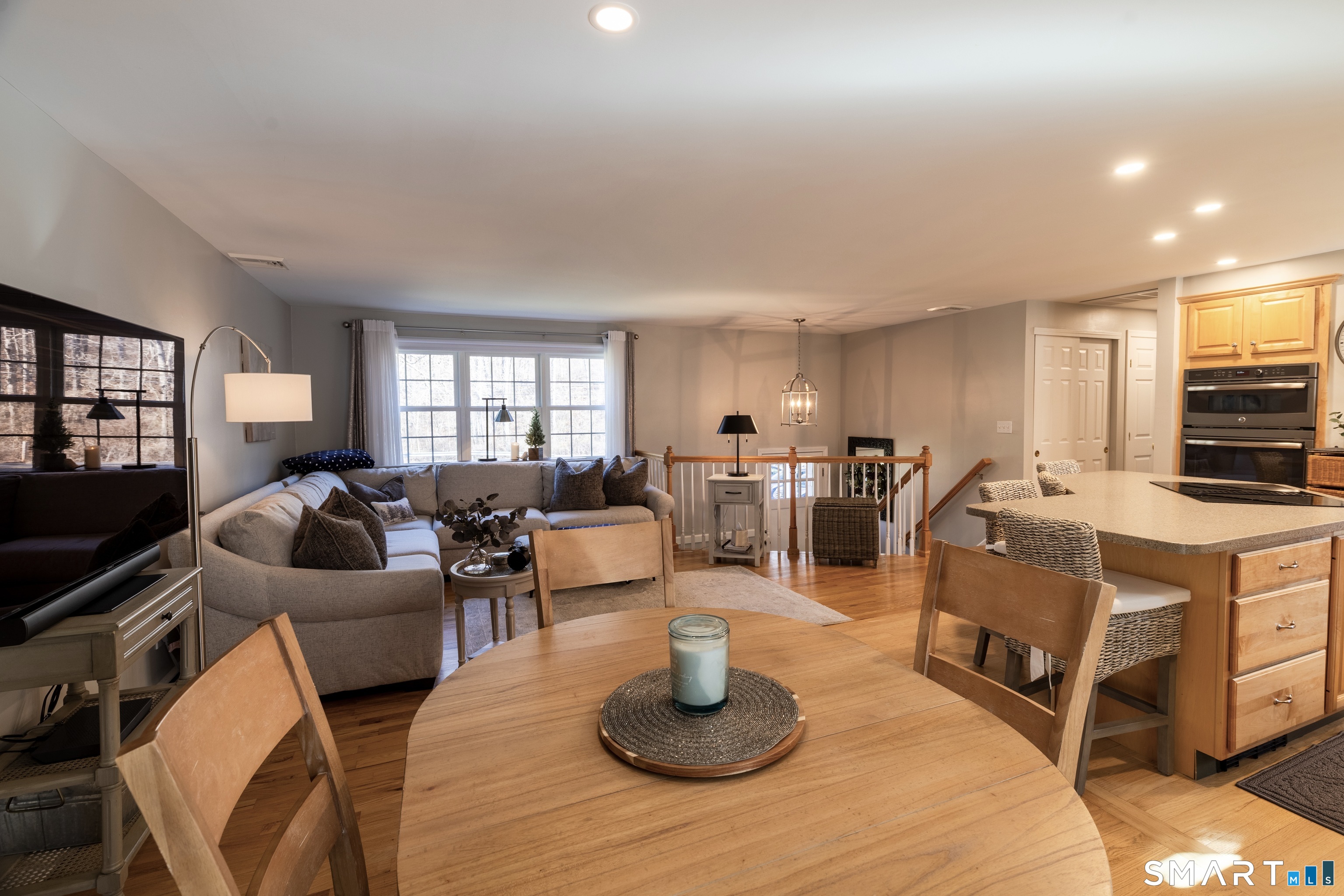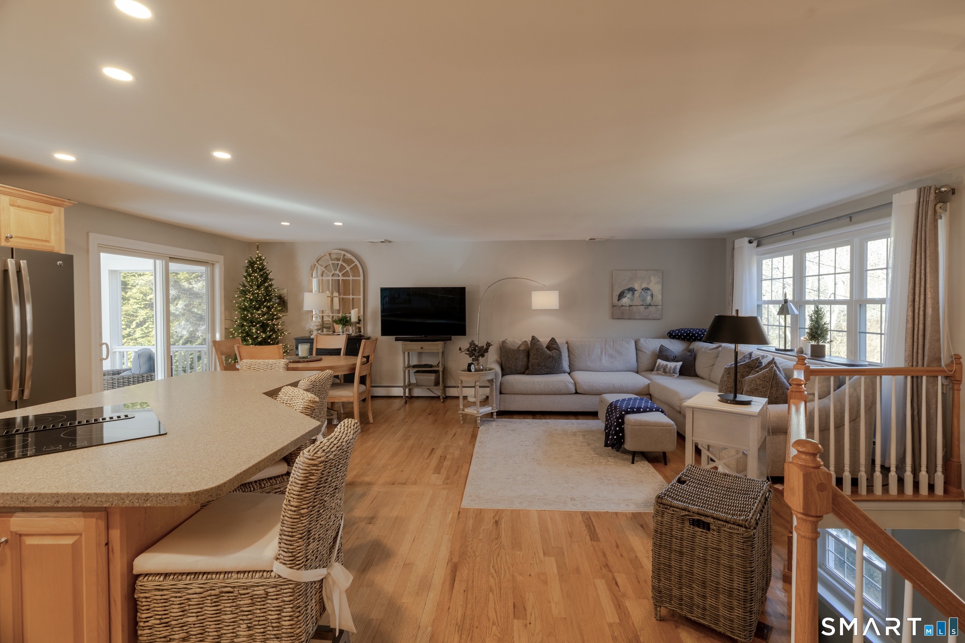 Welcome to 575 Shewville Road, a beautifully updated 4-bedroom, 2-bath raised ranch set on 1.44 acres of park-like property in Ledyard. This home has been thoughtfully improved inside and out, offering a warm, modern feel. The main level features an inviting open-concept kitchen, dining room, and living room, accented by hardwood floors throughout. Step through to the charming screened-in porch, perfect for morning coffee or relaxing summer nights. A stone patio with fire pit creates an ideal space for outdoor gatherings. With a newer roof and siding, the exterior is as well cared for as the interior. Enjoy year-round comfort with central air, and take advantage of the spacious lower level family room -complete with a working fireplace, fourth bedroom, and full bath. Peaceful, updated, and move-in ready, this property blends modern convenience with the quiet charm of Ledyard countryside living.