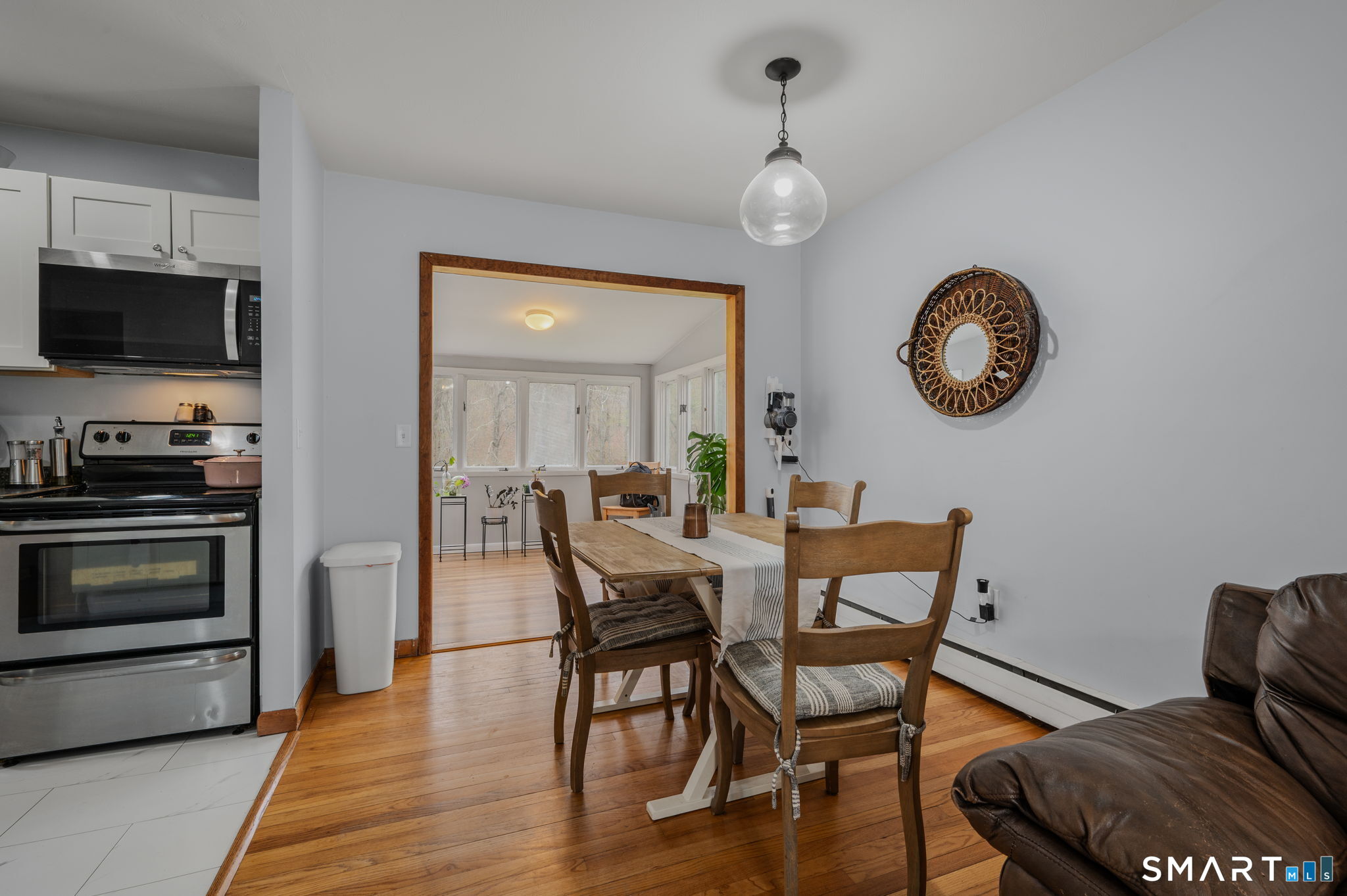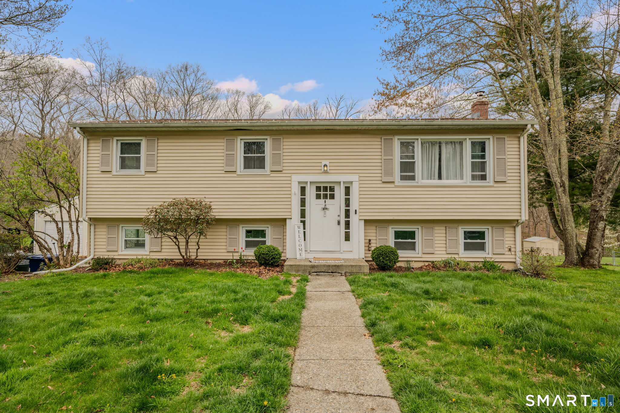 Move-in ready 3-4 BR, 2 full-bath raised ranch set on a cul-de-sac street in the Aljen Heights subdivision offers a living room and dining room with hardwood floors, an updated kitchen with stainless steel appliances, a sunroom leading to a spacious balcony/deck overlooking a picturesque backyard, and three bedrooms and a full bath all on the main level. A spacious family room with wall-to-wall carpet, a 4th bedroom/den, and a full bath/laundry room in the lower level. Split HVAC system provides heating and cooling throughout, updated septic system, thermopane windows, vinyl siding, city water, and an oversized two-car detached garage (in need of a little TLC).