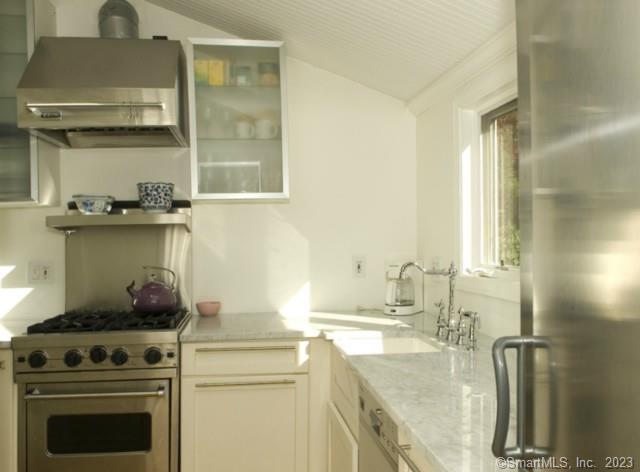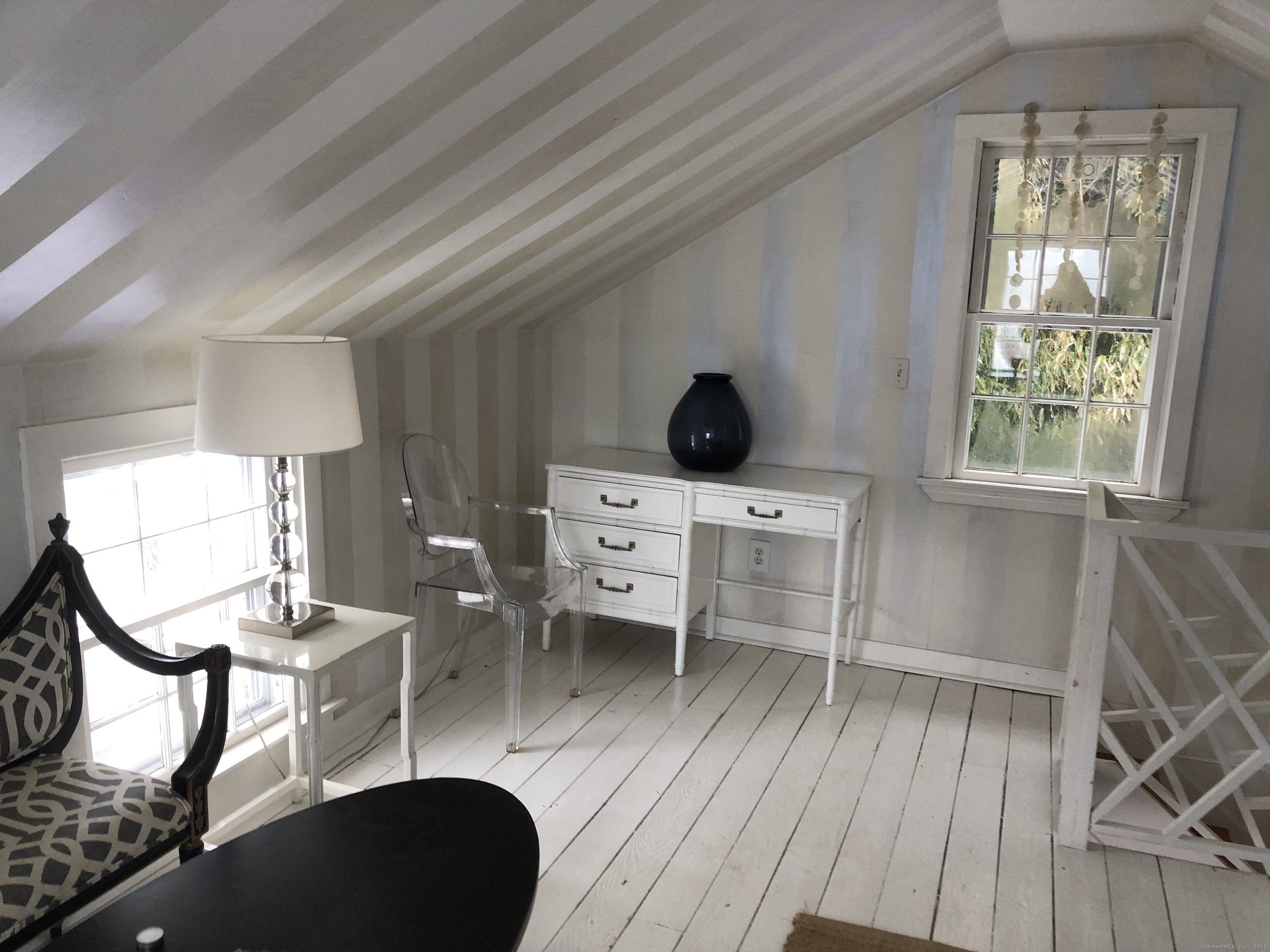 Furnished rental available with flexible lease terms. Available for summer only at a higher rent. Cloud 9 is a sweet pink cottage by the shore reminiscent of childhood days at the beach. Located at the end of a cul-de-sac four houses in from the water on Saugatuck Shores, this private home has an extra spacious, fully fenced, level yard giving you the best of both worlds - a lawn within a water community and quick access to the water. Home has three bedrooms and two baths on the main level. One bathroom has a shower and the other has a tub. Both have Waterworks and Restoration Hardware fixtures and tiles. Kitchen is petite yet gourmet with white Italian carrera marble counters, Viking gas stove, Bosch dishwasher, farm house sink and stainless steel refrigerator. Also on the main level is a large entry vestibule and a Florida lanai room in the back overlooking the yard. Upstairs is a one room loft space. Home has hardwood floors throughout. Plenty of parking. Dream location minutes from everything.