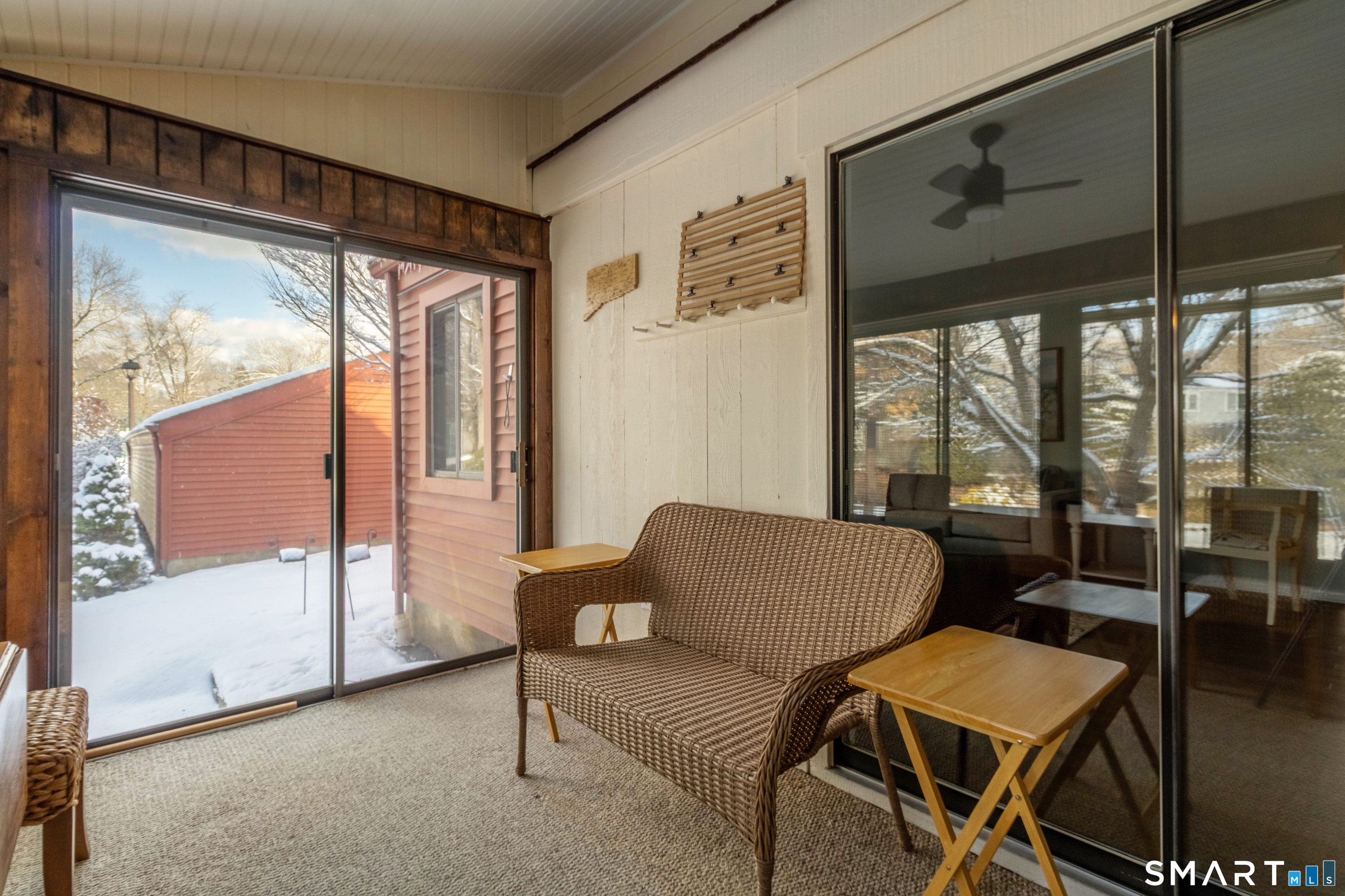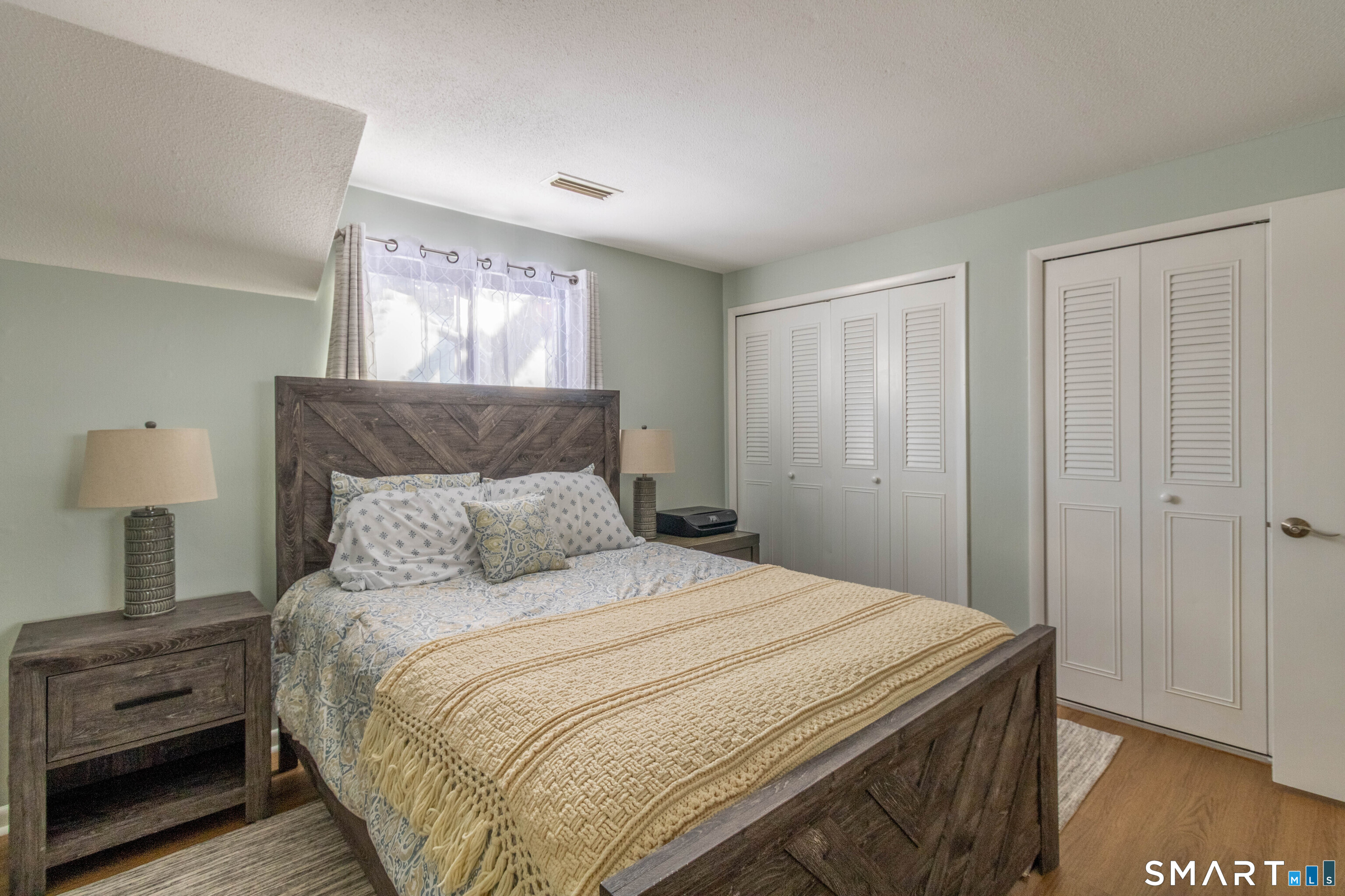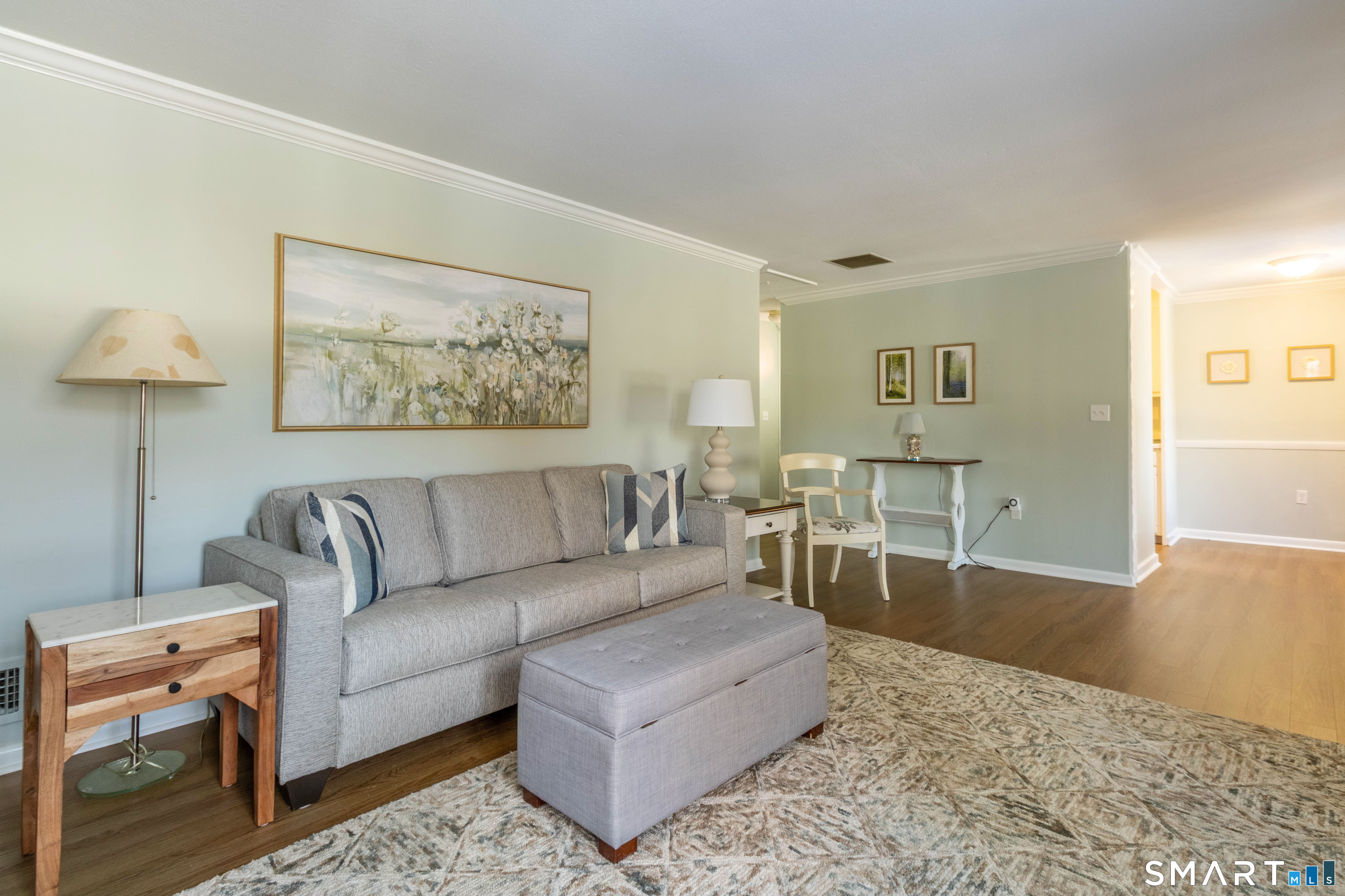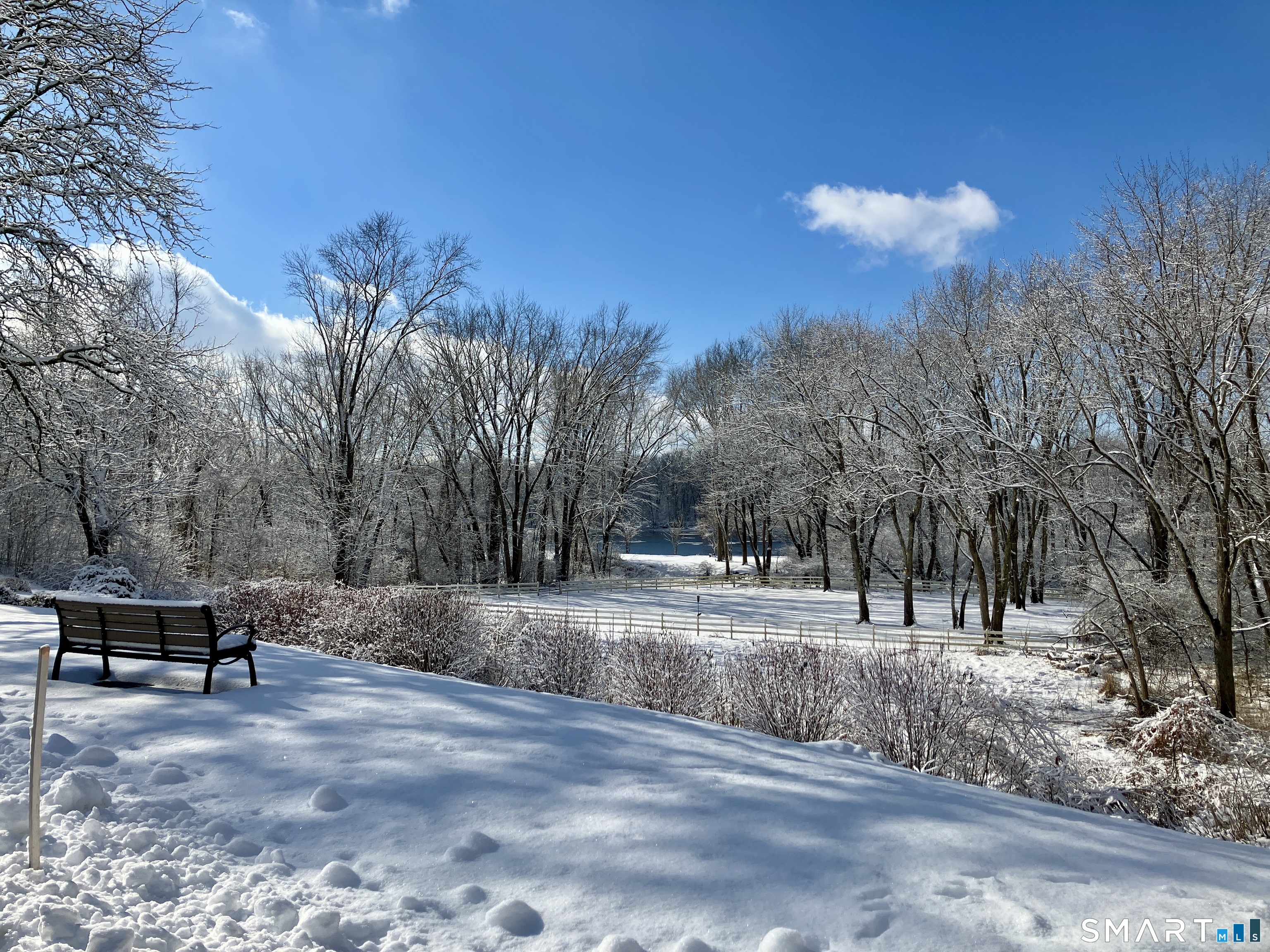 This beautifully renovated two-bedroom single-level home, completely updated from top to bottom in the second half of 2025, offers modern comfort, quality craftsmanship, and true peace of mind. Fresh, neutral paint and newly installed flooring create a bright, welcoming interior, while the thoughtfully updated kitchen/laundry areas feature some new appliances, including a refrigerator, dishwasher, stacked washer/dryer, complemented by newly installed lighting. Extensive mechanical, electrical, and safety improvements were also completed, including HVAC servicing, heating system upgrades, bathroom venting brought up to current code, smoke & carbon monoxide installations, exterior lighting, new door locks, and a fully serviced gas fireplace to meet HOA requirements. More enhancements, such as porch ceiling lighting/ceiling fan, and pest control treatments further reflect the care invested in this home. Ideally located in the quiet back section of the complex, the unit offers a peaceful setting with no stairs, no one above you, and convenient full attic storage. Both front and rear entrances feature minimal step-ups and sidewalks, & the home is just a short walk to your garage, Tennis/Pickleball, Clubhouse, Pool, and scenic views of the Connecticut River. Residents enjoy a tranquil lifestyle with easy access to shopping, dining, medical facilities, and all major roadways. Welcome to low maintenance living in one of Glastonbury's most highly regarded 55+ communities. Garage #159