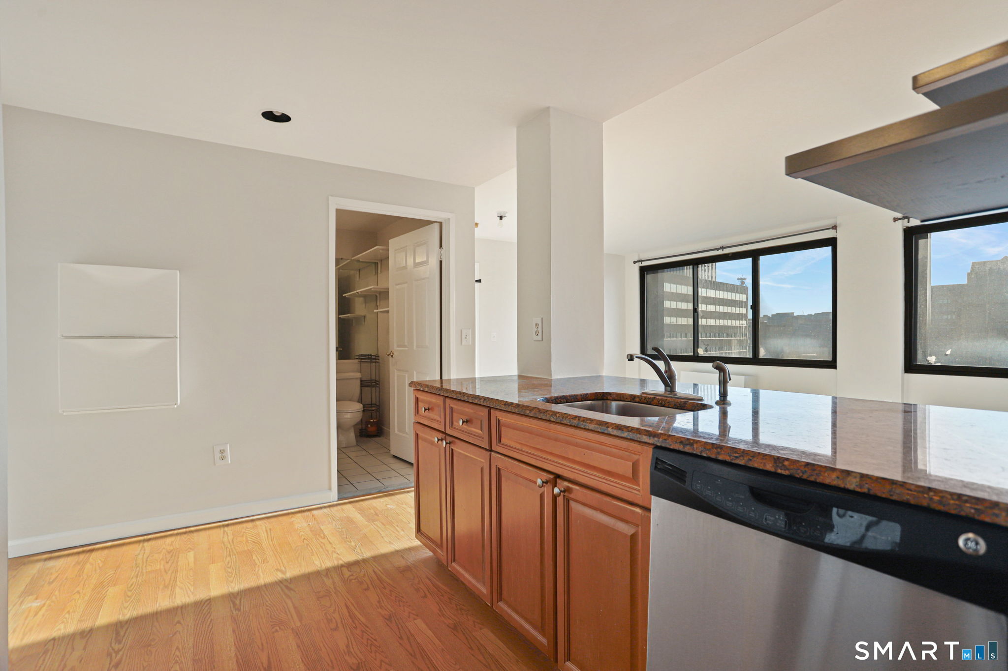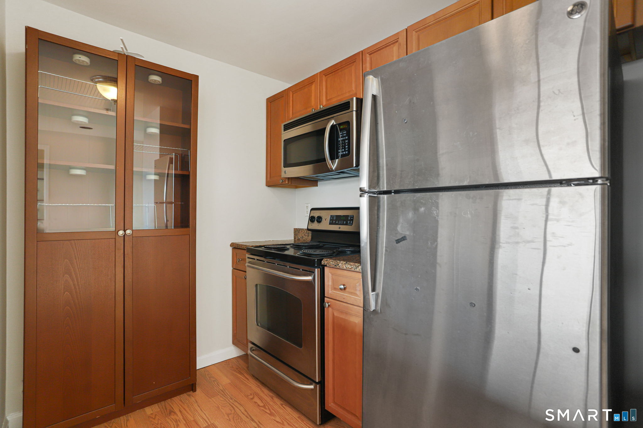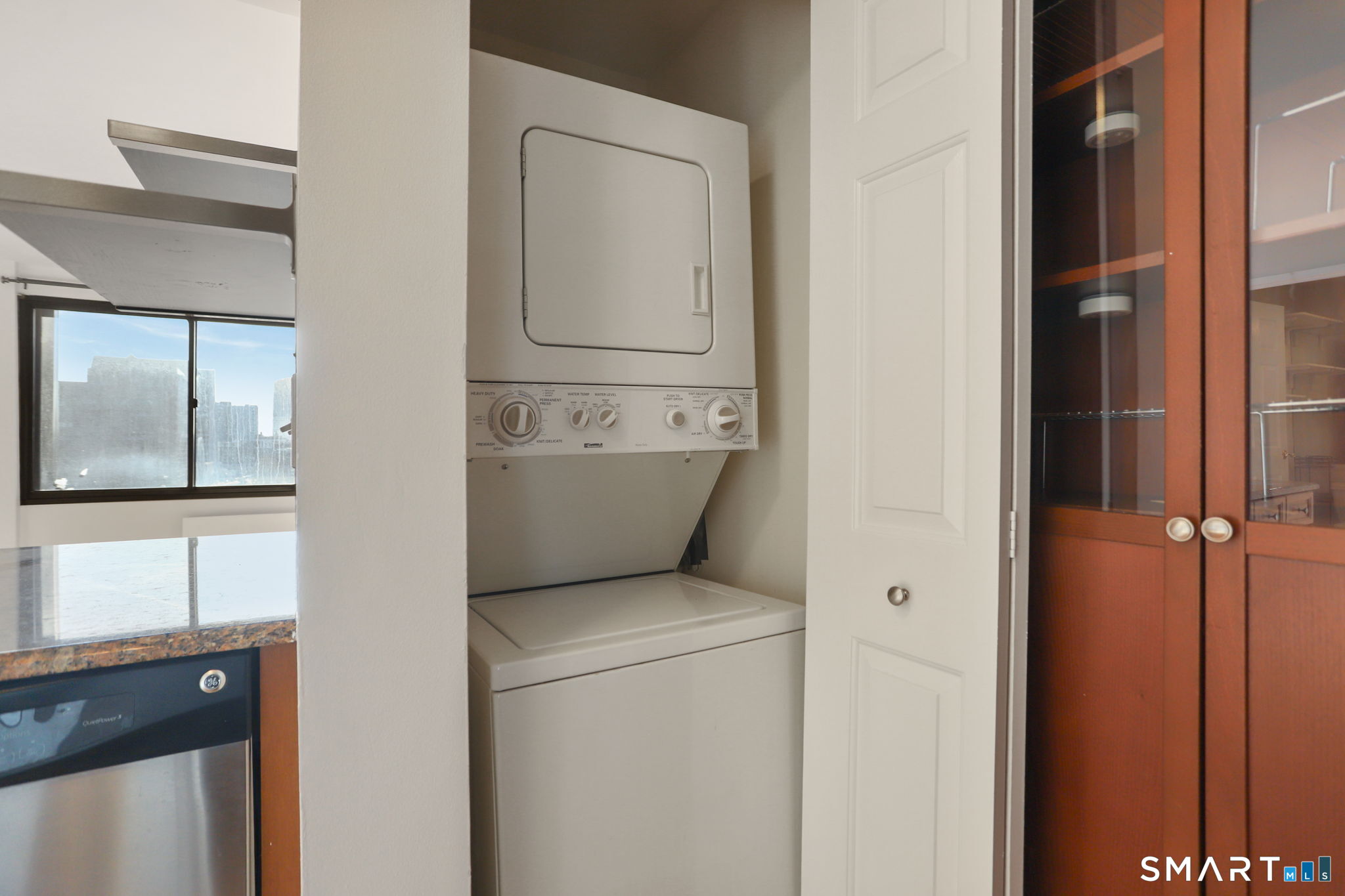 - **City Views**: Fantastic 1 Bedroom Downtown Stamford Enjoy breathtaking views of downtown Stamford from your windows. - **Open Floor Plan**: The spacious layout creates a seamless flow between areas, perfect for entertaining. - **Gourmet Kitchen**: Features a granite counter with a breakfast bar that opens to the living room, ideal for casual dining or gatherings. - **Large PRIMARY Bedroom**: Offers ample space for relaxation, complemented by double closets for generous storage. - **In-Unit Laundry**: Convenient washer and dryer included, making laundry day hassle-free. - **Elegant Lobby**: Entryway features a marble lobby that adds a touch of luxury. - **Fitness Room**: Access to a well-equipped fitness room to keep up your workout routine. - **Secure Access**: Building access is managed through a secure key fob entry system for peace of mind. - **Outdoor Common Area**: A shared patio space with a grill enhances your outdoor living experience, perfect for barbecues or socializing. - **Parking**: An assigned exterior parking spot is available, ensuring your vehicle is always close by. This apartment is ideal for those seeking a blend of comfort and urban lifestyle in Stamford.