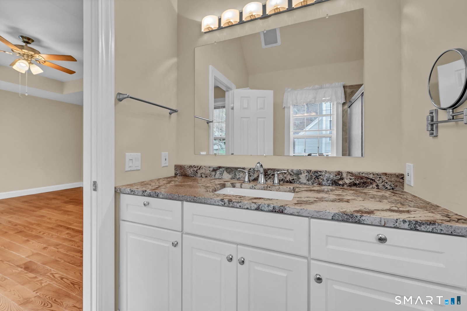 PRISTINE - SPACIOUS - BEAUTIFUL UPDATES AND A PRIVATE SETTING are just some examples of the many offerings featured in this beautiful single family home located in the Award Winning setting of Sullivan Farm. A bright and spacious primary bedroom suite is conveniently located on the main level featuring a large walk in cedar closet and updated bathroom. Enjoy the view of blossoming trees from the bright, totally updated eat-in kitchen featuring hardwood floors, granite counters, stainless steel appliances, and outstanding cabinetry. Also located on the main level is a spacious room with a wood burning fireplace and an area perfect for a living room and dining room setting. Sliding doors from this room enter to a private three season porch with an attached deck surrounded by natural landscape perfect for relaxing and entertaining. Located on the upper level is a second bedroom with an absolutely stunning updated bathroom. The lower level has wonderful open space for use as a family room, game room and office space. A bedroom with an updated half bath and storage area are included on this level. This single family home is in move in condition within the private community of Sullivan Farm. Amenities include walking areas, a pool, lakefront area on Candlewood Lake for picnicking, swimming and kayaking. The close proximity to I84, a quaint downtown, beautiful green and restaurants are just a few reasons to enjoy maintenance free living in Sullivan Farm.