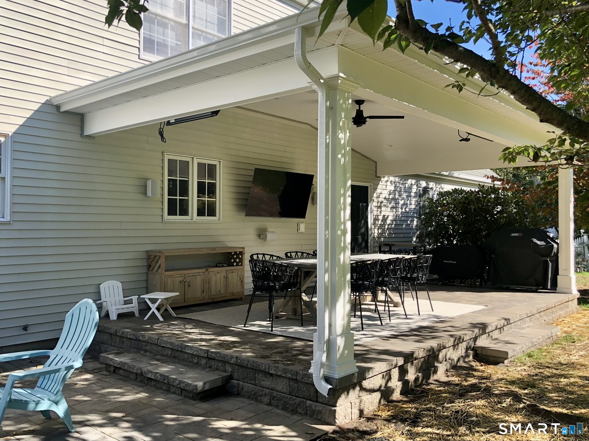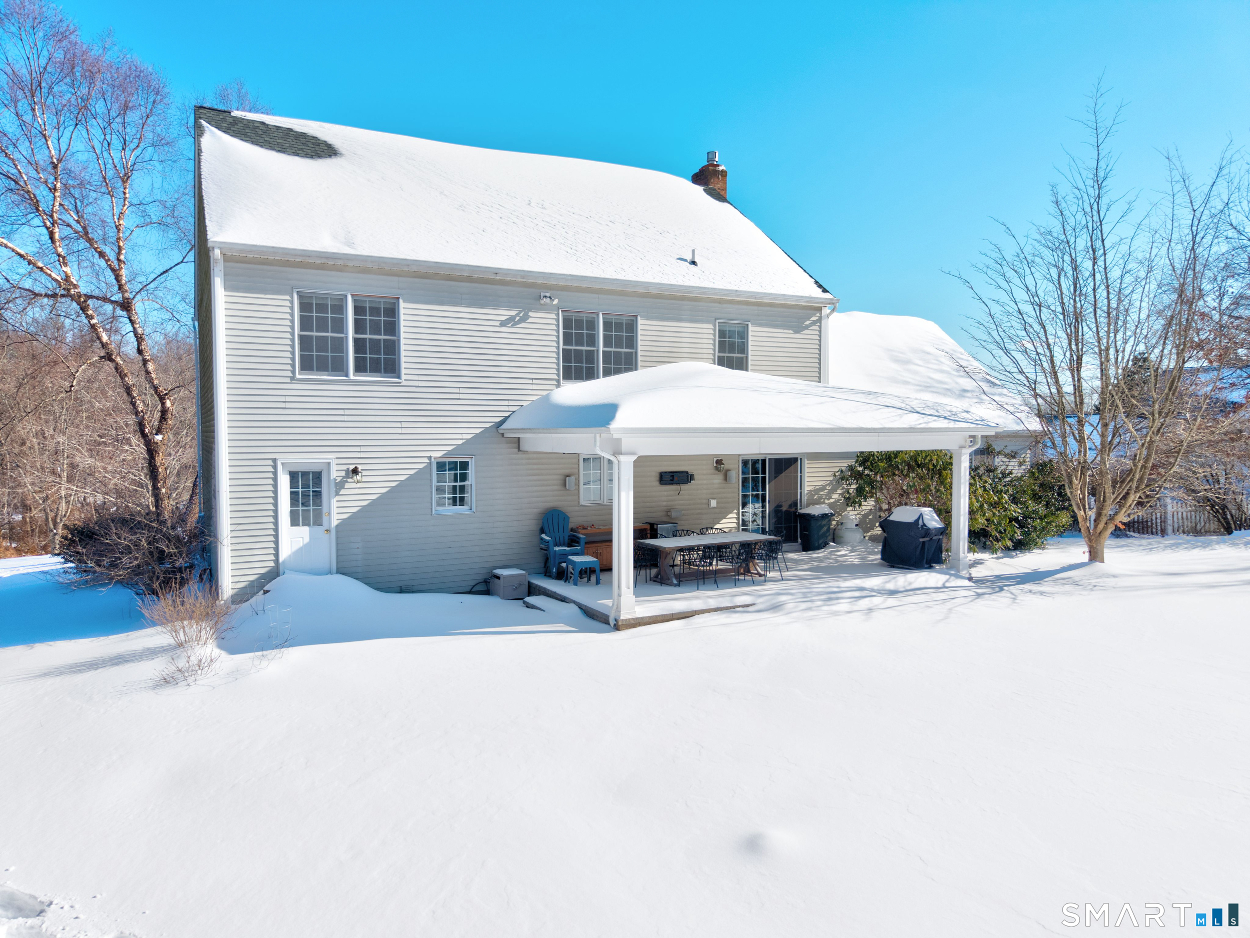 Sitting on a 1.45 acre lot within a quiet cul-de-sac in the sought-after Lantern Hill neighborhood, this 4-bedroom, 2 1/2 bath Colonial offers warm and inviting spaces designed for both relaxed living and memorable gatherings. A front entry foyer welcomes you and leads to living and dining rooms, eat-in kitchen and fabulous family room with hardwood floors, a brick fireplace, built-ins, and a soaring cathedral ceiling. The kitchen features granite countertops, stainless steel appliances, and hardwood floors, with sliders opening to a covered custom patio ideal for morning coffee or evening dinners al fresco. Beyond, the grounds unfold into a peaceful landscape of rolling lawn, specimen trees, stone walls, and mature plantings; an ideal backdrop for entertaining, play, or quiet moments in nature. Formal and informal spaces flow beautifully. The dining room, accented with wainscoting, is perfect for celebrations, while the living room offers flexibility as a retreat for reading, music, or conversation. Upstairs, natural light pours into the hallway, leading to a master bedroom with walk-in closet and full bath, and three additional bedrooms and a second full bath. A walk-up attic offers easy storage access, while the lower level provides room for recreation, hobbies, or a home gym and connects to a mudroom and 3-car garage. Just 2 miles from the Guilford Green, shops, restaurants, beach and train station.