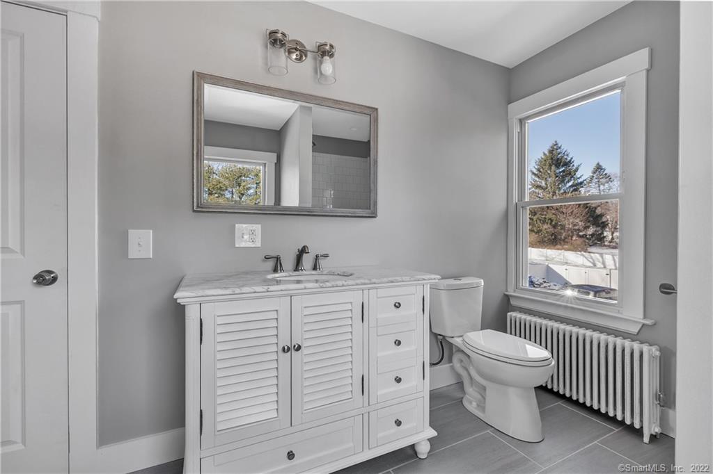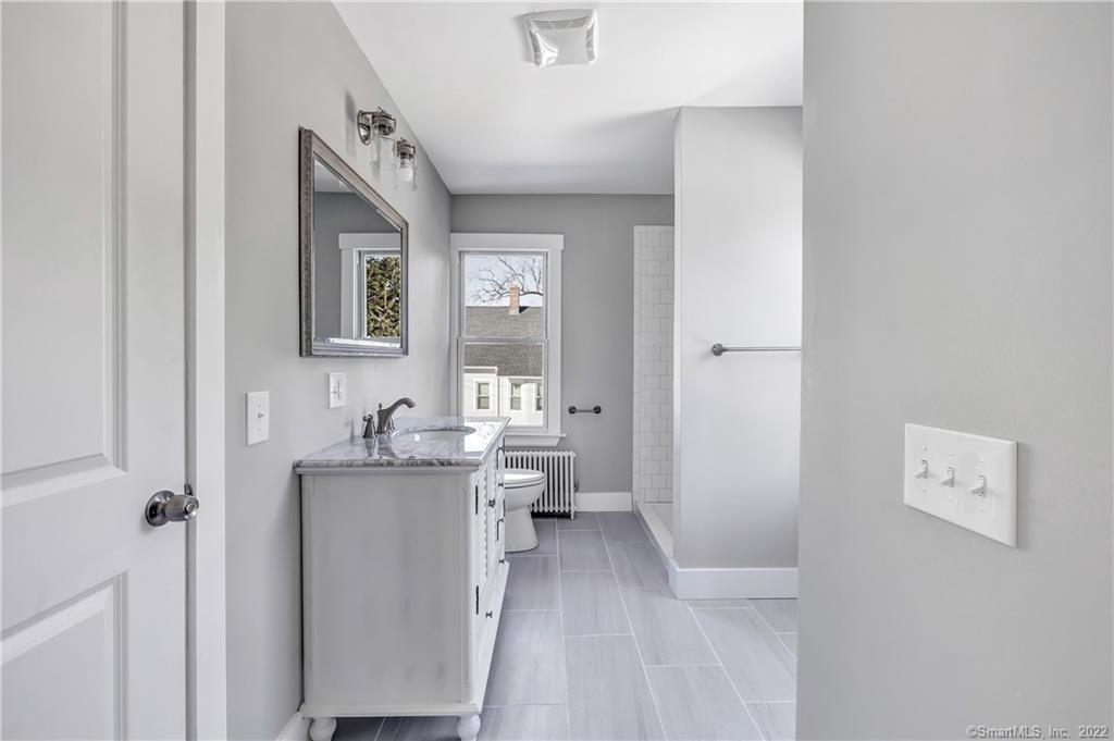 This beautiful colonial has been renovated and is waiting for its new owners. Home features a white kitchen, stainless steel appliances, tiled back splash and quartz counters. Beautiful, enclosed porch off kitchen. Hardwood floors throughout. Large formal dining and living room combo. Main level bedroom (currently being used as an office) and updated half bath finish off the 1st floor. Primary bedroom with newer primary full bath. Additional 2 bedrooms with shared updated full bath with newer fixtures and vanity. Walk up attic. This home has newer siding, roof, replacement windows throughout. Basement area features laundry hook up and mechanicals, with 2 areas for storage. 3 car detached garage with loft storage. City water and sewers. This one won't last long!