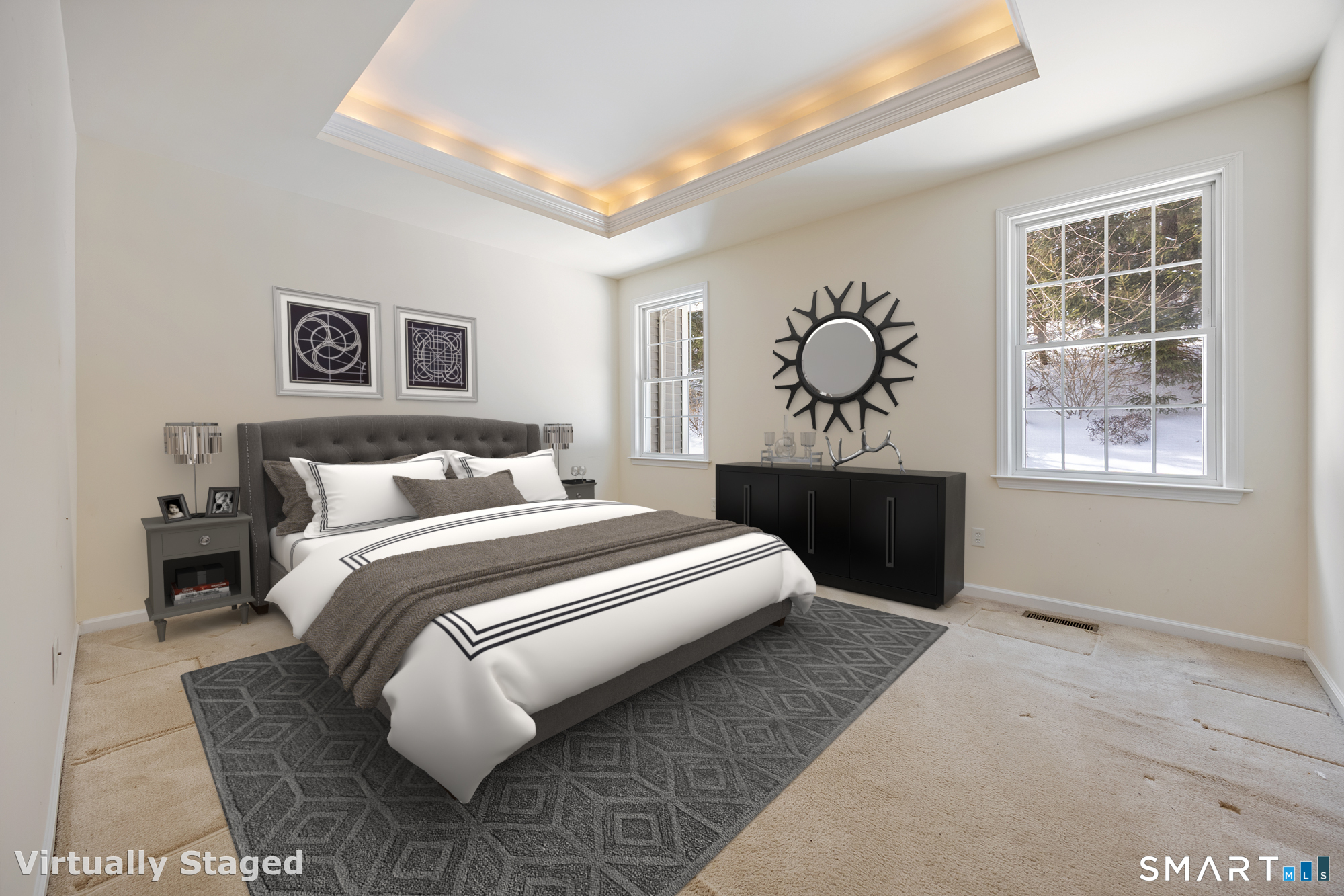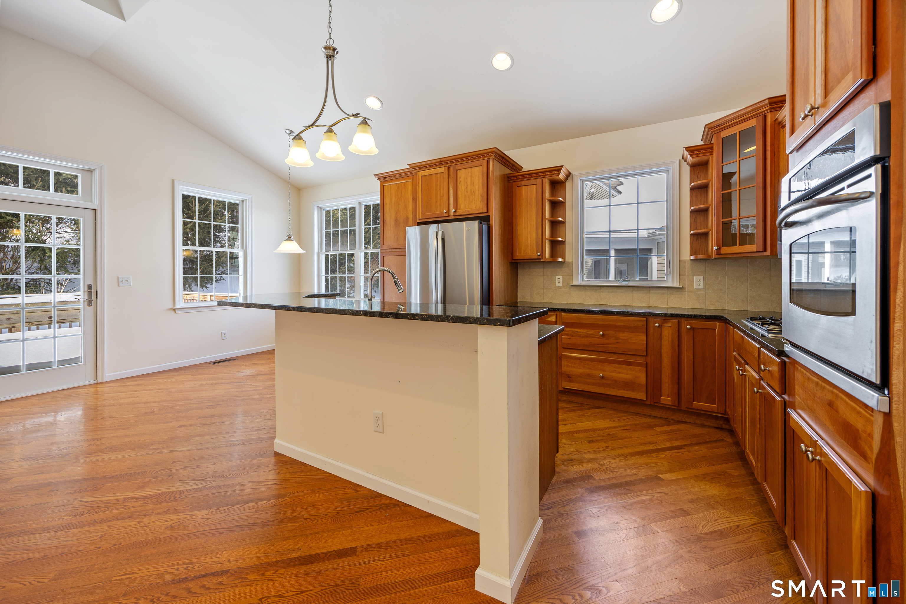 An open floor plan enhances this attractive ranch-style home, offering the ease of one-level living with hardwood floors and central air. The welcoming foyer opens to an elegant dining room. A spacious great room with vaulted ceilings and a gas fireplace flows seamlessly into the eat-in kitchen. The kitchen features beautiful granite countertops, wood cabinetry, a newer refrigerator, and a newer cooktop stove. The primary suite impresses with double doors, a walk-in closet, and a luxurious bath with a large double-sink vanity. The bedroom provides a private retreat with lighted tray ceiling. A second bedroom with its own ensuite bath makes an ideal guest suite. Additional highlights include a powder room, laundry room, 2 car garage, and a full unfinished basement offering abundant storage. This 55+ condo complex is ideally located in a highly desirable area, conveniently close to Route 8 and surrounding towns.