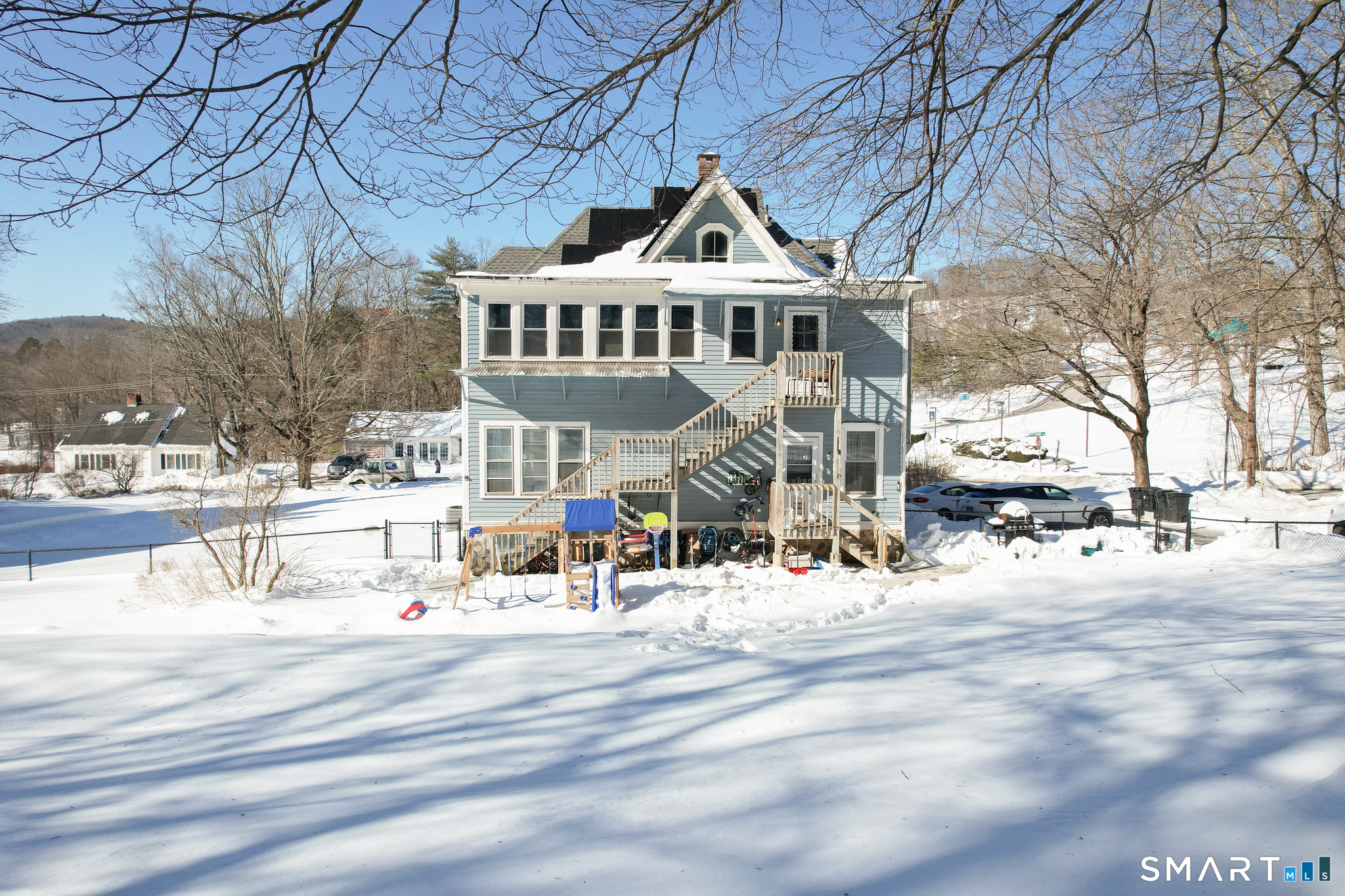 Welcome to this beautifully maintained 6 bedroom, 3.5 bath two-family home in Winsted, set on a generous 1.25 acres of fully fenced yard. Warm wood flooring flows throughout the home, creating a welcoming feel from the moment you step inside. The layout on both levels offers generous sized bedrooms with high ceilings, large living rooms and the second floor has a spacious sunroom; an ideal spot to unwind or enjoy your morning coffee. Stainless steel appliances complement the home, and the eat-in kitchens provides a cozy space for casual dining and everyday living. Designed with convenience in mind, the home features laundry on both floors, gas heat and central air. Outside, the fully fenced backyard offers space to entertain, garden, or play, enhanced by a concrete walkway and a driveway freshly paved last year. The original post and beam 2 story carriage barn has a workshop and serves as a large 2 car garage that can easily fit 3 cars with plenty of storage space! Recent updates include almost all new windows, newly installed central air on the second floor, and a new hot water storage tank, and solar panels adding comfort and peace of mind. This property offers space, functionality, and thoughtful updates perfect for both owners and investors alike.