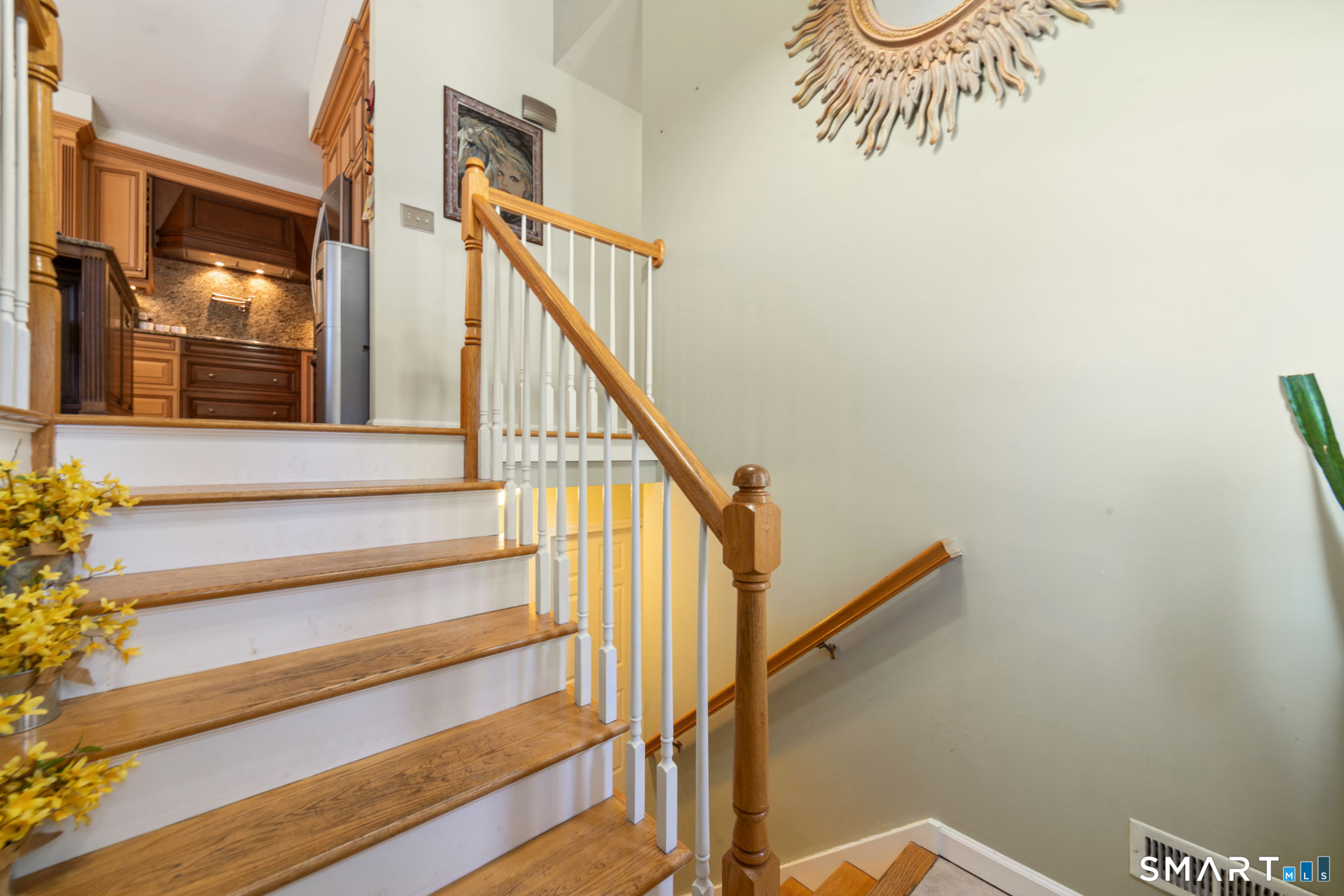 Welcome home to this thoughtfully designed raised ranch offering an open-concept layout ideal for both entertaining and everyday living. The spacious living room flows into the dining area and a beautifully appointed kitchen anchored by an oversized island - creating a comfortable gathering space for hosting and connection. The kitchen reflects the owner's love of cooking and features granite countertops, generous storage, wine chiller, convection oven, built-in microwave, and a convenient pot-filler faucet. French doors from the dining area lead to a maintenance-free deck overlooking an open yard, extending the living space outdoors during warmer months. The primary bedroom includes a private full bath, while main level laundry located in the main bath adds everyday ease. The finished lower level offers flexible living space with a full bath - ideal for guests, a home office, or recreation - with direct access to the two-car garage. Gas heat and hot water, central air conditioning, plus whole-home humidifier and air purification system provide year-round comfort. Pride of ownership is evident throughout - a home that has been carefully cared for and is truly move-in ready.