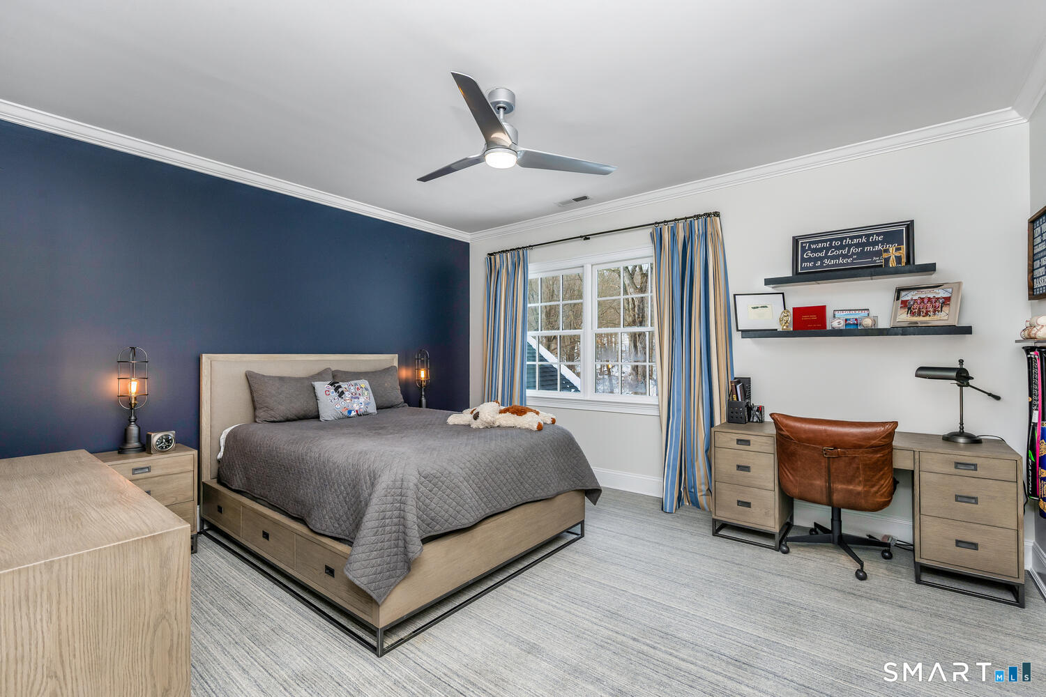 Offer Deadline 5pm, Feb 2nd. South Wilton Showstopper! Nestled at the end of desirable cul-de-sac, this pristine, turnkey Colonial offers an ideal floor plan for today's lifestyle w/4,500 sq ft plus finished walk-out lower level. Exquisite millwork, 9' ceilings, and hardwood floors flow throughout the home. The custom-designed kitchen is a chef's dream, featuring high-end appliances including built-in espresso maker, oversized island, spacious pantry, and stunning cabinetry-all open to a comfortable family room w/floor-to-ceiling stone fireplace. A private home office/study adds functional flexibility. Gracious living room w/ gas fireplace and large formal dining room are sure to impress. Upstairs, the luxurious primary suite includes a gas fireplace, spa-like bath, and huge walk-in closet. Three add'l bedrooms offer ensuite or Jack-and-Jill baths and walk-in closets. A recreation room w/custom built-in desks and shelving provides ideal space for work or play. The second-floor laundry room boasts gorgeous cabinetry and sink for added convenience. The finished walk-out lower level features a fireplace, full bath, and guest bedroom. Outdoor living shines w/ a welcoming front porch, beautiful in-ground pool, fabulous patio with built in Lynx grill and fire pit. Professionally landscaped w/ perennial gardens thru out. This exceptional home combines elegance, functionality, ideal NYC commute and is minutes to town and schools. Meticulous and tasteful! Not to be missed! See addend