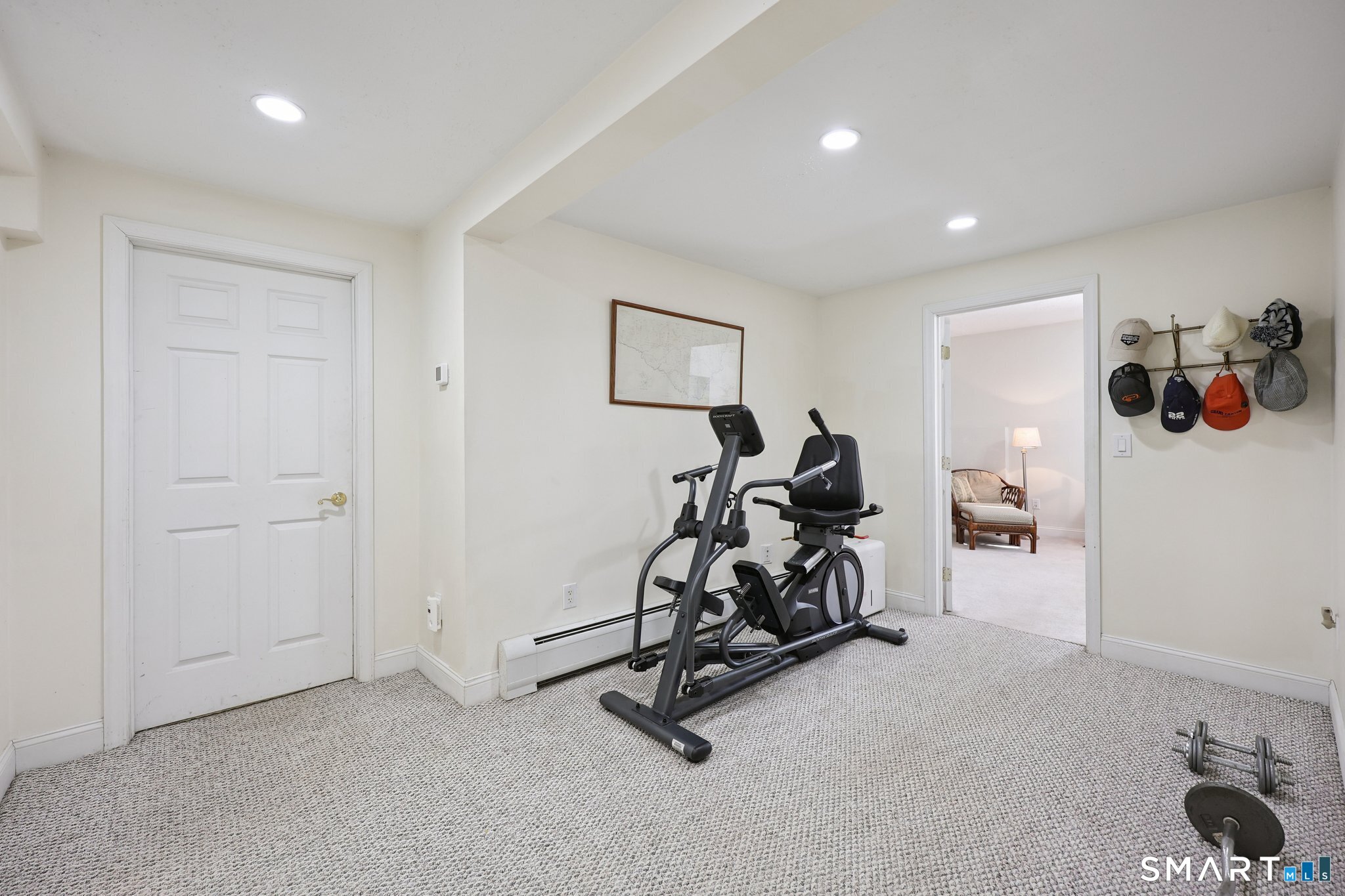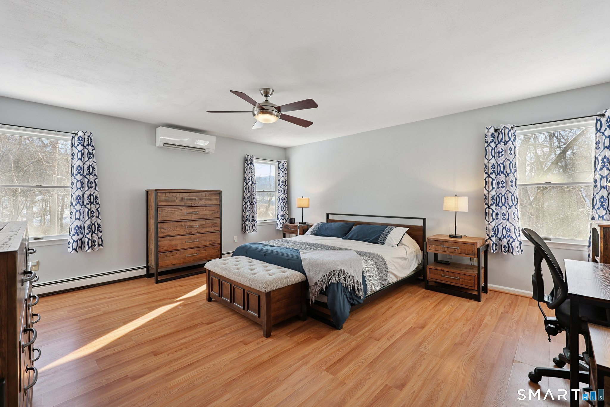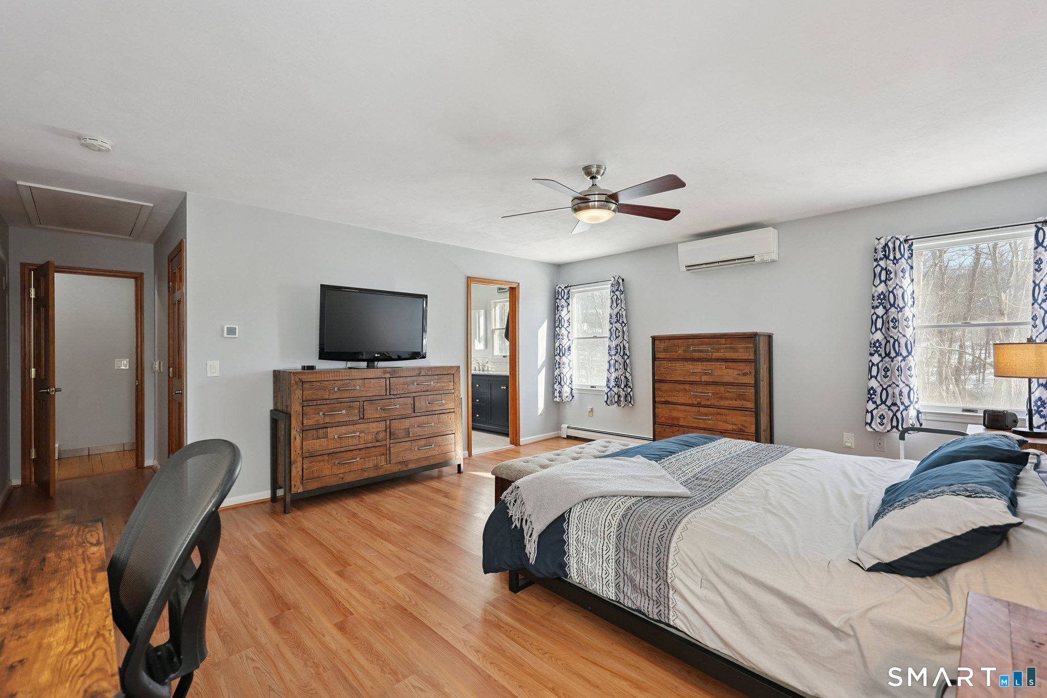 Spacious and thoughtfully designed, this 4-bed, 3-bath ranch offers nearly 2,800sf of finished living space with an impressive almost 4,000sf interior footprint. The main level features 2 beds and 2 full baths, including a comfortable primary suite, along with a large sunken living room that creates a warm and inviting gathering space. The updated kitchen is generously sized and well-appointed with an island, ample cabinetry, and room to cook and entertain with ease. The lower level expands the living space with 2 additional bedrooms, a full bath, abundant storage, and flexible areas ideal for guests, a home office, or recreation. Storage is a standout feature throughout the home. Parking and utility are equally well planned with a 2-car garage on the main level plus an oversized 1-car garage on the lower level, ideal for hobbyists, equipment, or extra vehicles. The home has seen numerous significant upgrades over the past 5 years, including a new well and well pump, new heat pump/AC splits, new boiler & water heater, new water softener, new oil tank, new septic pump, a newly paved driveway, and a beautifully remodeled primary bathroom-offering peace of mind and modern efficiency for the next owner. Set on 5.56 acres, the property provides privacy and a natural buffer, with much of the land designated as wetlands-creating a tranquil setting while keeping maintenance manageable. A well-balanced home offering space, functionality, and meaningful updates in a serene environment.