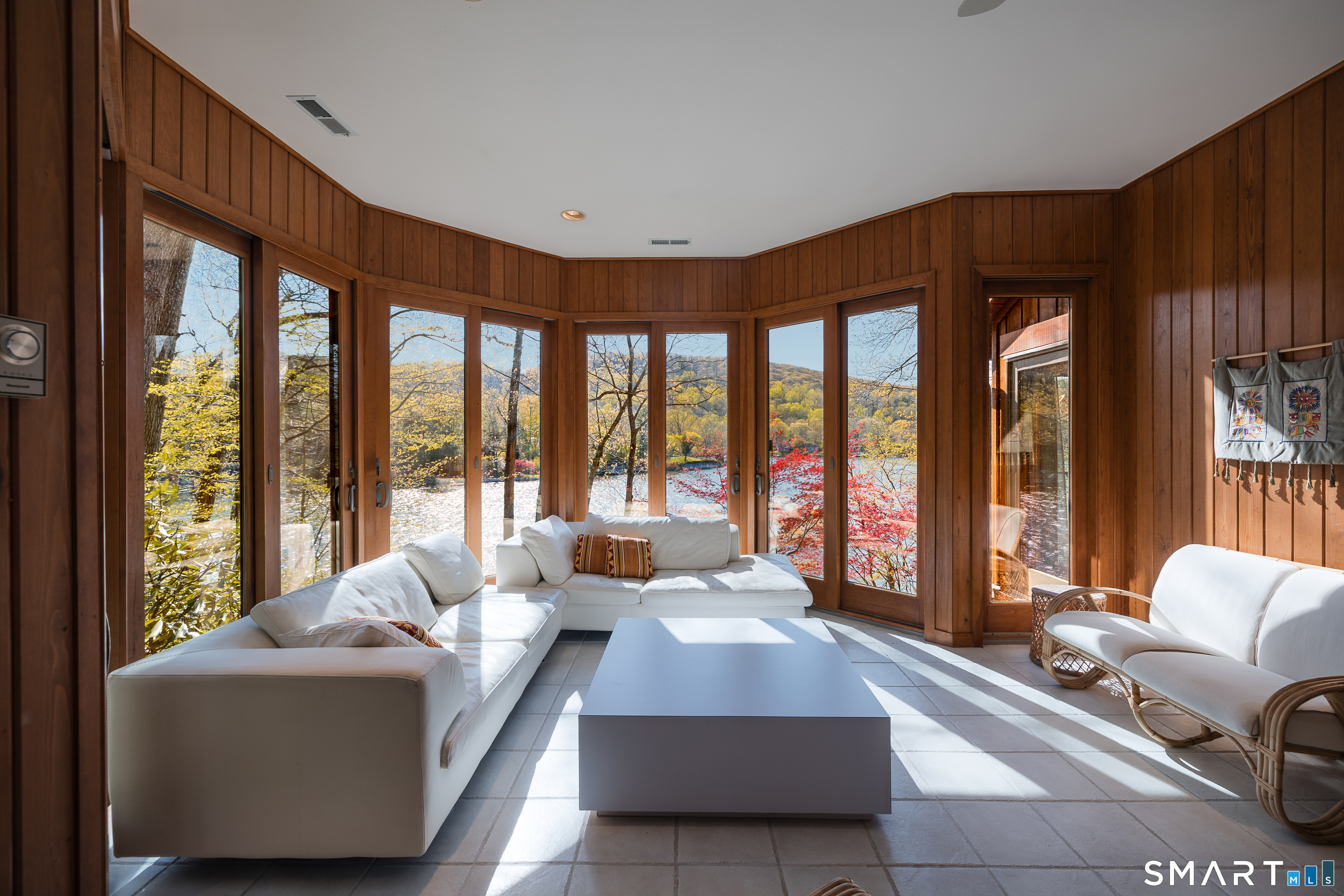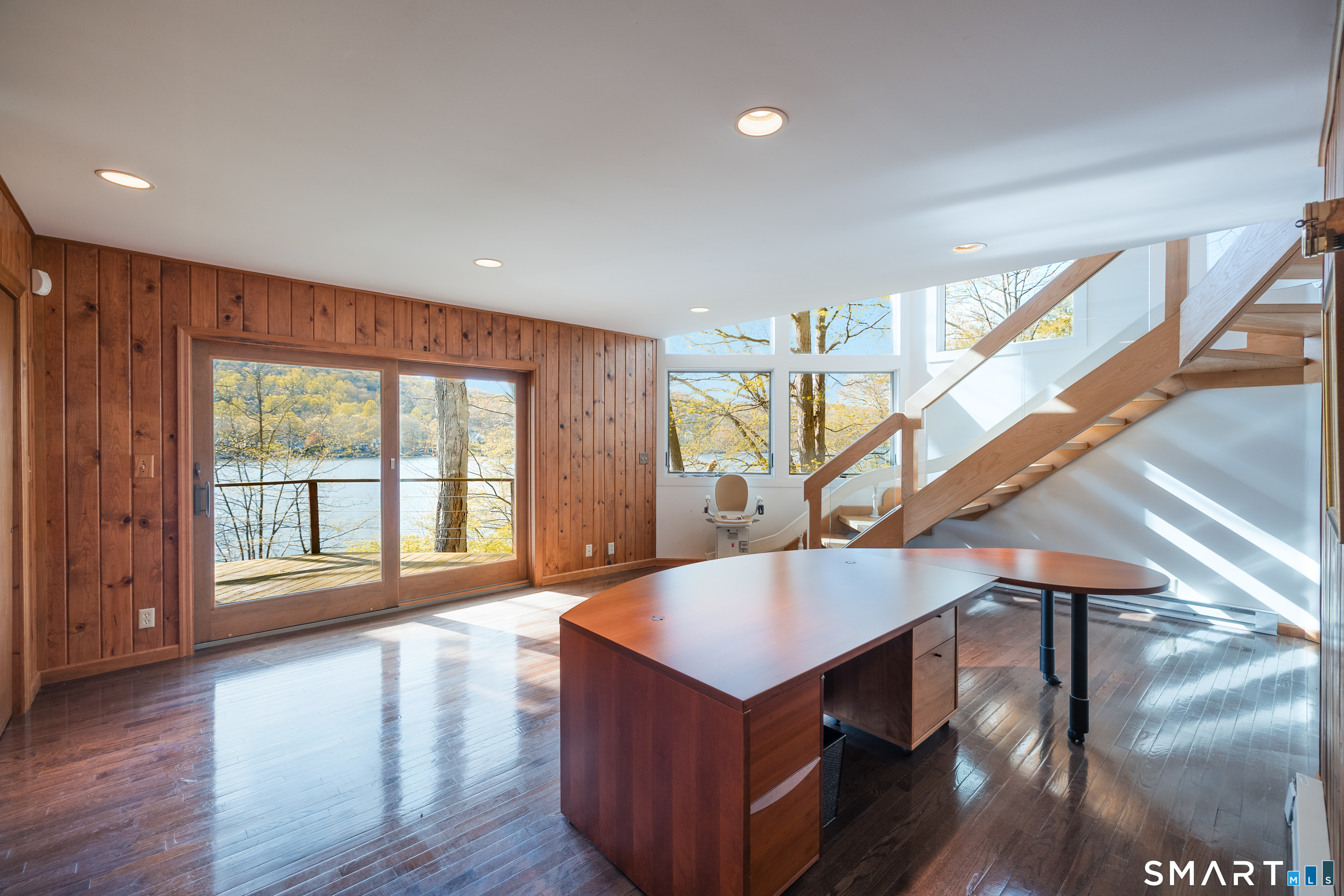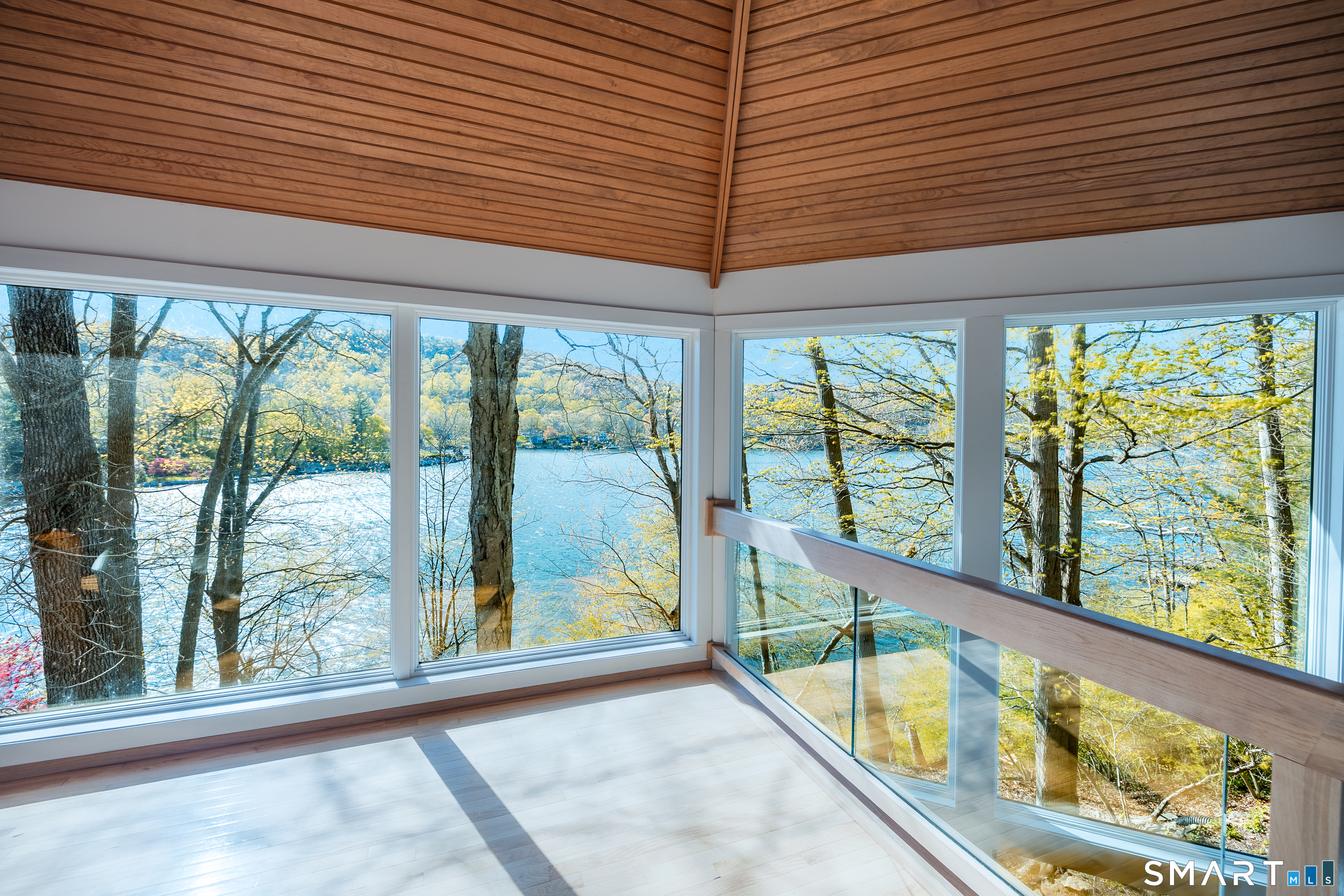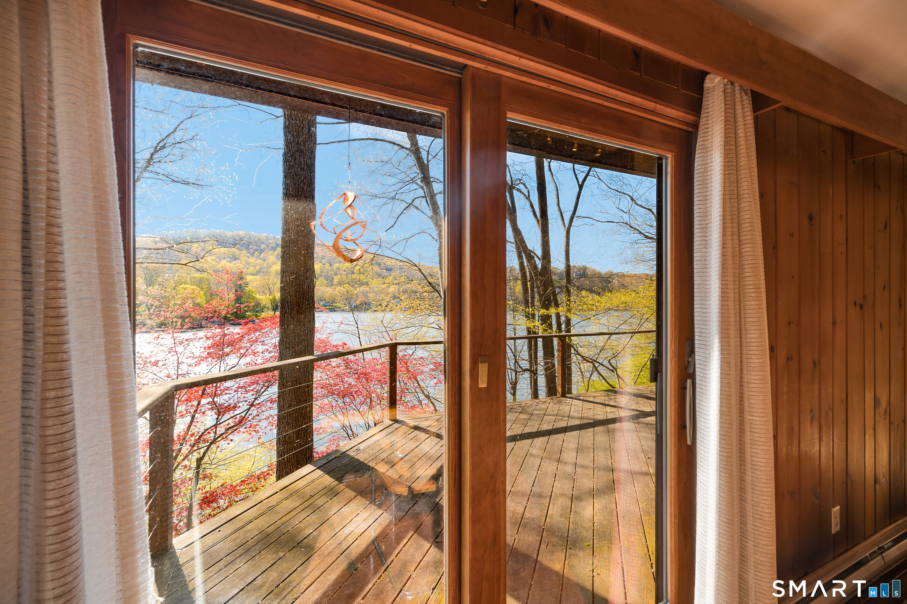 Nestled along the shores of Candlewood Lake, this masterpiece of mid-century modern design, blends timeless elegance with waterfront living. The home is a sanctuary of light and space, featuring clean lines, expansive windows, and an open floor plan that invites the outdoors in. Step inside to discover a sunlit open floor plan with warm wood finishes, and panoramic western views of the lake. Beyond, the expansive three season great room blends the inside with the outside, and has direct access to a private front deck. The kitchen is tucked back and, flows seamlessly into the dining area, making it perfect for everything from quiet breakfasts to lively dinner parties. The primary suite, encompassing the second, floor offers a tranquil retreat with the feel of a private tower overlooking the water. The lower level boast a third bedroom, full bath and lakeside access. Outside, your private oasis awaits. Lounge on the spacious deck, or take the steps down to your own dock and enjoy boating, kayaking, or simply soaking in the lake's beauty. The naturally landscaped grounds enhance the home's architectural charm, creating an idyllic setting for relaxation or entertaining. Located in the coveted Ferris Estates community, this property combines privacy with convenience, offering easy access to New Milford's charming downtown, and easy commute to NYC. Whether you're seeking a weekend getaway or a year-round residence, this home captures the essence of lake living.