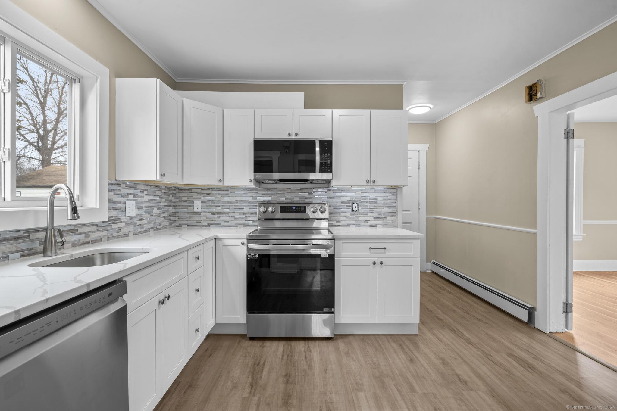 Spacious Colonial-style single-family rental located in Bridgeport's North End. This home offers 4 bedrooms and 2 full bathrooms, including a finished, heated attic that works well as a fourth bedroom, office, or flex space. The interior was updated in 2024, with improvements to the kitchen and bathrooms. The kitchen features updated countertops, appliances, and plenty of cabinet space, with a dining area just off the kitchen. Bathrooms were also refreshed in 2024, and the home has refinished wood floors throughout. With approximately 1,778 square feet, the layout is functional and comfortable. Outside, there is a long driveway with off-street parking. Convenient location close to shopping, dining, parks, and major routes. Yearly, unfurnished rental. Minimum 670 credit score required.