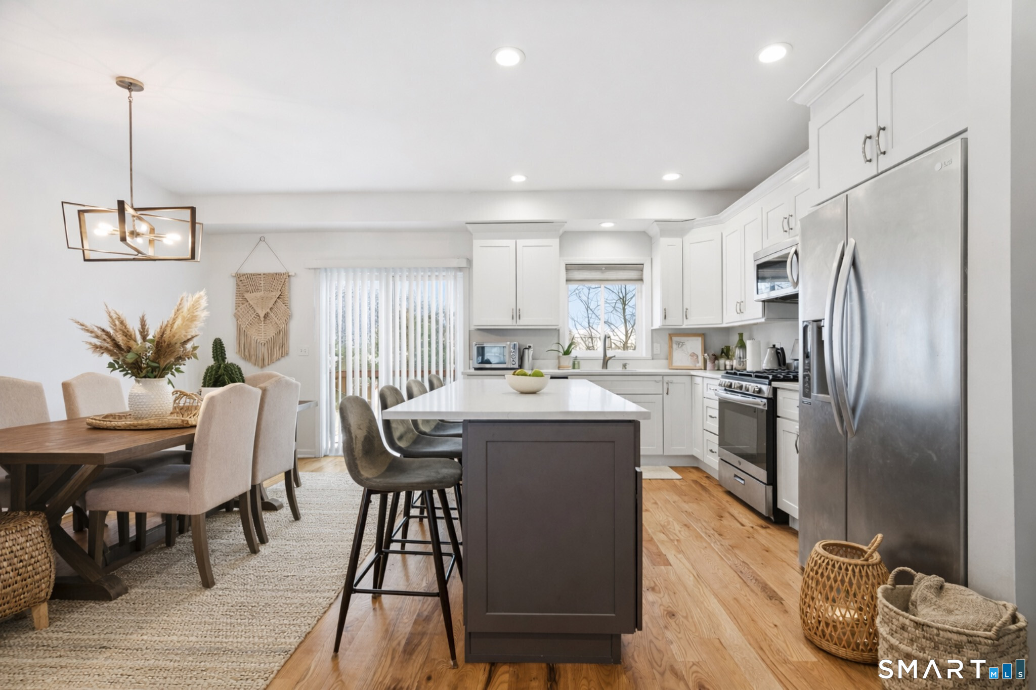Welcome to this beautifully maintained, newer-construction home set on a quiet cul-de-sac in the North End of Bridgeport. Built in 2020, this property offers the comfort, efficiency, and layout today's buyers are looking for, paired with a location that balances privacy and convenience. The main level features an open, light-filled layout with hardwood floors and seamless flow between the living, dining, and kitchen spaces, ideal for both everyday living and entertaining. The kitchen serves as the heart of the home with crisp cabinetry, stainless steel appliances, generous counter space, and a center island that opens directly into the living area. Sliding doors lead to an elevated deck overlooking a serene, tree-lined backdrop, creating a private outdoor extension perfect for relaxing or hosting. The primary bedroom stands out with a tray ceiling that adds architectural interest and a refined touch, while the additional bedrooms are bright, well-proportioned, and thoughtfully designed. The finished lower level expands the living space with a large family room, additional bedroom, full bathroom, and laundry, offering excellent flexibility for guests, home office use, or extended living arrangements. This highly desirable and conveniently located property near major highways, shopping, parks, hospitals, and Metro-North access, delivers modern construction, a functional layout, and a move-in-ready opportunity in one of Bridgeport's most sought-after neighborhoods!
