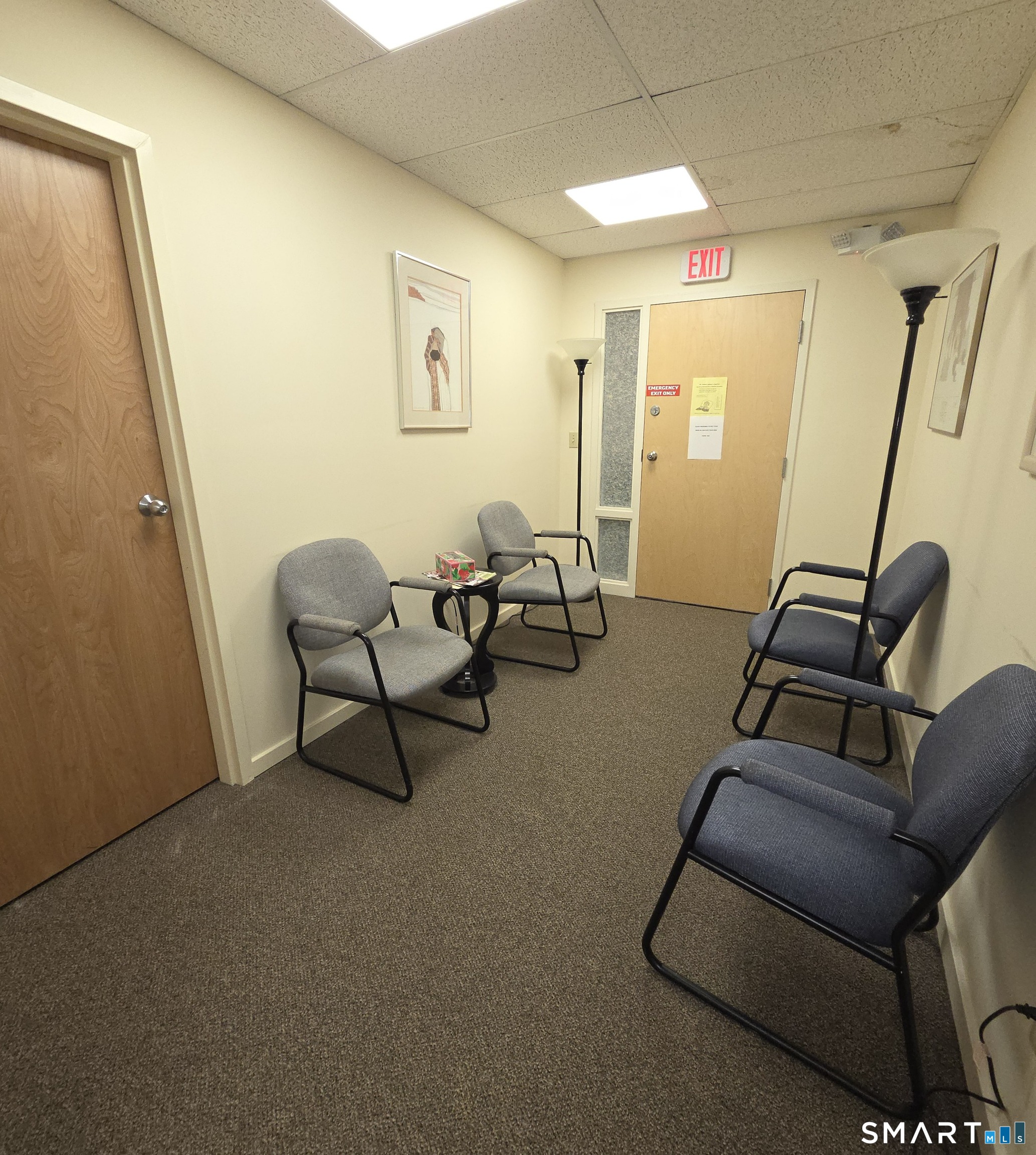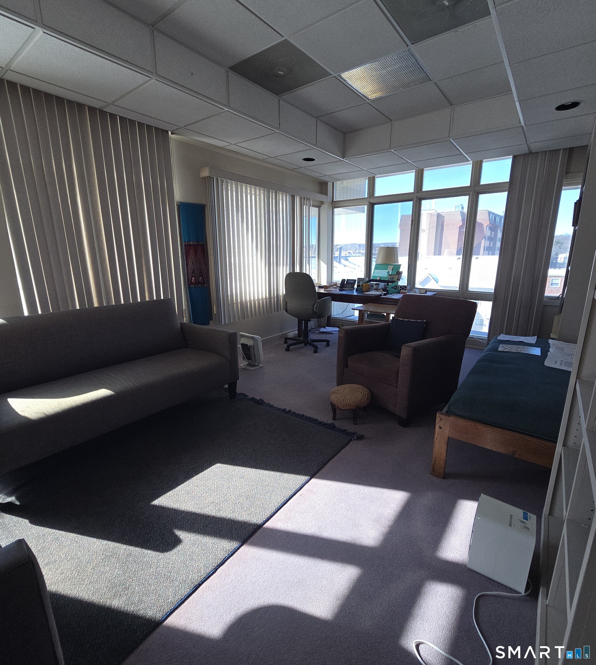 Immaculate 3,536 SF office condominium. Efficient floor plan offering private offices with large windows and lots of natural light, administrative area, 2 bathrooms, and 4 covered garage space. Ample on-site parking HVAC Gas Fired Systems. Gross Building area: 20,000 SF All Public Utilities Zone T-4 Lot Size: 1.35 Acres Easy access to I-91 and the Parkway. Condo charges $1,608.86/monthly plus $688 /monthly assessment that expires in 2032.