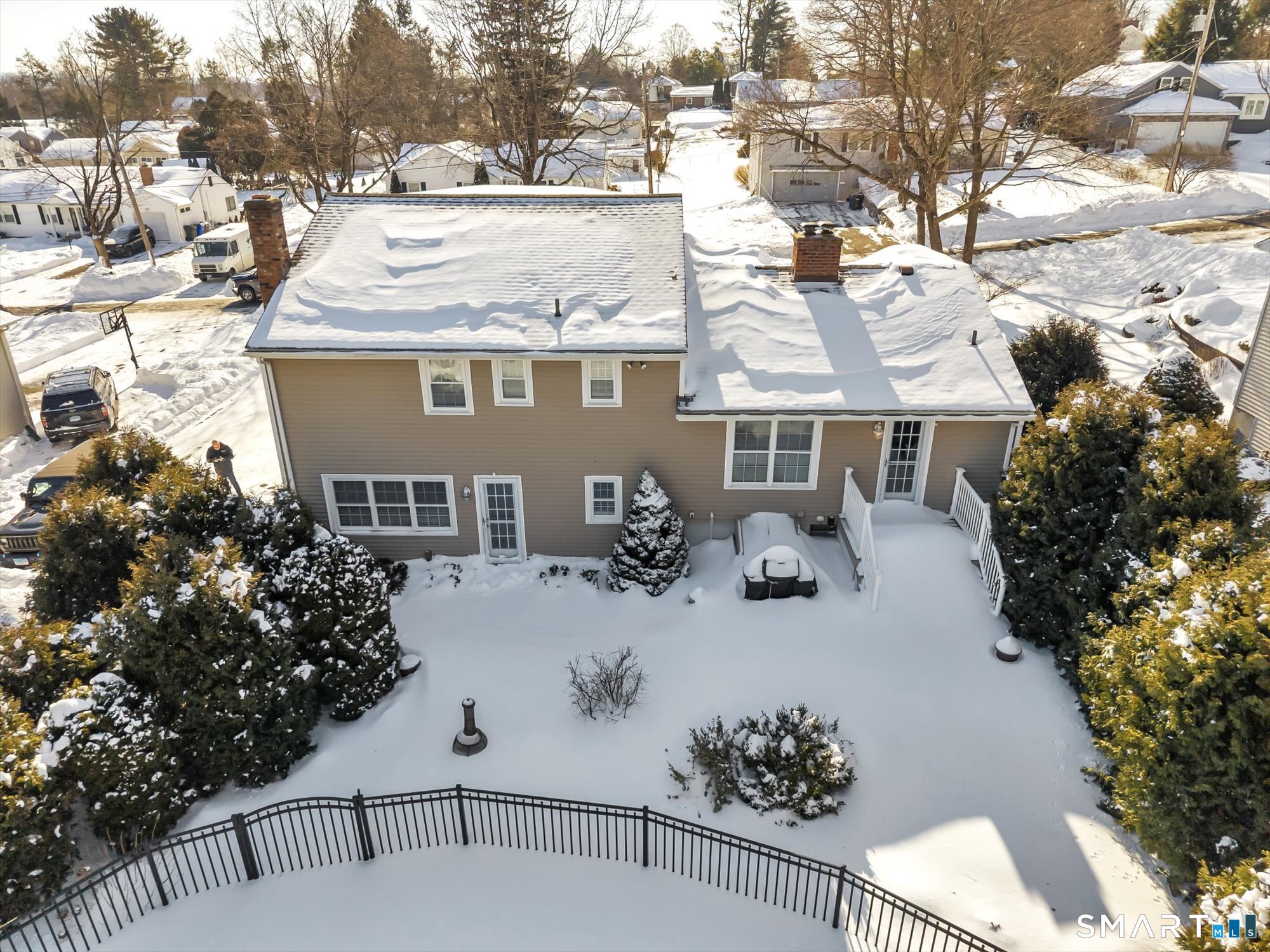 So much space in this well maintained house! Located 2 streets over from Wethersfield Country Club, 89 Merriman Road has so much to offer. The walk in level gives you access to an office, or could be converted to a family room, with a brick fireplace, ready for a wood stove, a 1/2 bath with washer and dryer setup, and the 2 car garage entrance. A quick set of steps up, gives you the main living space of eat in kitchen and a large & cozy living room. Heading upstairs, you have a full bath, 2 generously sized bedrooms and a spacious primary bedroom with full bath and walk in closet. The finished space in the lower level basement is ready for any good parties and gatherings with a sturdy bar already in place! In the unfinished area you'll find more desk space, storage space and newer mechanicals. Then, let's talk about the outside! Very private backyard, accessible from both the kitchen and first floor office area, leads you to a beautiful saltwater kidney shaped inground pool (2010)! Opened and closed yearly by Caroline pools, this area is gorgeous and has a large shed that could be used as a pool house instead! Newer windows and siding (2007), mechanicals, updated tile work in the 2 full bathrooms, Generac generator and roof (2020) also add value to this charming home. If Wethersfield is calling your name, come and check out this beauty at 89 Merriman Road today!