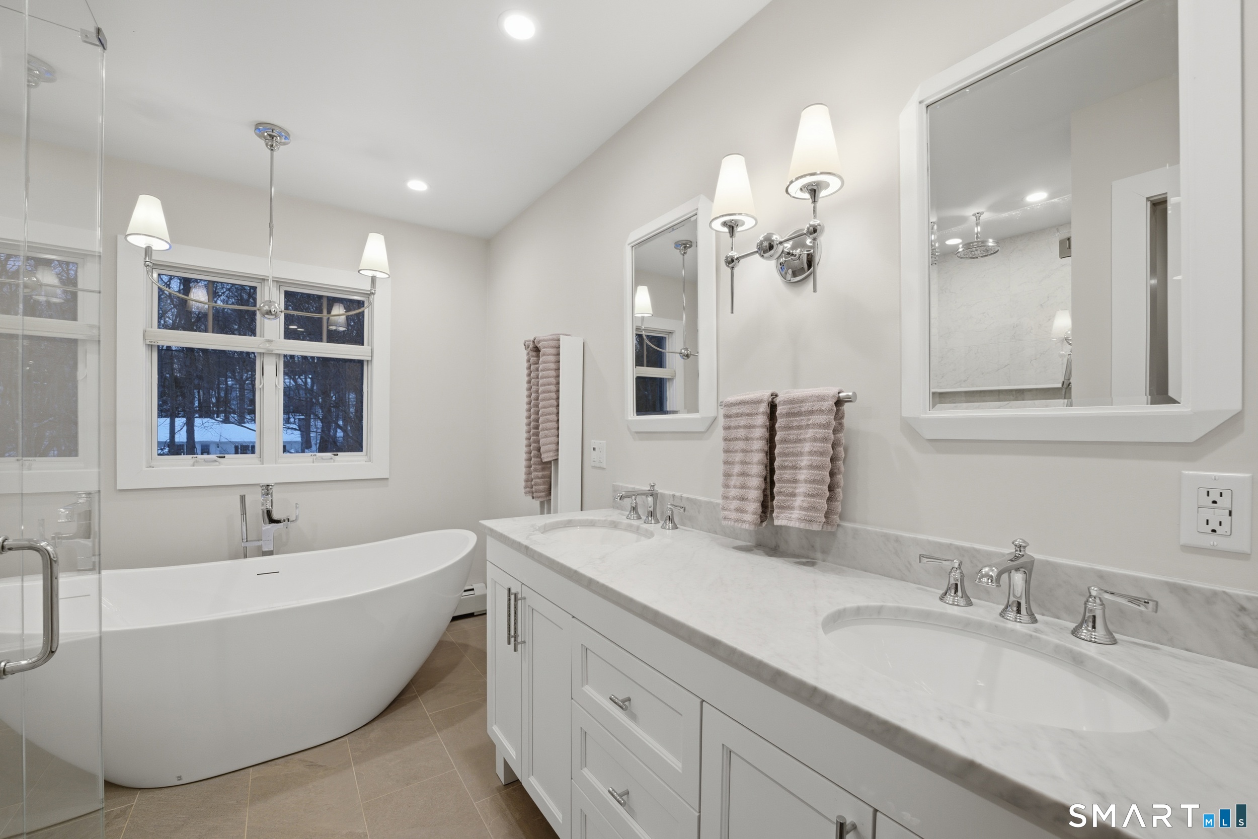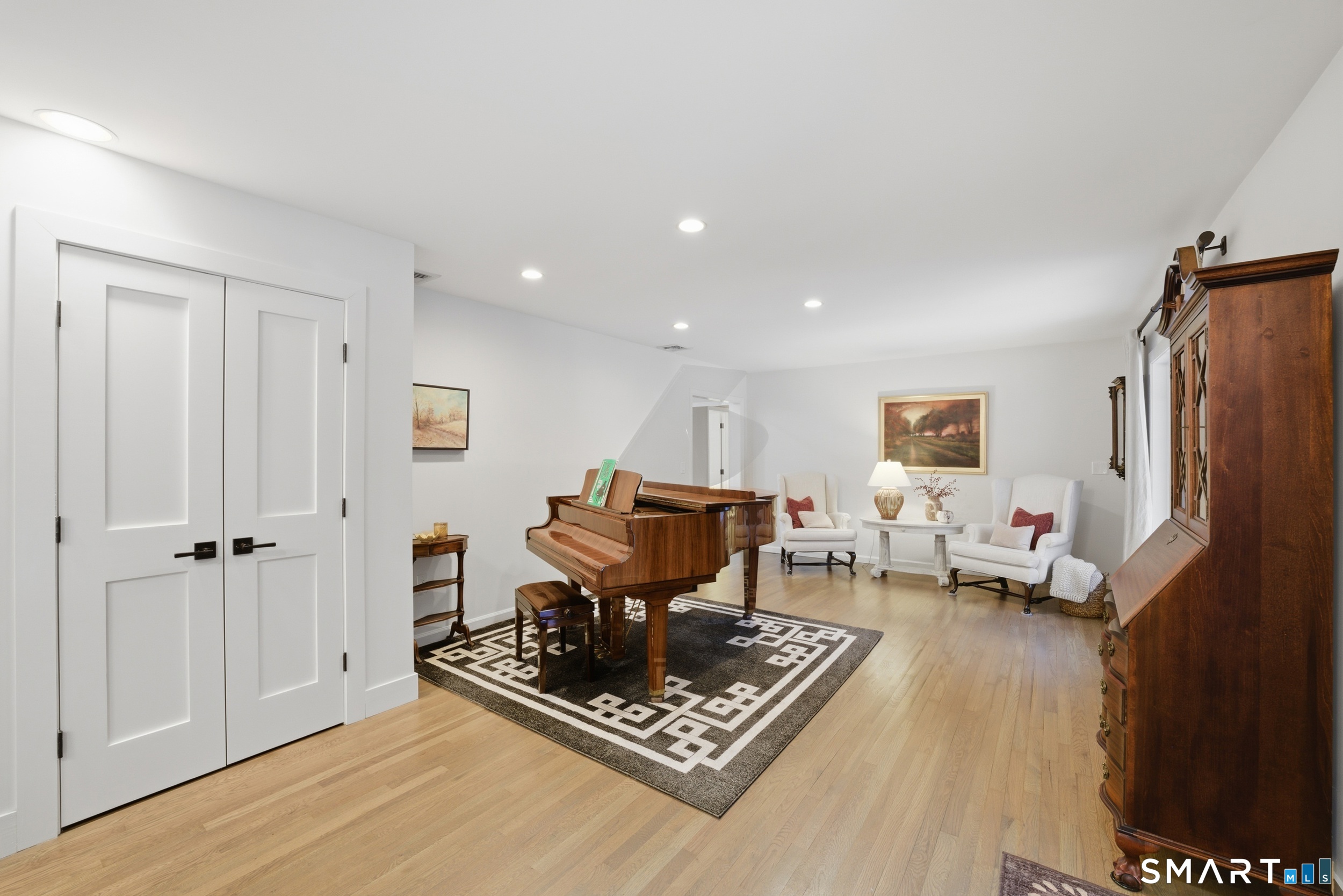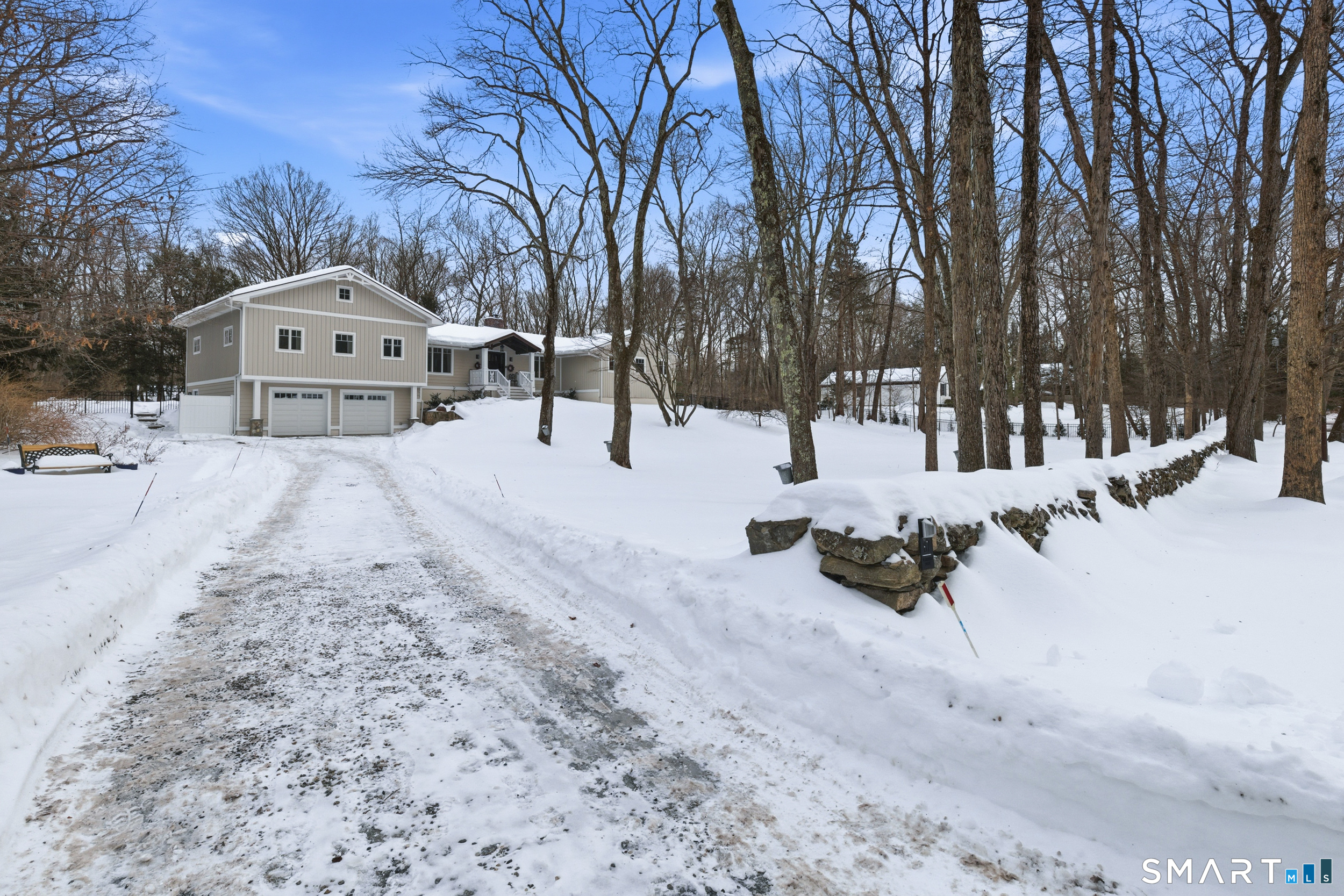 Thoughtfully updated and expanded, this exceptional 4-bed, 4 full and 1 half bath home located at the end of a private culdesac welcomes you with an open-concept kitchen, dining, and living area designed for everyday living and entertaining. The chef's kitchen features radiant heated floors, marble top island, propane 6-burner cooktop with wall ovens, 2 dishwashers, and walk-in pantry, while the adjoining living and dining spaces flow effortlessly for gatherings of any size. A convenient half bath and main-level laundry room with sink add everyday functionality. An inviting family room overlooks the expansive backyard with in-ground pool and is anchored by a New England stone fireplace with wood stove insert. The primary bedroom suite features a renovated spa-like bath with a curbless walk-in shower, freestanding soaking tub, double vanity, radiant heat floors, and a large walk-in closet. 3 additional bedrooms and 2 full baths on the main level provide additional versatility. The expansive lower level extends the living space with a large rec room, full bath, and additional room offering potential for a bedroom, gym, office, or media room. Step outside to a private backyard oasis with a pool, flagstone patio, ArmorTec pavers, bluestone coping, and mature landscaping. A large 2-car garage, with workshop and a large storage area complete this meticulously maintained, move-in-ready home, ideally located near parks, shopping, dining, and just minutes from the Merritt Parkway
