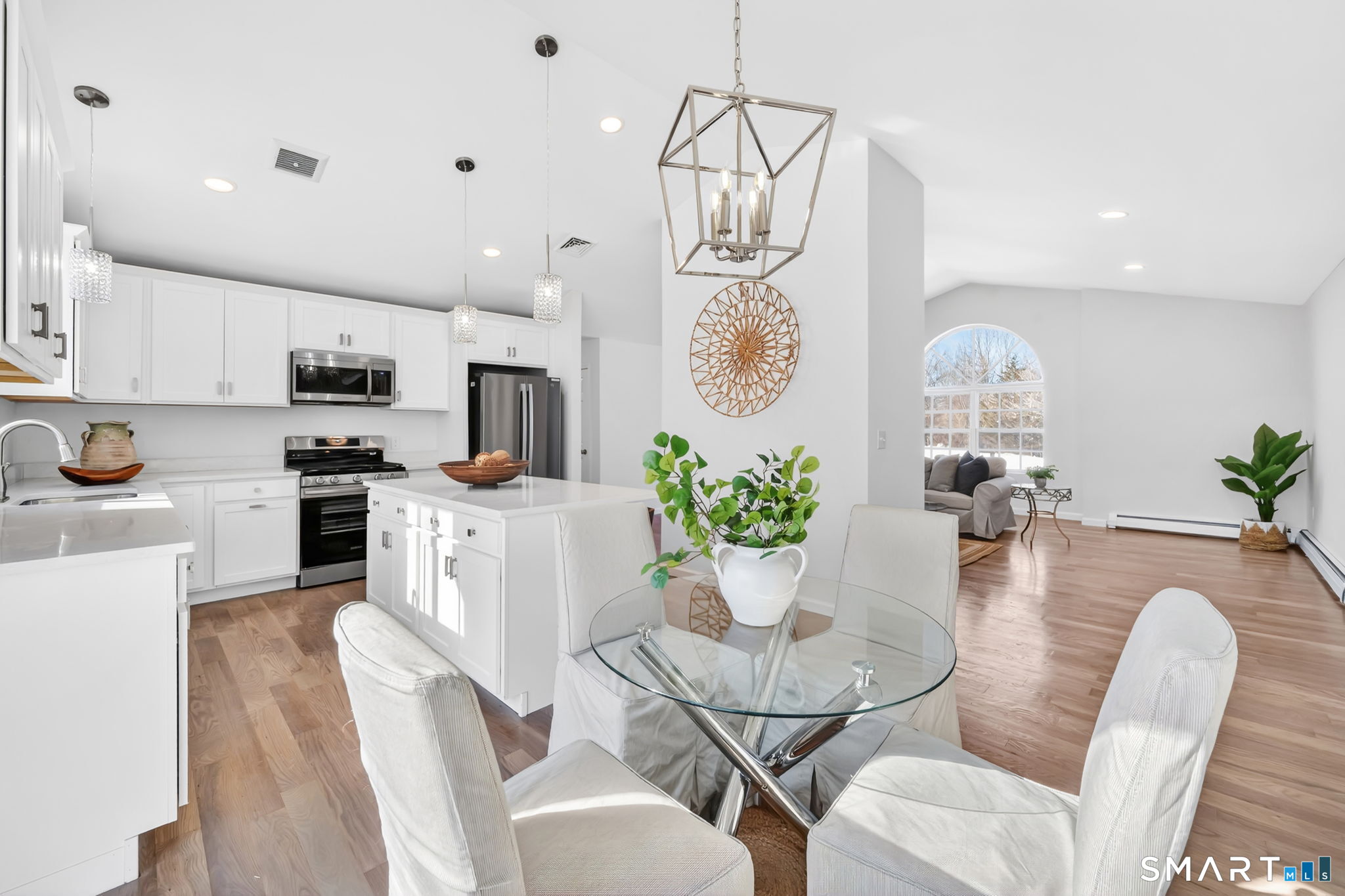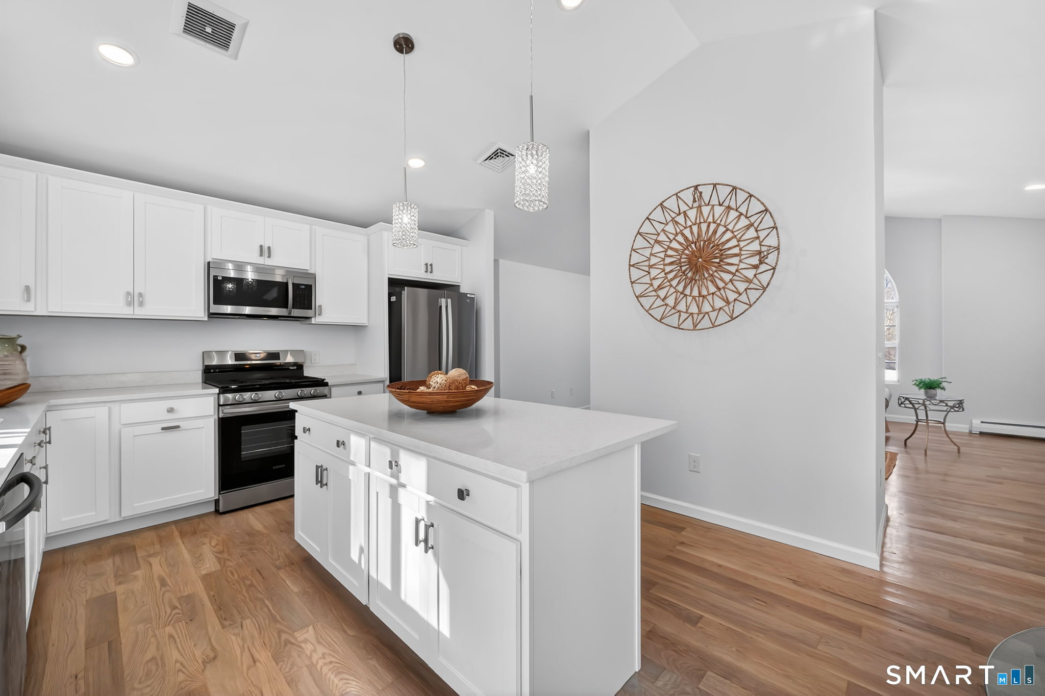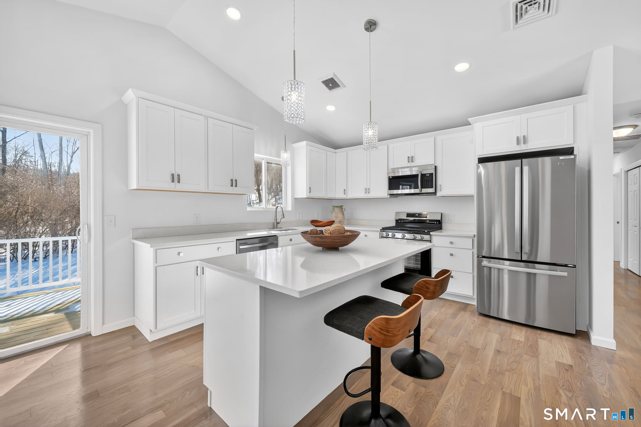 Beautifully Remodeled 281 Briarwood Lane awaits you, ideally located in the sought-after Hunt Club of Westfield in Middletown. From the moment you step inside, you're welcomed by tall cathedral ceilings, a central fireplace, and an open floor plan that creates a warm, inviting atmosphere-perfect for both everyday living and effortless entertaining. This remodeled 3-bedroom ranch features a stunning, brand-new kitchen at the heart of the home, complete with quartz countertops, a center island, new stainless steel appliances and sliders that open to the deck overlooking the private back yard that backs up to Open Space. Brand New Hardwood floors flow throughout. Oversized windows fill the home with natural light, giving each space a bright and airy feel. The primary BR suite offers a peaceful retreat with a walk-in closet and a remodeled full private bath, complemented by two additional bedrooms and a second remodeled full bath. Downstairs, the full unfinished walk-out basement provides endless potential for future living space, a home gym, or a media room. Additional highlights include Main level laundry, a 2-car attached garage, new roof, new central air, new garage doors and a newly paved driveway. Thoughtfully updated and truly move-in ready, this home is waiting for its next chapter to be written. A must See!