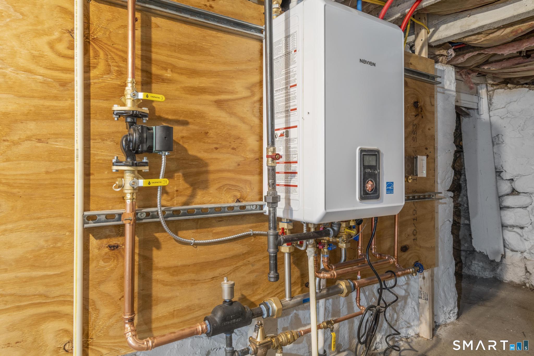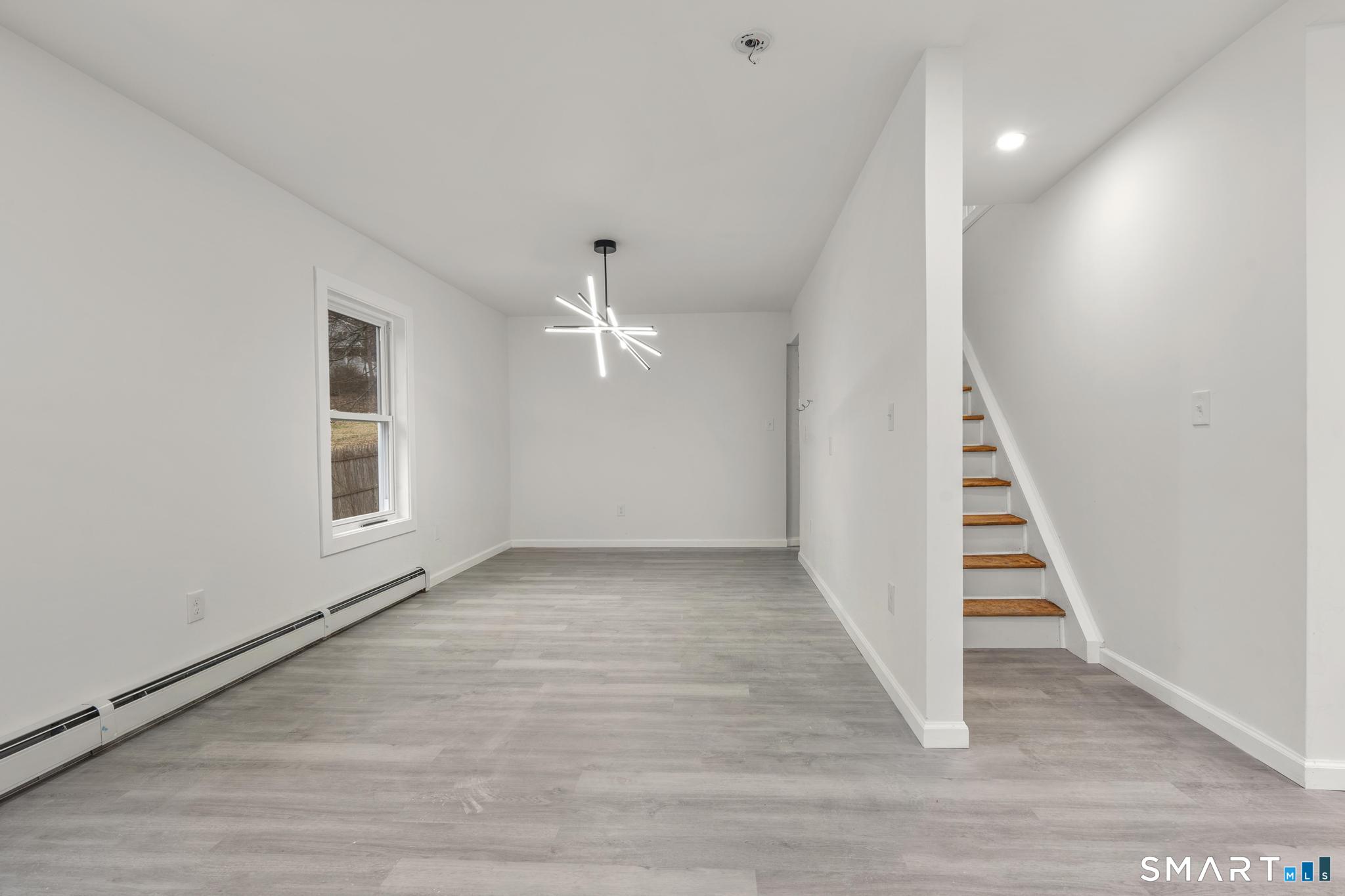 Situated on a quiet street, this beautifully renovated Colonial offers nearly 1,700 SF of open, modern living space with 3 bedrooms and 2 full bathrooms. Renovated from top to bottom-inside and out-this home truly checks all the boxes. The main level features a bright, sun-filled living room with vinyl hardwood floors that flows seamlessly into the updated dining area and eat-in kitchen, complete with stainless steel appliances, modern cabinetry, and sleek countertops. A full bathroom with laundry hookup completes the first floor. Upstairs, you'll find three bedrooms, each with vinyl hardwood floors and ample closet space. The second-floor layout provides excellent separation from the main living area, offering privacy and a peaceful retreat. The fully remodeled upstairs full bathroom showcases modern fixtures, updated tile, and clean, contemporary finishes designed for both style and functionality. This home is essentially brand new, featuring new siding, windows, roof, plumbing, insulation, sheetrock, and interior finishes throughout. Additional upgrades include a new full-size electrical panel and a high-efficiency Navien heating system providing both heat and hot water. Exterior highlights include a newly paved driveway offering ample off-street parking, along with a small shed on the property providing convenient additional storage. Move-in ready with stylish finishes throughout-don't miss this exceptional opportunity!
