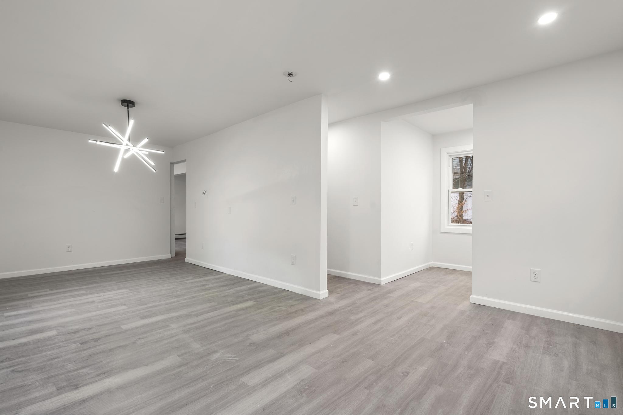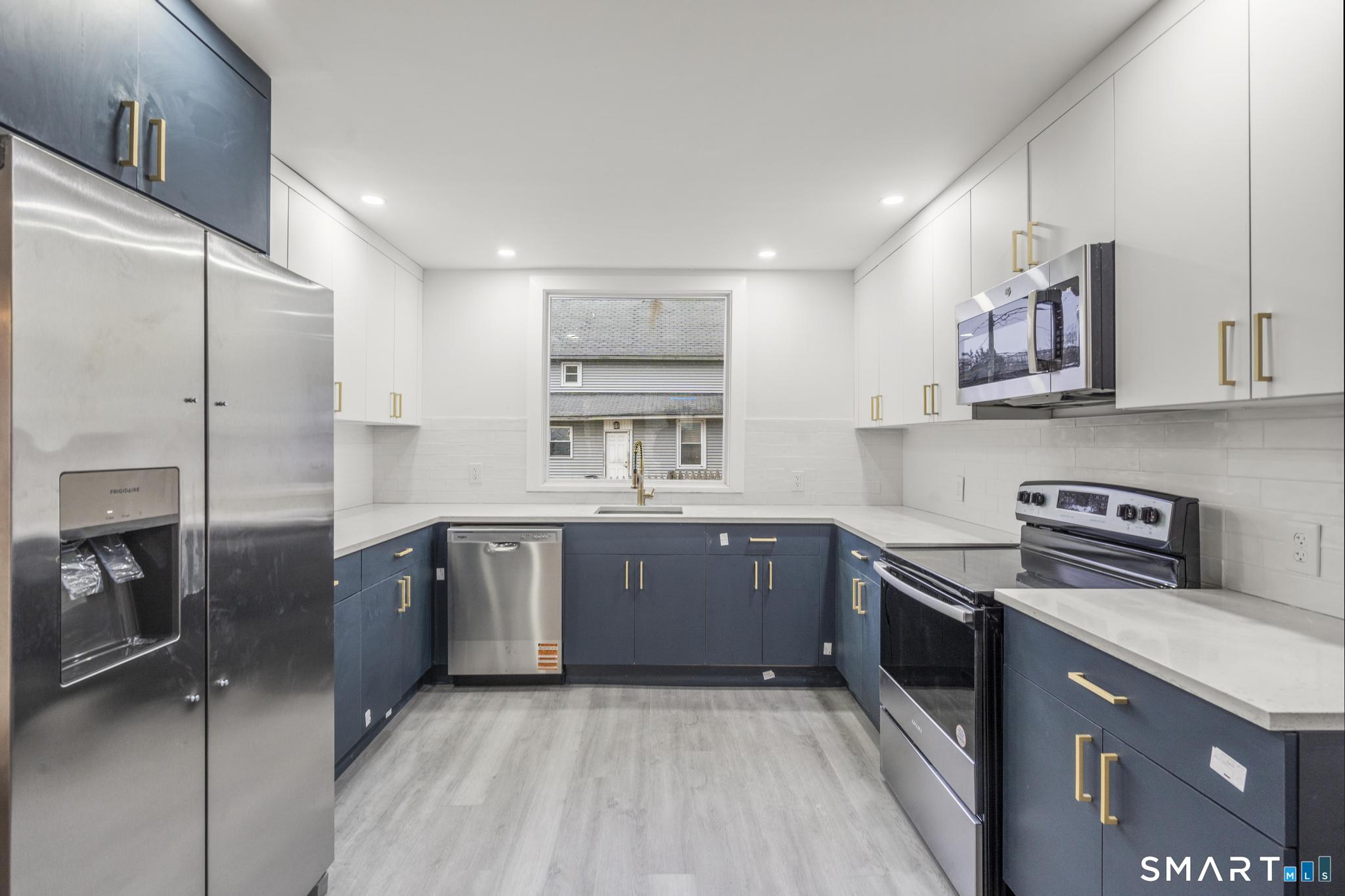 Situated on a quiet street, this beautifully renovated Colonial offers nearly 1,700 SF of open, modern living space with 3 bedrooms and 2 full bathrooms. Renovated from top to bottom-inside and out-this home truly checks all the boxes. The main level features a bright, sun-filled living room with vinyl hardwood floors that flows seamlessly into the updated dining area and eat-in kitchen, complete with stainless steel appliances, modern cabinetry, and sleek countertops. A full bathroom with laundry hookup completes the first floor. Upstairs, you'll find three bedrooms, each with vinyl hardwood floors and ample closet space. The second-floor layout provides excellent separation from the main living area, offering privacy and a peaceful retreat. The fully remodeled upstairs full bathroom showcases modern fixtures, updated tile, and clean, contemporary finishes designed for both style and functionality. This home is essentially brand new, featuring new siding, windows, roof, plumbing, insulation, sheetrock, and interior finishes throughout. Additional upgrades include a new full-size electrical panel and a high-efficiency Navien heating system providing both heat and hot water. Exterior highlights include a newly paved driveway offering ample off-street parking, along with a small shed on the property providing convenient additional storage. Move-in ready with stylish finishes throughout-don't miss this exceptional opportunity!