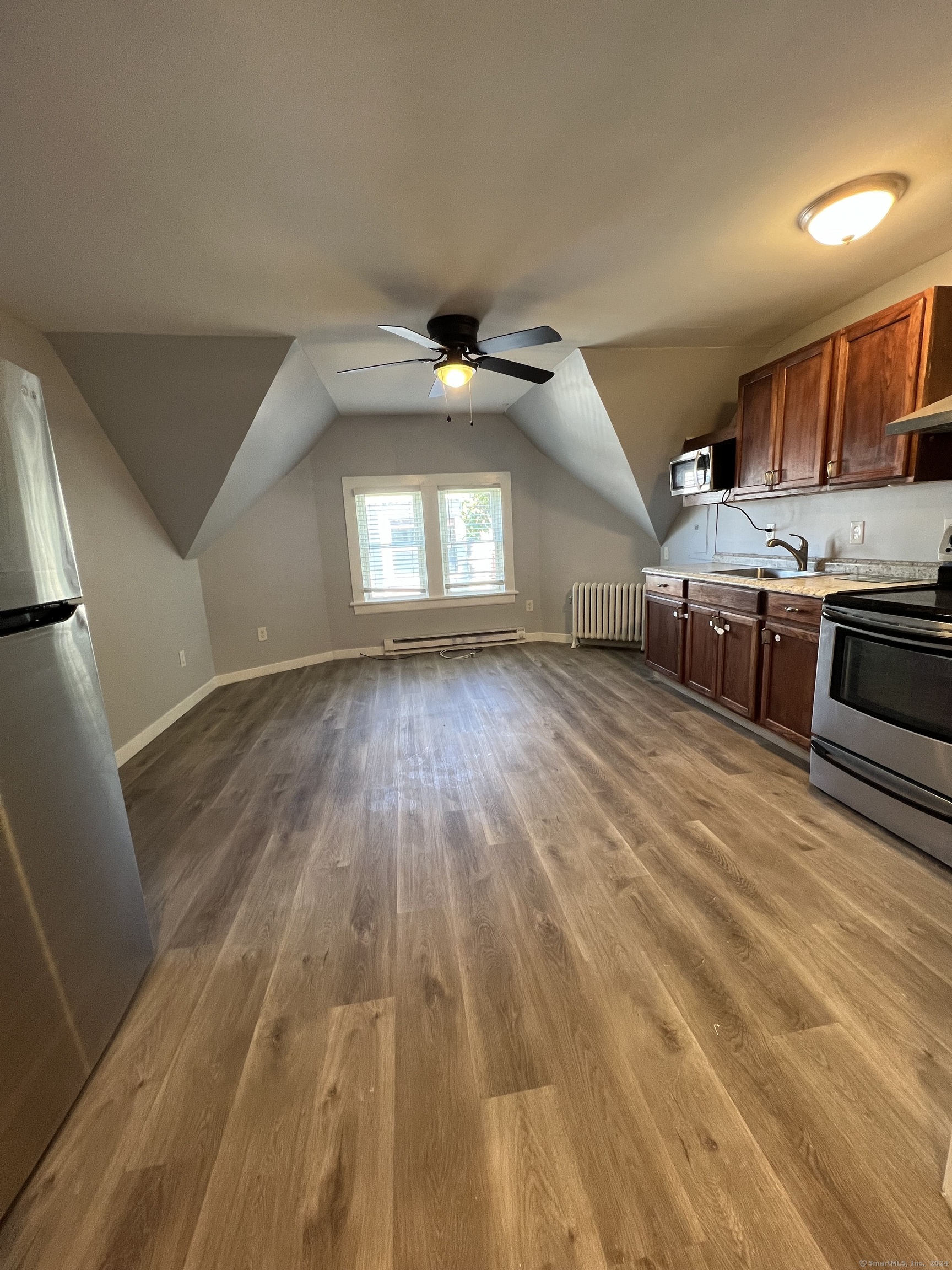 THIRD FLOOR PENTHOUSE UNIT AVAILABLE FOR RENT!! This apartment is in a beautifully restored 1830's historic duplex with many original details: high ceilings, crown molding, restored staircase, vintage radiators, and original wooden doors with antique hardware, and new flooring throughout. Brand new bath and kitchen with stainless steel appliances. This unit offers a large open floor plan with kitchen/living room, ideal for working from home. Large bedrooms with lots of original features. This unit overlooks the historic St. Mary Star of the Sea Church across the street and the famous Starr Street to the rear, along with views of the New London Harbor. Rent includes heat! No smoking, pets allowed. 650+ credit score and income 3x the rent required.