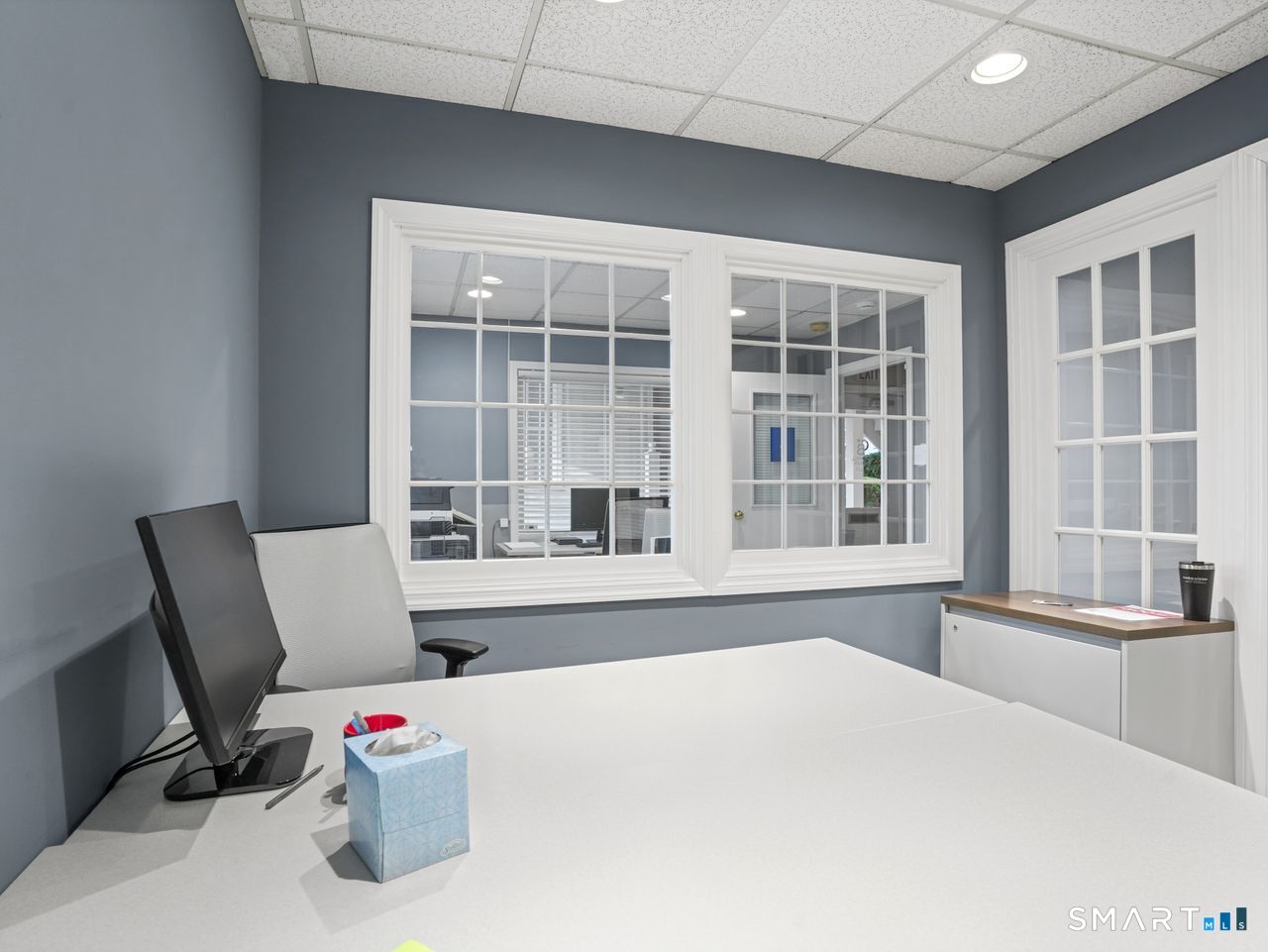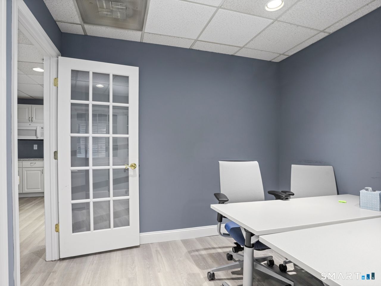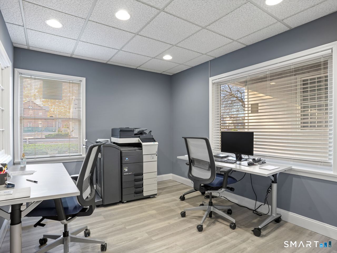 * Remodeled First Floor Office Space available Now with 684 sqft in the Ransom's Walk Complex. * This Townhouse-style Commercial Office consists of two units and is located in Stratford, a vibrant coastal town known for its strong business community with convenient access to I-95 and Metro North. Current first floor layout consists of two private offices, reception area/additional office space, recessed lighting, kitchen with drop-in counter, half bath, front and back door access for convenience. Office has gas heat, central air, ample parking and dumpster access. Kitchen area includes cabinets, microwave, refrigerator and sink. Permitted use is professional office (i.e. Real Estate, Mortgage Company, Attorney, Insurance, Sales Office etc.) Walking distance to restaurants and train station. Second floor unit is currently leased to a Realtor with separate entrances. Available for immediate occupancy.