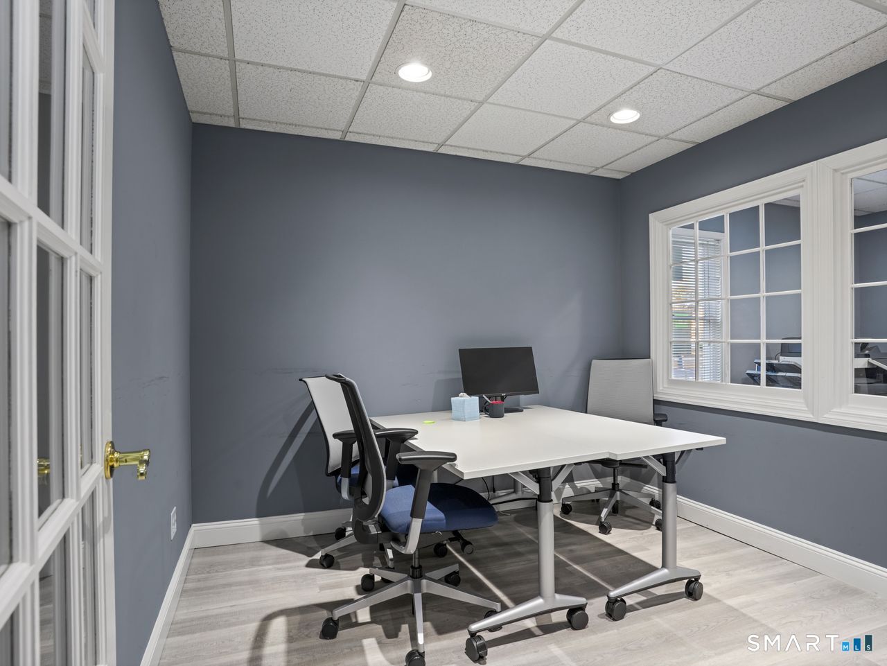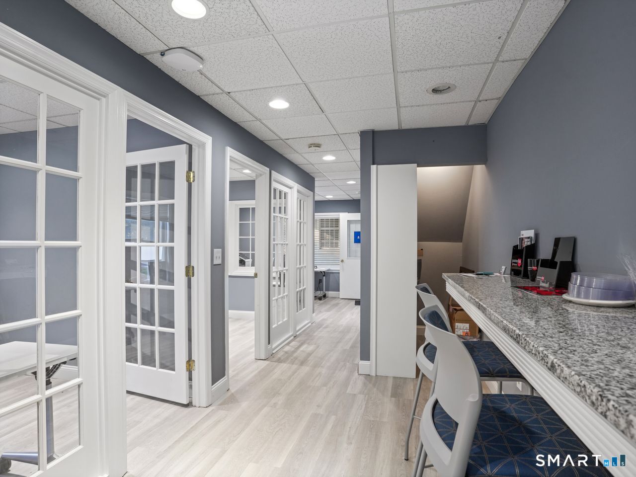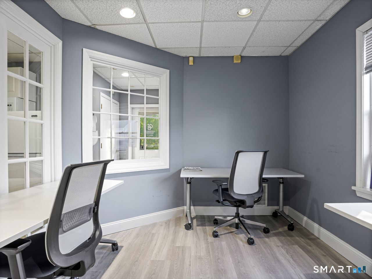 * Remodeled First Floor Office Space available Now with 684 sqft in the Ransom's Walk Complex. * This Townhouse-style Commercial Office consists of two units and is located in Stratford, a vibrant coastal town known for its strong business community with convenient access to I-95 and Metro North. Current first floor layout consists of two private offices, reception area/additional office space, recessed lighting, kitchen with drop-in counter, half bath, front and back door access for convenience. Office has gas heat, central air, ample parking and dumpster access. Kitchen area includes cabinets, microwave, refrigerator and sink. Permitted use is professional office (i.e. Real Estate, Mortgage Company, Attorney, Insurance, Sales Office etc.) Walking distance to restaurants and train station. Second floor unit is currently leased to a Realtor with separate entrances. Available for immediate occupancy.