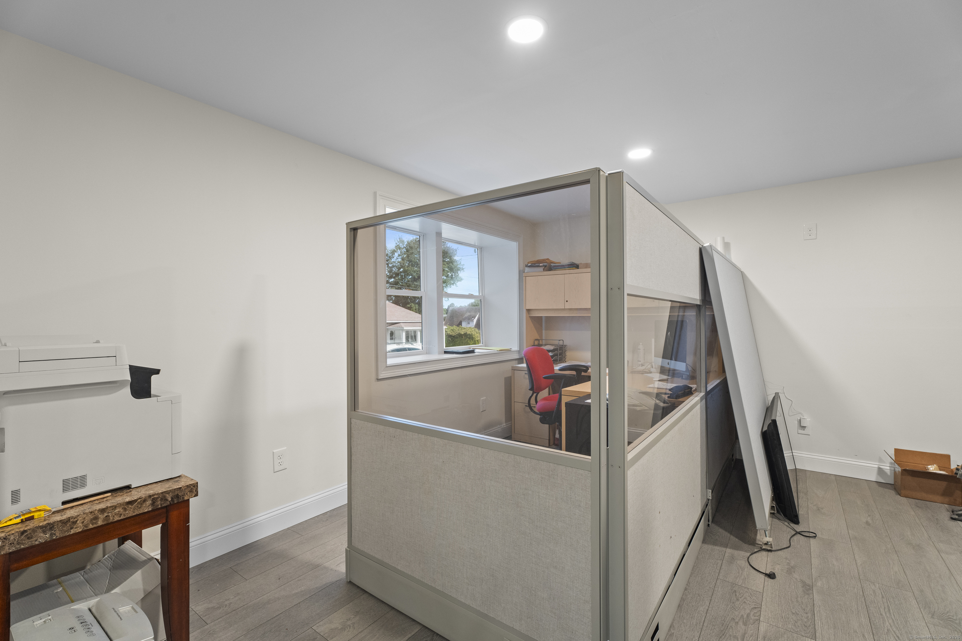 Versatile office/warehouse space available for lease, ideal for new business owner, contractors, landscapers, home builders, real estate offices, or any business requiring office space with secure equipment or storage capabilities. The property features two drive-up garage/dock doors for efficient loading and unloading, newer roof, updated interior finishes, a kitchen, and a full bathroom. A security system with cameras is in place (activation required). The site offers ample on-site parking and convenient access to I-95, providing excellent regional connectivity. Office partitions, warehouse shelving, and a forklift are negotiable, allowing for a largely turnkey occupancy. Offered on a Triple Net (NNN) lease basis. Lease-option or lease-to-own terms may be considered for qualified tenants. Seller is motivated and open to strong rental proposals.