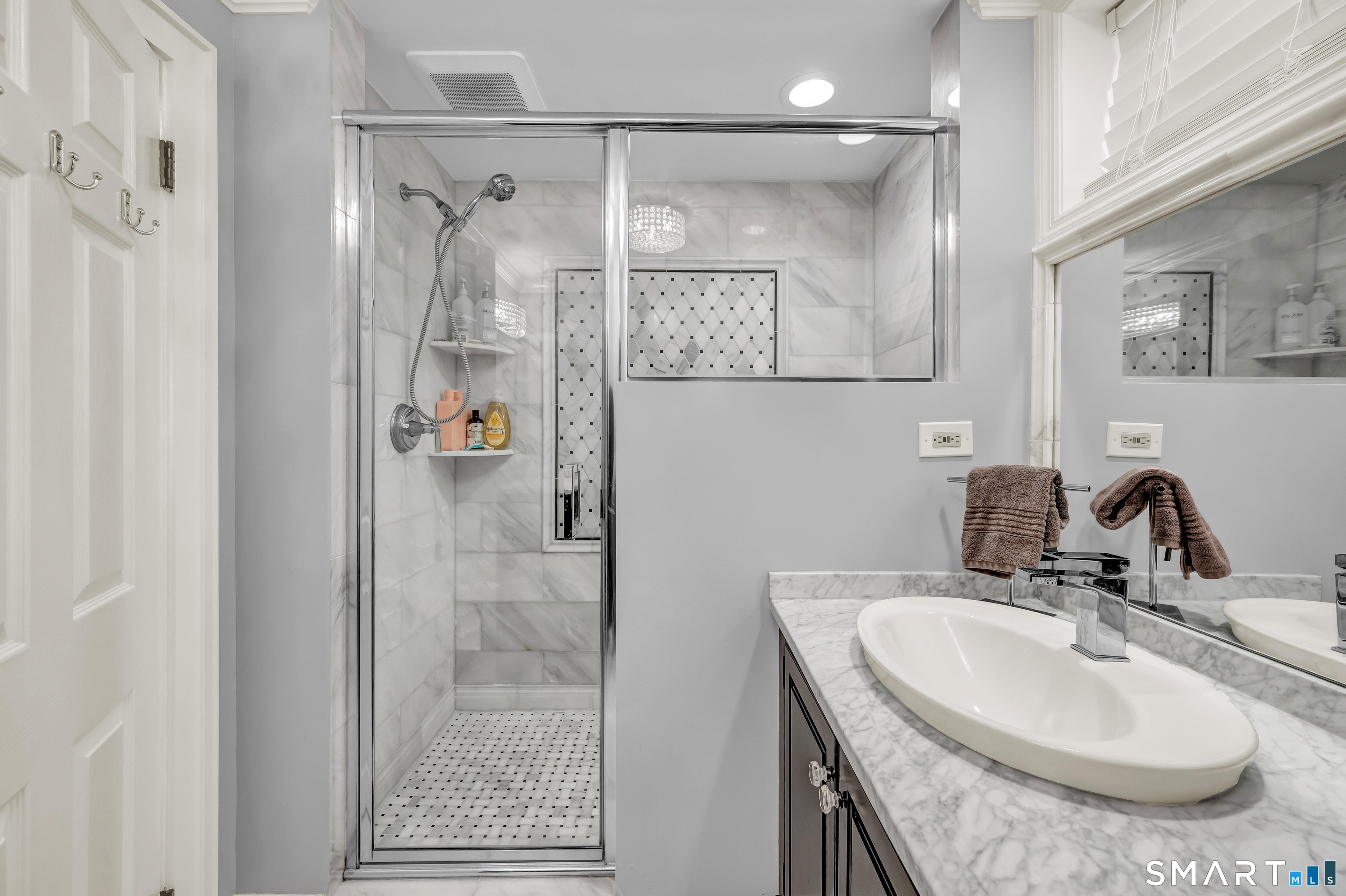 HIGHStunning, sleek, and truly unique 3-4 bedroom Raised Ranch-style home located in the highly sought-after Candlewood Orchards lake community, just a short stroll to Candlewood Lake with access to a private beach. This mint-condition home showcases exceptional attention to detail throughout. Stone walls and a bluestone walkway lead to a welcoming front portico. Inside, the bright, high-end kitchen features custom cabinetry, granite countertops, stainless steel appliances, and a gas Wolf range. The dining area opens to a cozy living room highlighted by a gas fireplace and impressive pine vaulted ceiling. A sun-filled four-season room with a coffered ceiling provides additional living space-ideal for entertaining or relaxing year-round. The main level offers three bedrooms with hardwood floors, coffered ceilings, and shiplap, along with a beautifully remodeled full bath. The lower level adds flexible living space including a fourth bedroom, an office for work-from-home (or 5th bedroom), and a stunning newly renovated full bath with walk-in shower. Energy-efficient features include propane heat, central air, a Navien tankless hot water system, and central vacuum. Outdoors, enjoy a level, professionally landscaped yard with a large bluestone patio, natural privacy from mature plantings, and a convenient storage shed. Ideally located near shopping, schools, and highways, yet tucked away in a quiet, scenic lake community. HIGHEST AND BEST DUE TUESDAY 2/3 BY 5:00 P.M.