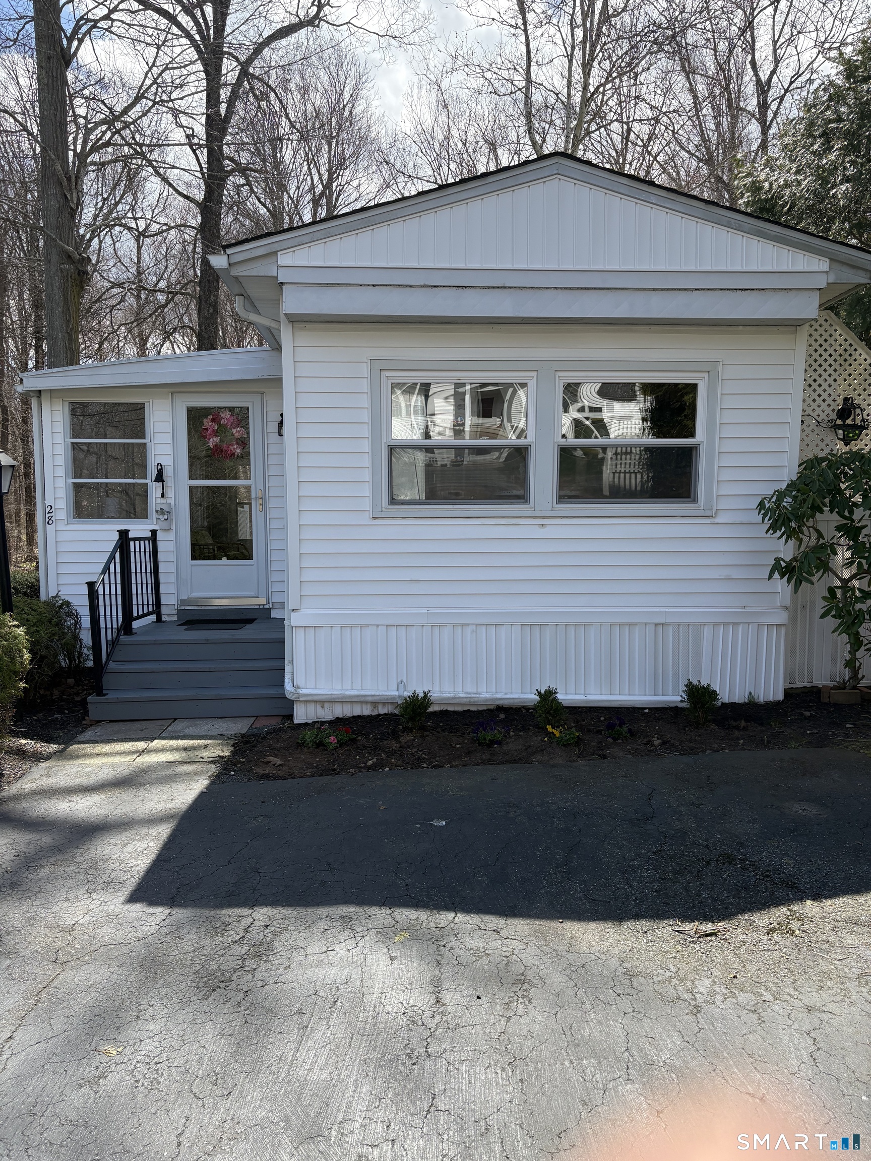 Come and be wowed! This little gem has been transformed into an inviting and special retreat in this very desirable 55+ community. Interior improvements are new floors, freshly painted, stunning new kitchen with breakfast bar, ship lap panels on porch area and new carpeting. This home is bright and backs up to the woods for extra privacy. Town records say 1 bedroom but there is an additional room with laundry that has room for a small bed or office area. There is an additional 176 sf for the 3 season sunroom, which gives a total of 752 sf to this home. Enjoy the beautiful club house and community in ground pool. This sweet retreat will not last. Schedule your appointment to view soon! Monthly 571 is a land lease not HOA. Agent is related to owner.