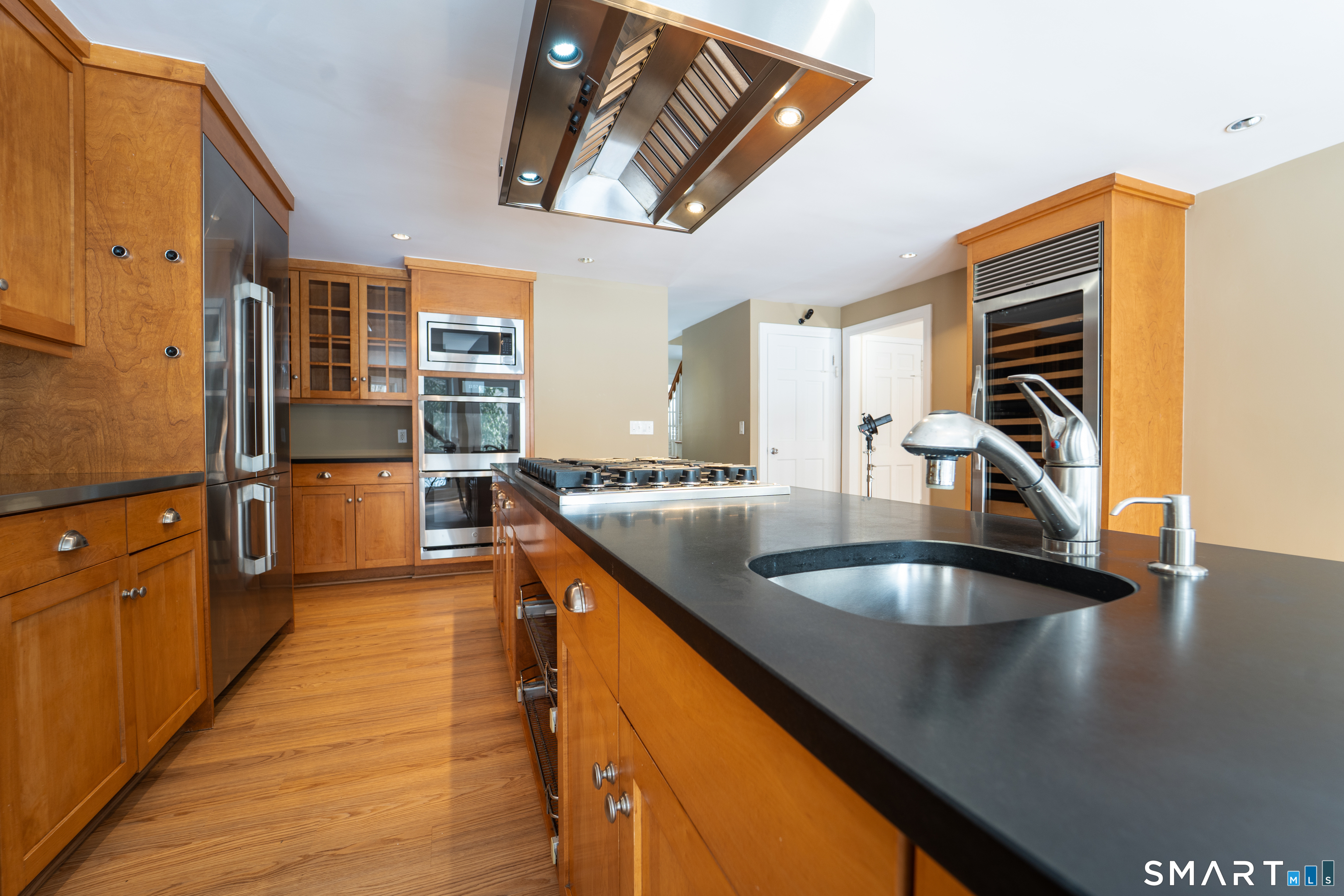 Welcome to 160 Rock Rimmon Road, a Stamford retreat designed for unforgettable gatherings and effortless everyday living. Set on a quiet, scenic stretch, this home offers the perfect balance of privacy, space, and flow-ideal for those who love to host. At the center of it all is a chef's kitchen designed by Andrea Immer-Robinson, Chef, Master Sommelier and Television personality. The kitchen was designed to impress-designed for serious cooking and seamless entertaining alike. With generous prep space and a layout that keeps the host connected to guests, it's equally suited for intimate dinners or large-scale celebrations. This is where meals become events and entertainment feels effortless. This home also offers a well-balanced first floor layout with generously sized rooms. The light filled living spaces flow easily from room to room creating a warm and inviting atmosphere. The four bedrooms are comfortably proportioned, offering flexibility for primary sleeping quarters, guest rooms or home office use. The primary suite is a peaceful retreat with generous closet space and a well-appointed bath. Outdoor spaces further elevates the experience, providing a natural backdrop for summer barbecues, al fresco dining, or evenings under the stars. The inground pool with custom lighting is the pinnacle of entertaining delight. The setting feels tucked away and yet remains conveniently close to Stamford's dining, shopping and commuter routes.