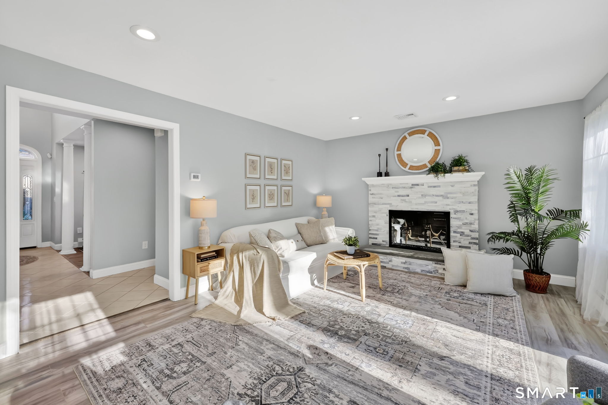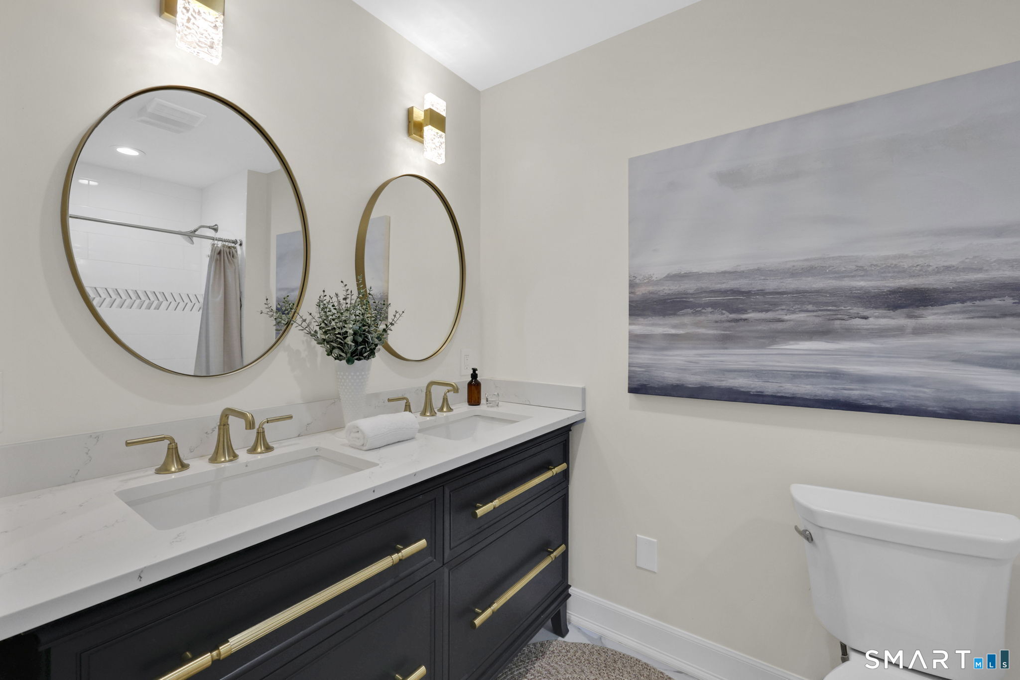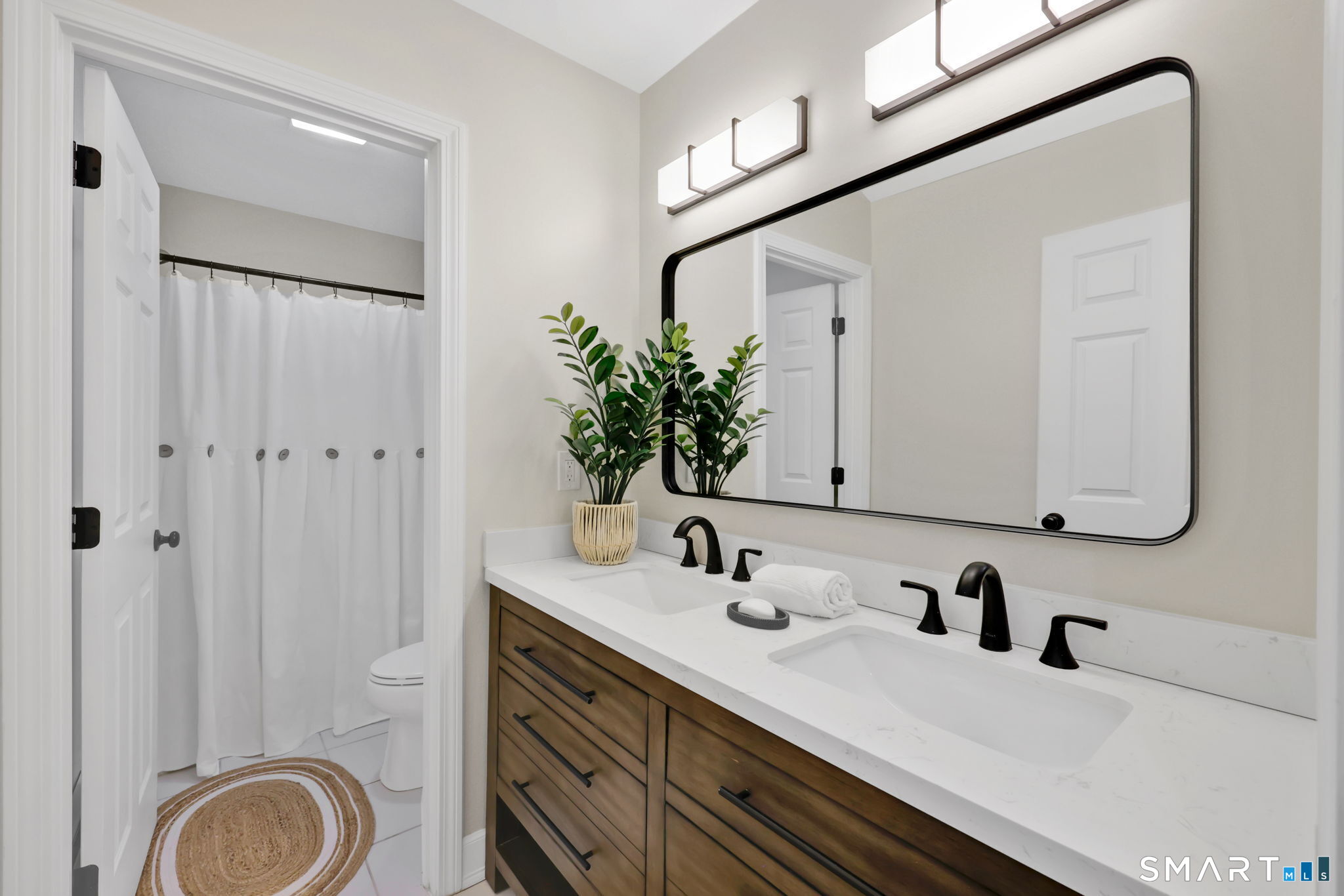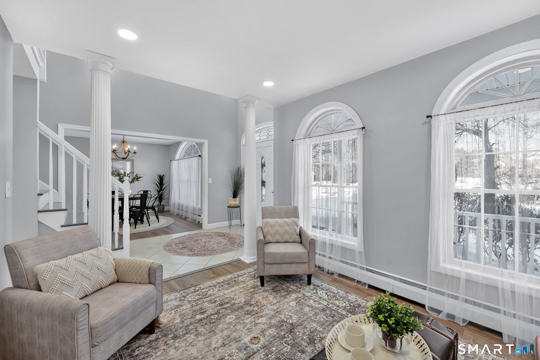 Welcome home to this spacious 5 bedroom, 4.5 bath colonial tucked away on a quiet cul-de-sac in a desirable Bloomfield neighborhood. A dramatic two-story foyer welcomes you, flanked by a formal living room and dining room ideal for both everyday living and entertaining. The updated kitchen features stylish gray cabinetry, granite countertops, and a large peninsula for casual dining, along with an eat-in area perfect for informal meals or morning coffee. Open to the family room, the space flows seamlessly to the deck through sliding doors, creating an inviting indoor-outdoor connection. The main level also includes a bedroom with an updated en-suite bathroom, offering flexible living options. Upstairs, the primary suite features a generous walk-in closet and a beautifully updated bathroom with a soaking tub and separate shower. Three additional bedrooms include two that share a hall bath, plus a spacious bedroom with its own updated en-suite bath at the end of the hallway. The fully finished lower level adds valuable living space with recessed lighting ideal for a media room, home office, gym, or recreation area. Outside, enjoy a private, tree-lined backyard setting. Additional highlights include an attached two-car garage, central air, new boiler installed in 2025, fresh paint, new lighting, and more. Conveniently located near shopping, highways, golf courses, and amenities. This home is truly move-in ready. **Highest and Best Offers Due Monday 2/9 by 6pm**