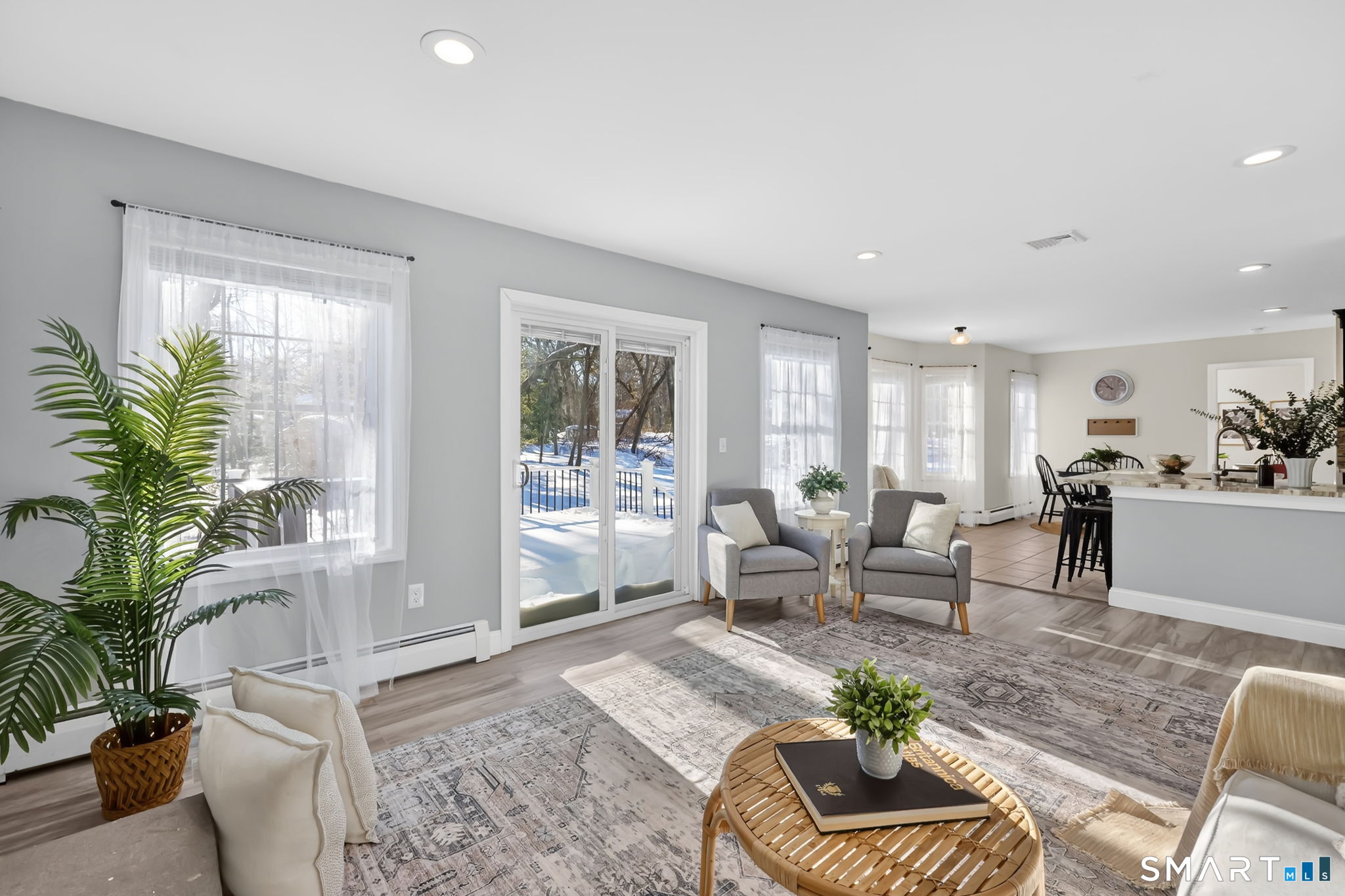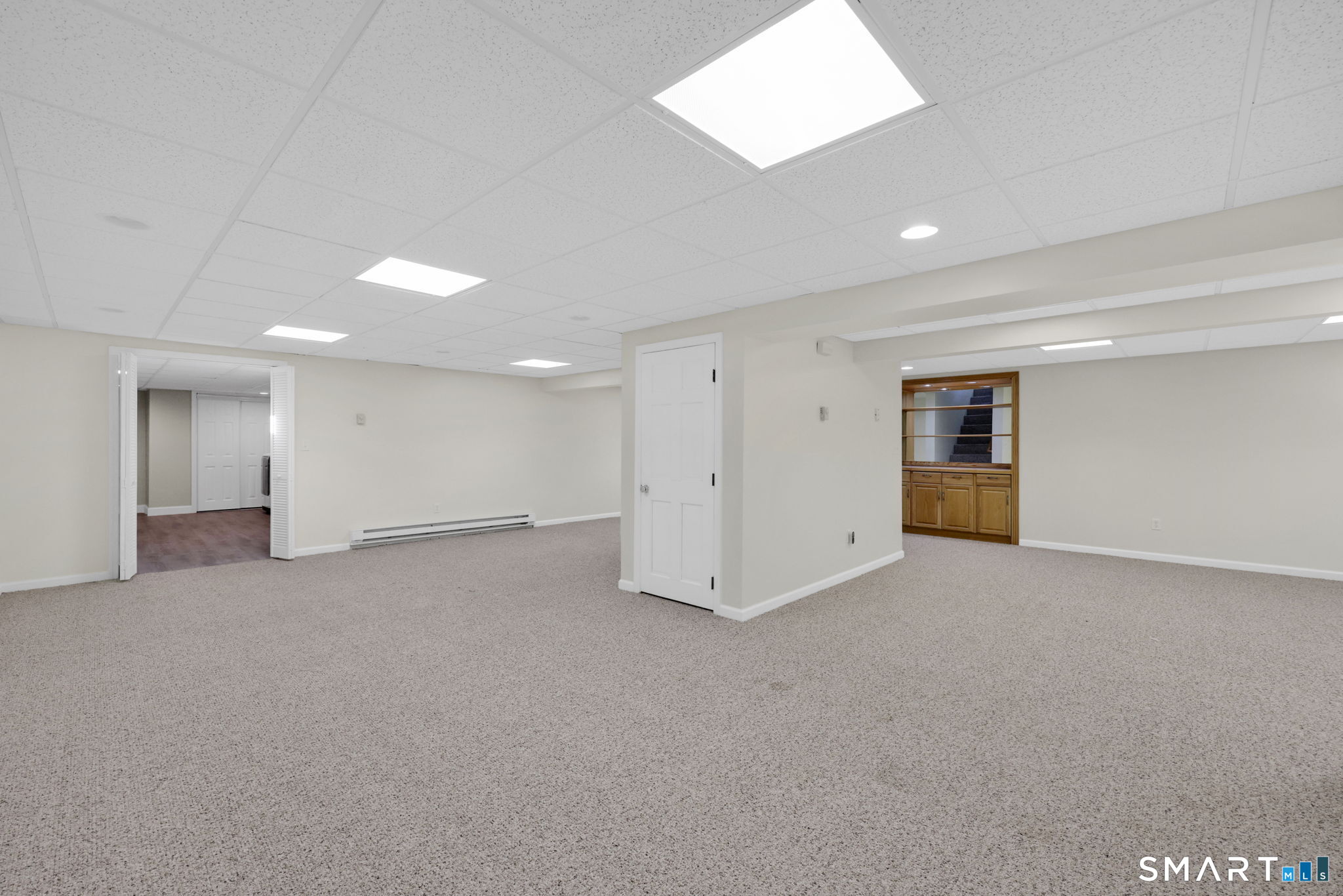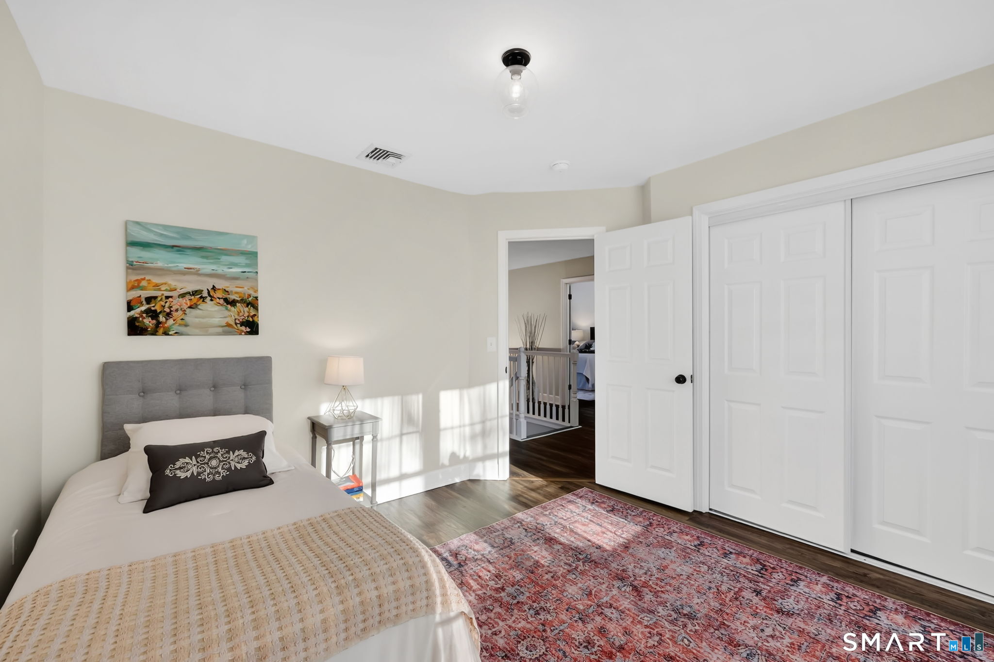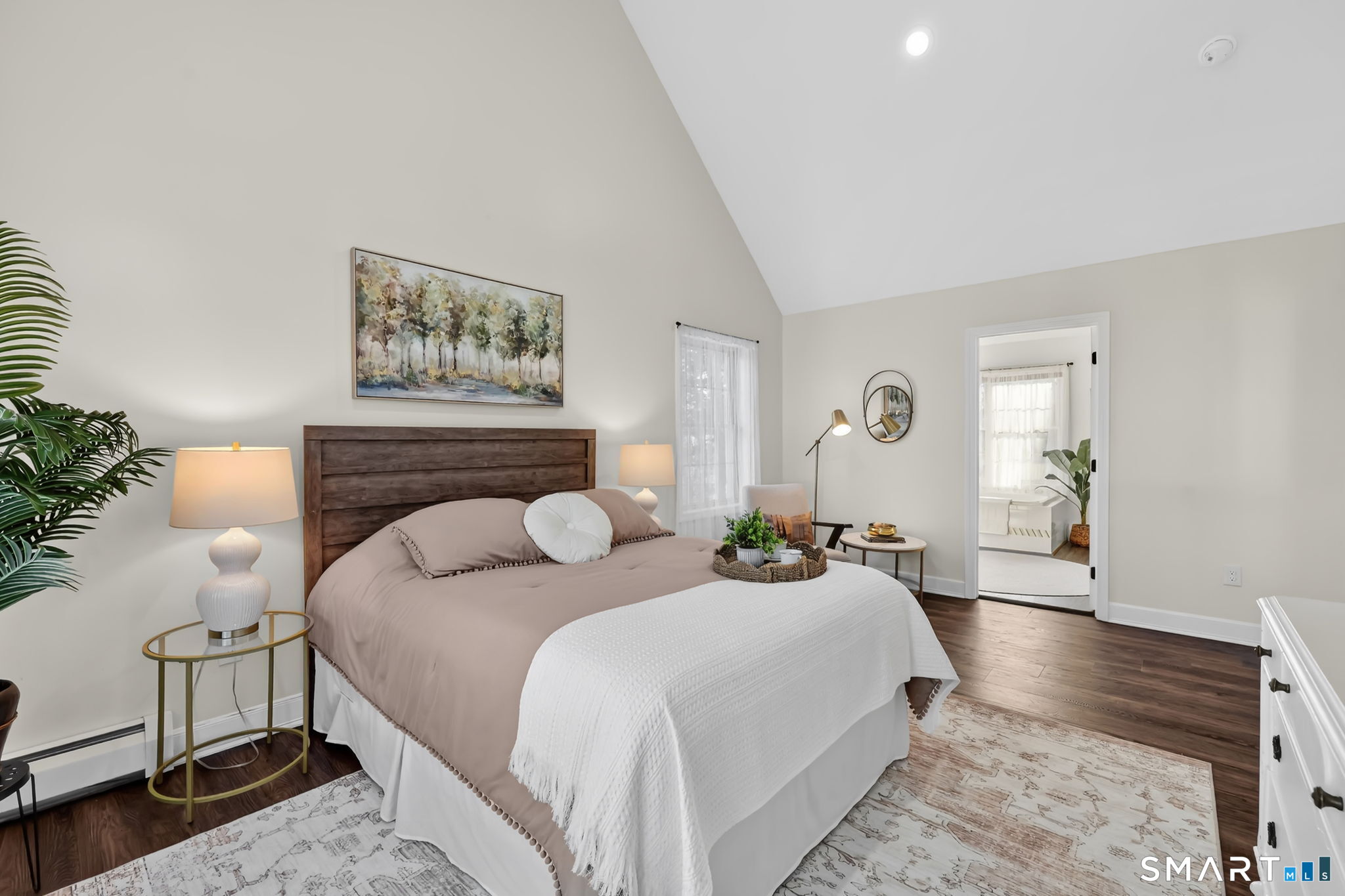 Welcome home to this spacious 5 bedroom, 4.5 bath colonial tucked away on a quiet cul-de-sac in a desirable Bloomfield neighborhood. A dramatic two-story foyer welcomes you, flanked by a formal living room and dining room ideal for both everyday living and entertaining. The updated kitchen features stylish gray cabinetry, granite countertops, and a large peninsula for casual dining, along with an eat-in area perfect for informal meals or morning coffee. Open to the family room, the space flows seamlessly to the deck through sliding doors, creating an inviting indoor-outdoor connection. The main level also includes a bedroom with an updated en-suite bathroom, offering flexible living options. Upstairs, the primary suite features a generous walk-in closet and a beautifully updated bathroom with a soaking tub and separate shower. Three additional bedrooms include two that share a hall bath, plus a spacious bedroom with its own updated en-suite bath at the end of the hallway. The fully finished lower level adds valuable living space with recessed lighting ideal for a media room, home office, gym, or recreation area. Outside, enjoy a private, tree-lined backyard setting. Additional highlights include an attached two-car garage, central air, new boiler installed in 2025, fresh paint, new lighting, and more. Conveniently located near shopping, highways, golf courses, and amenities. This home is truly move-in ready. **Highest and Best Offers Due Monday 2/9 by 6pm**