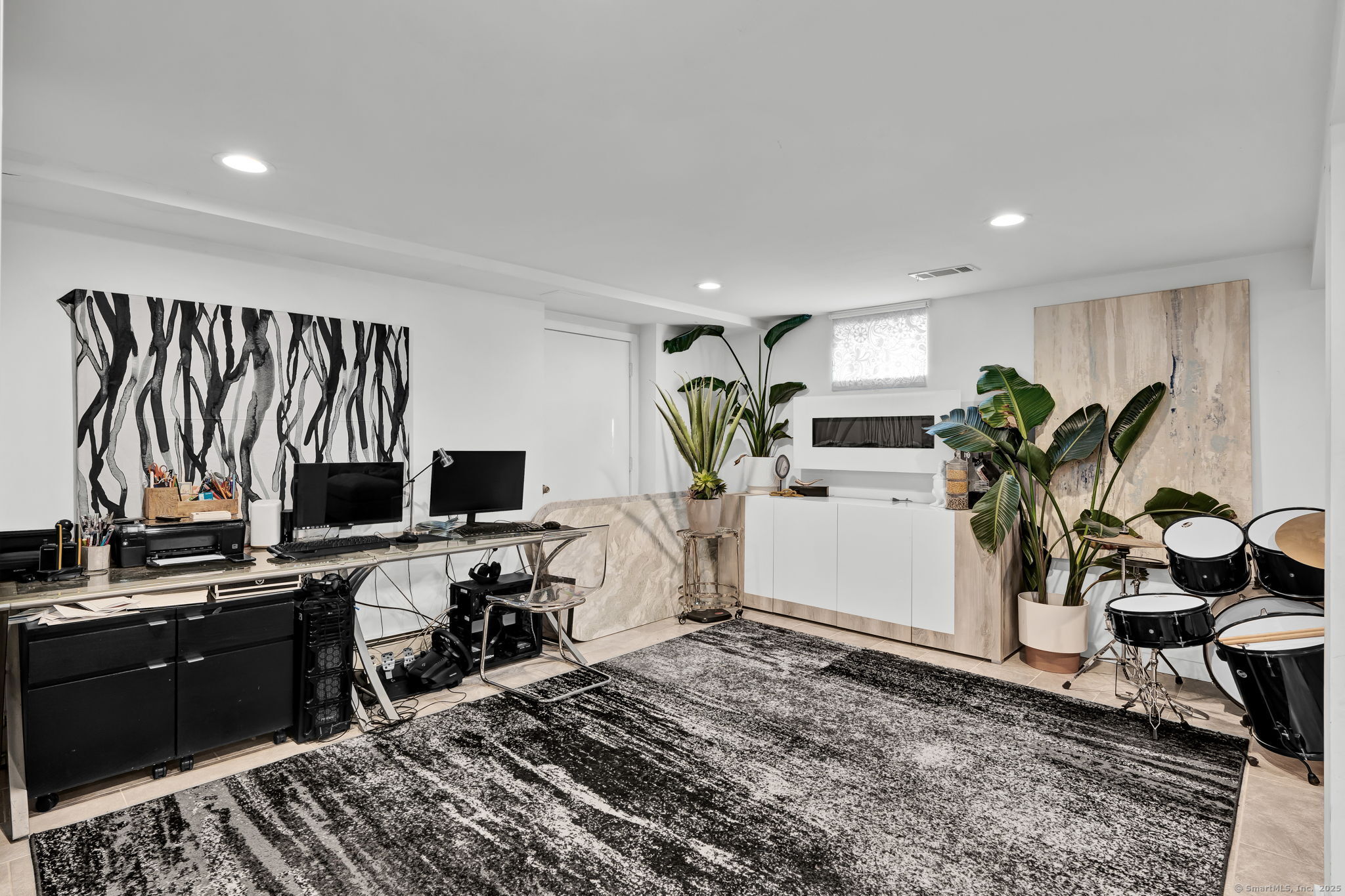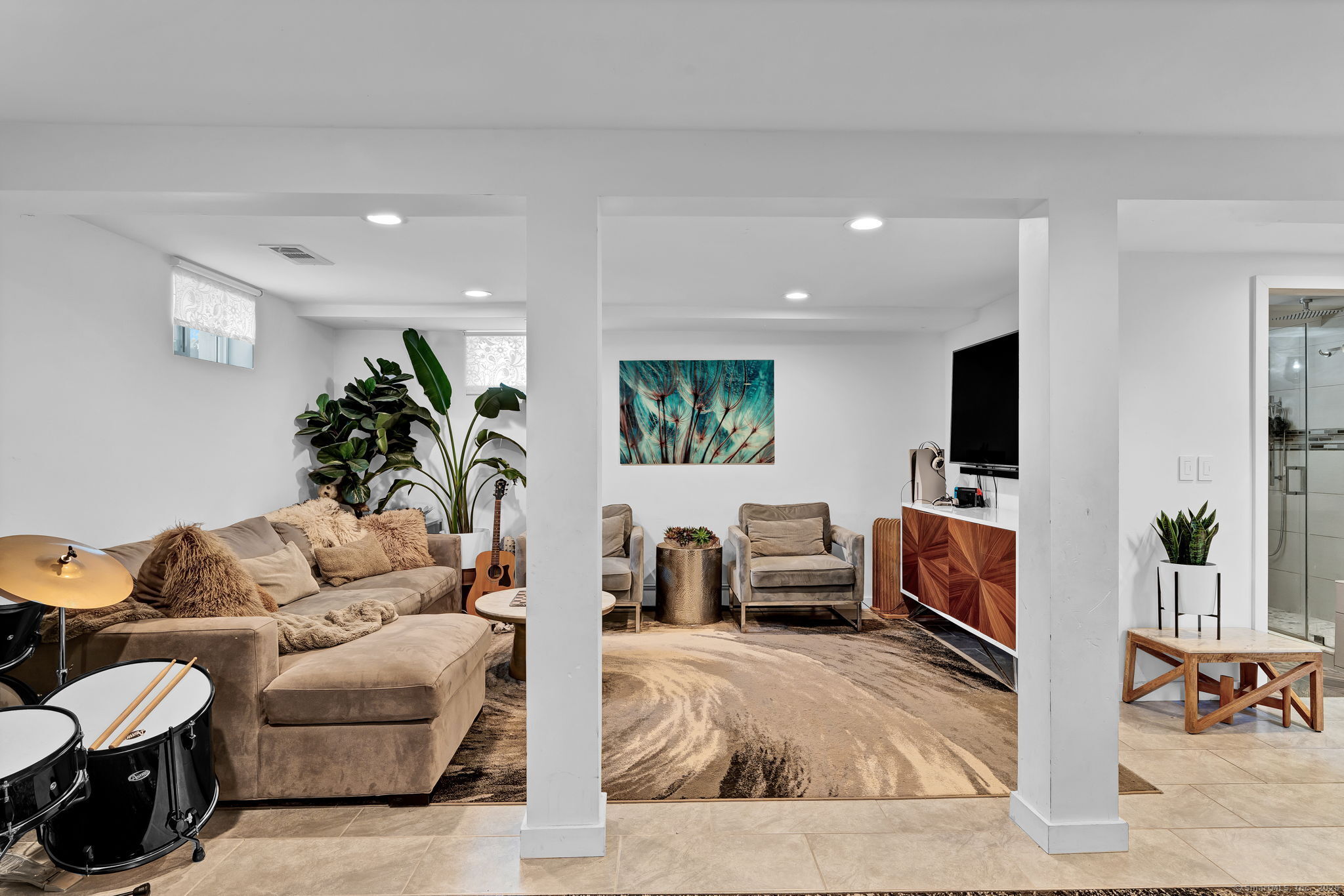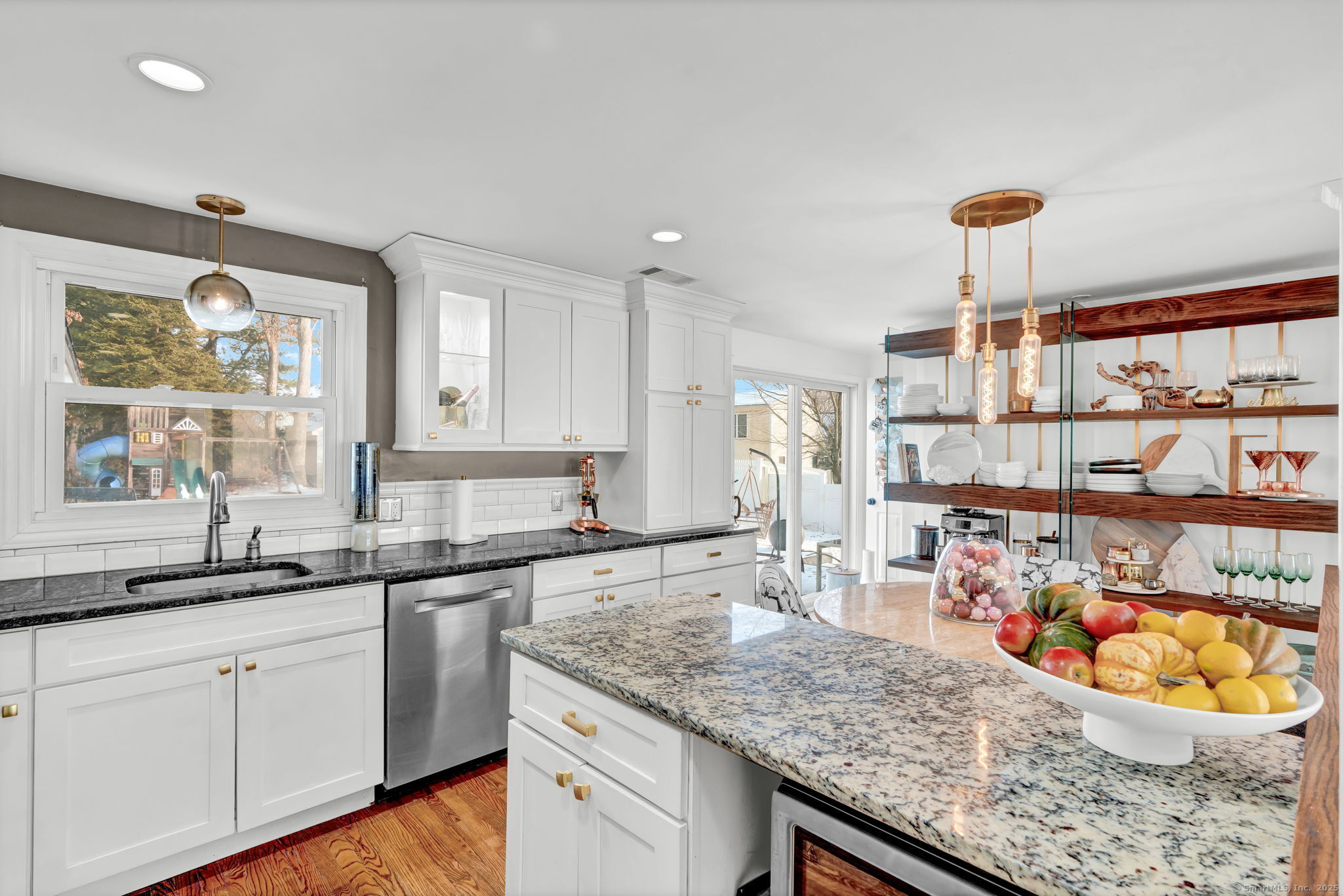 Beautifully renovated 2,000+ sq. ft. ranch offering an open-concept design and stylish updates throughout. The kitchen features white cabinetry, granite countertops, tiled backsplash, stainless steel appliances, and built-in banquette seating, opening directly to the living room with hardwood floors and a marble-finish fireplace. The fully finished lower level adds exceptional versatility, including a walk-in closet, gym area, play or entertainment space, generous storage, and a laundry area complete with sink and folding countertops. Exterior highlights include a 1,000 sq. ft. paver patio with firepit and an oversized, newly constructed two-car garage. Ideally situated near major highways, the Farmington Canal Heritage Trail, and top-rated schools. All applicants must complete tenant screening through SoftScreen, including credit, eviction, and background checks.