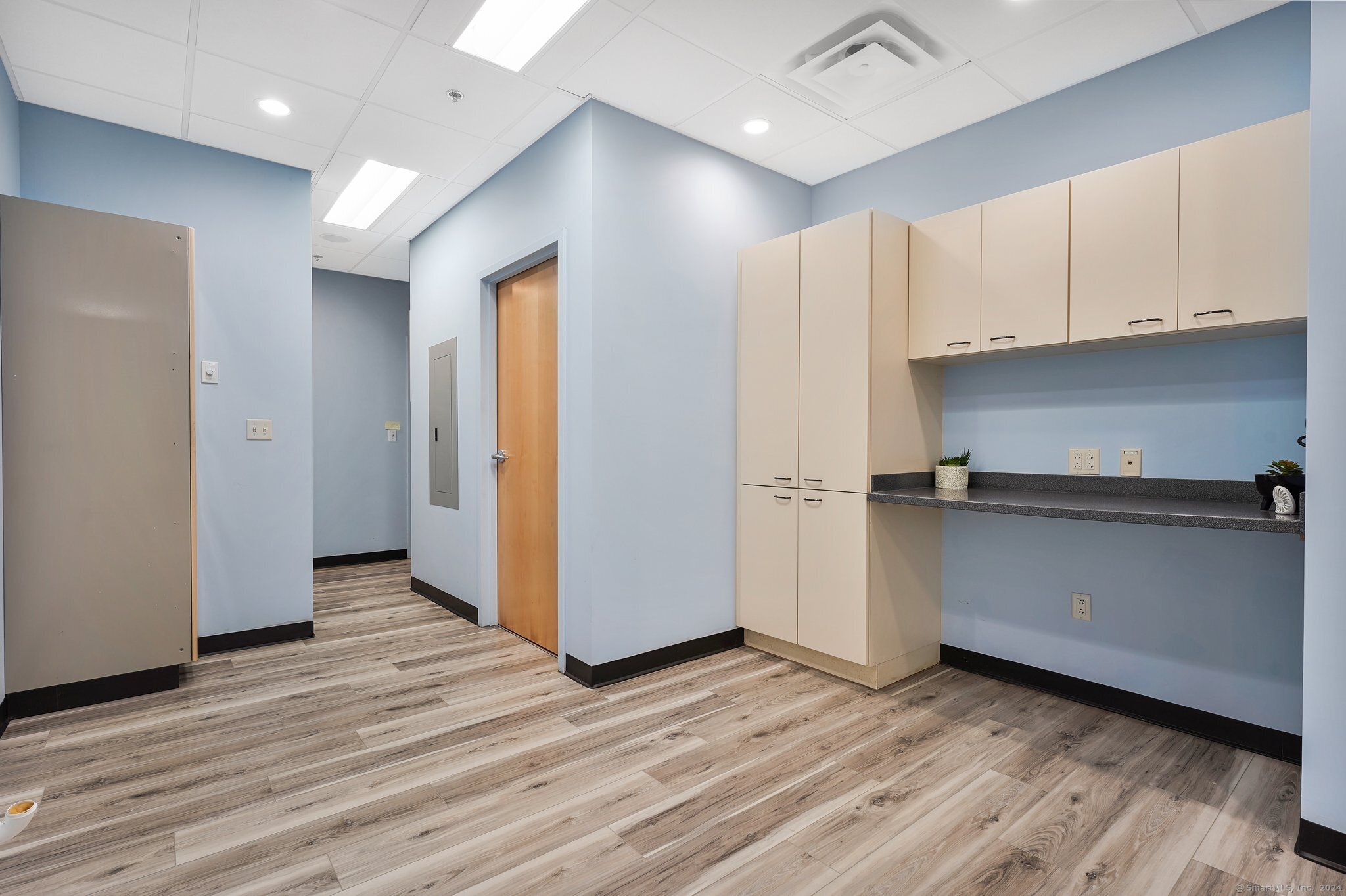 Discover this custom-designed prime 1,995 SF corner office space, now available for lease in the prestigious Trumbull Professional Center. The spacious open office area is equipped with a plumbing line beneath brand-new flooring, making it ideal for medical or dental use. If plumbing is not a necessity office can easily accommodate any other use. A private exam room comes complete with a sink and cabinetry, while an open lab area conveniently leads to a compact kitchen with a refrigerator and wall-mounted cabinets. The unit is pre-wired for a sound system and includes a private office with additional wall cabinetry and a designated file area. This unit also offers a welcoming waiting room and an open reception area featuring granite countertops, cabinetry, and modern track lighting. The space is one of the few in the building that features its own private lavatory with a new toilet. LED lighting throughout, solid wood doors, a sprinkler system, and central air conditioning make for optimal comfort. Conveniently located just a few minutes from the intersection of the Route 25 Expressway and Route 111, this facility offers unparalleled access and visibility. *Ample parking* *Please see agent remarks**Landlord open to 1-2 months of free rent at start of lease*