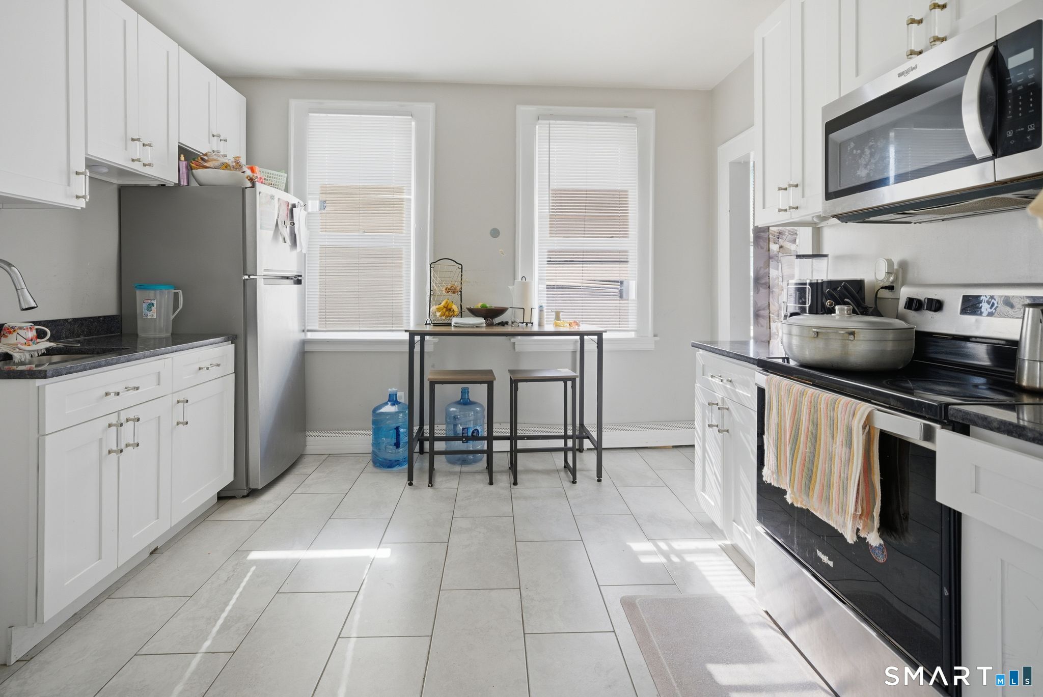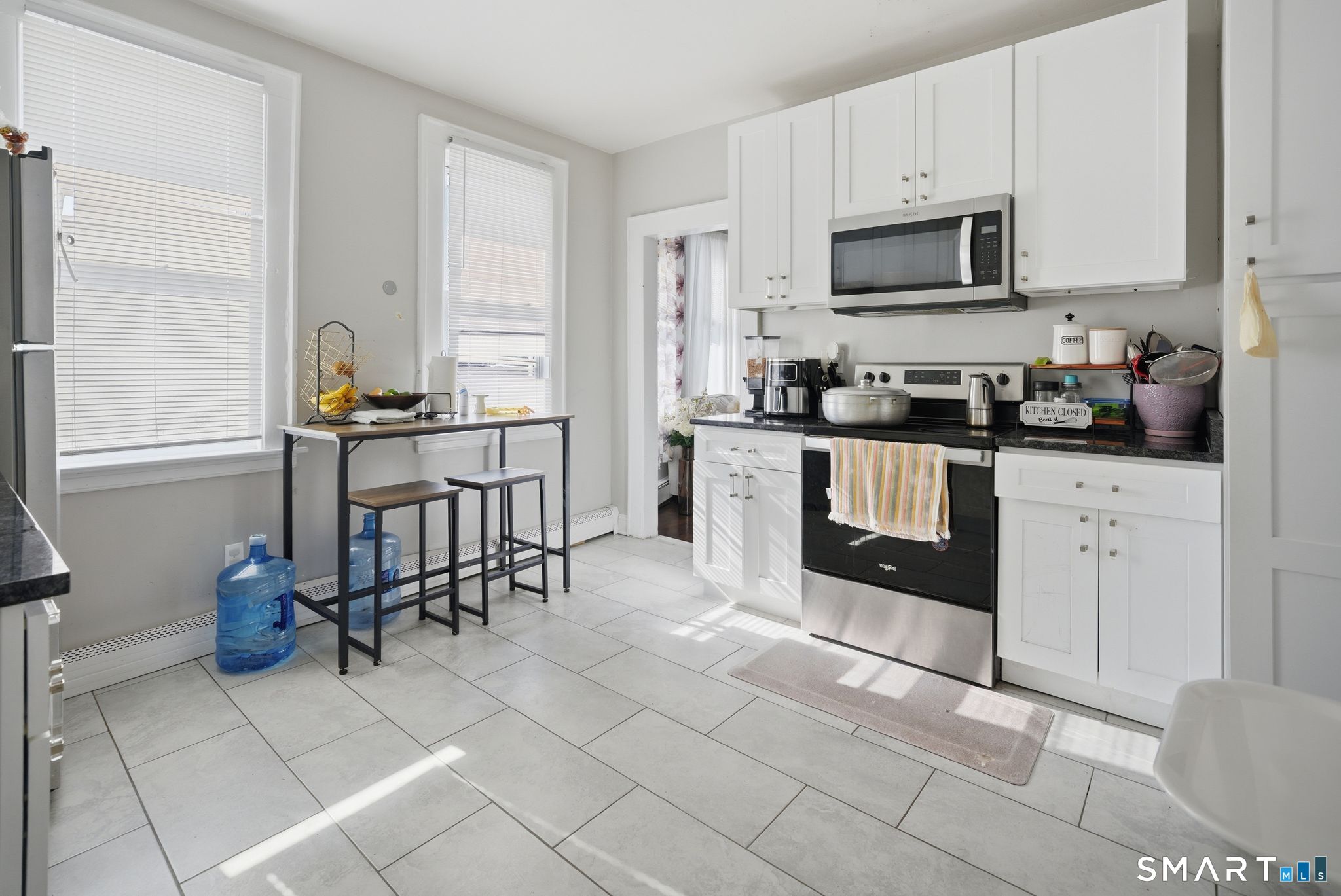 A beautiful gem of a large two-family home, gracefully set just above street level, offering a commanding presence on a prominent corner lot. Wonderfully restored, each unit features newly refinished hardwood floors and a modern kitchen with granite countertops. The butler's pantry includes washer and dryer hookups, adding both charm and convenience. The dining and living rooms flow effortlessly together, with classic double doors providing elegant separation from the front living area. Off the dining room, the bedrooms and bath are thoughtfully set apart from the main living space, offering privacy and comfort, with generously sized rooms throughout. Conveniently located between New York and New Haven along the Connecticut shoreline, Bridgeport is a vibrant, bustling community steeped in history, making this property an excellent opportunity for both owner-occupants and investors alike.