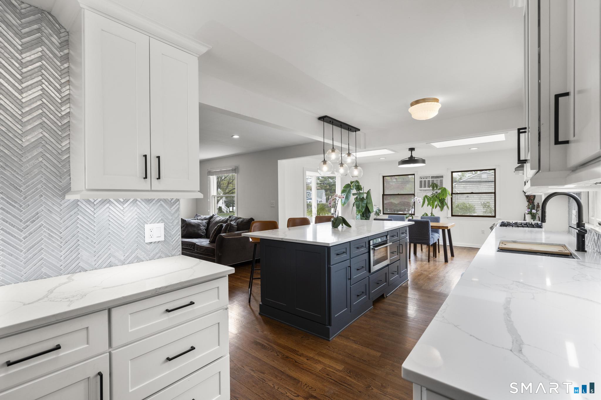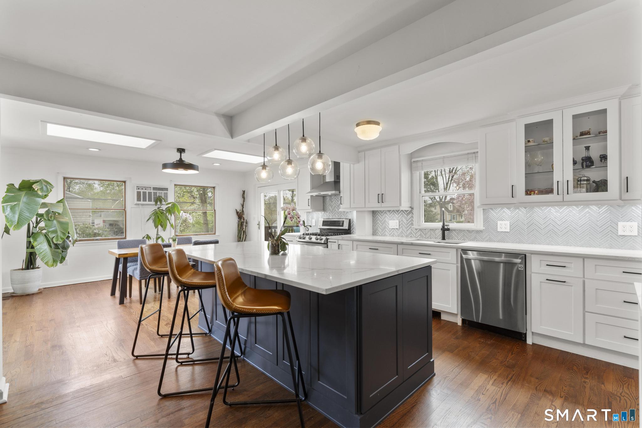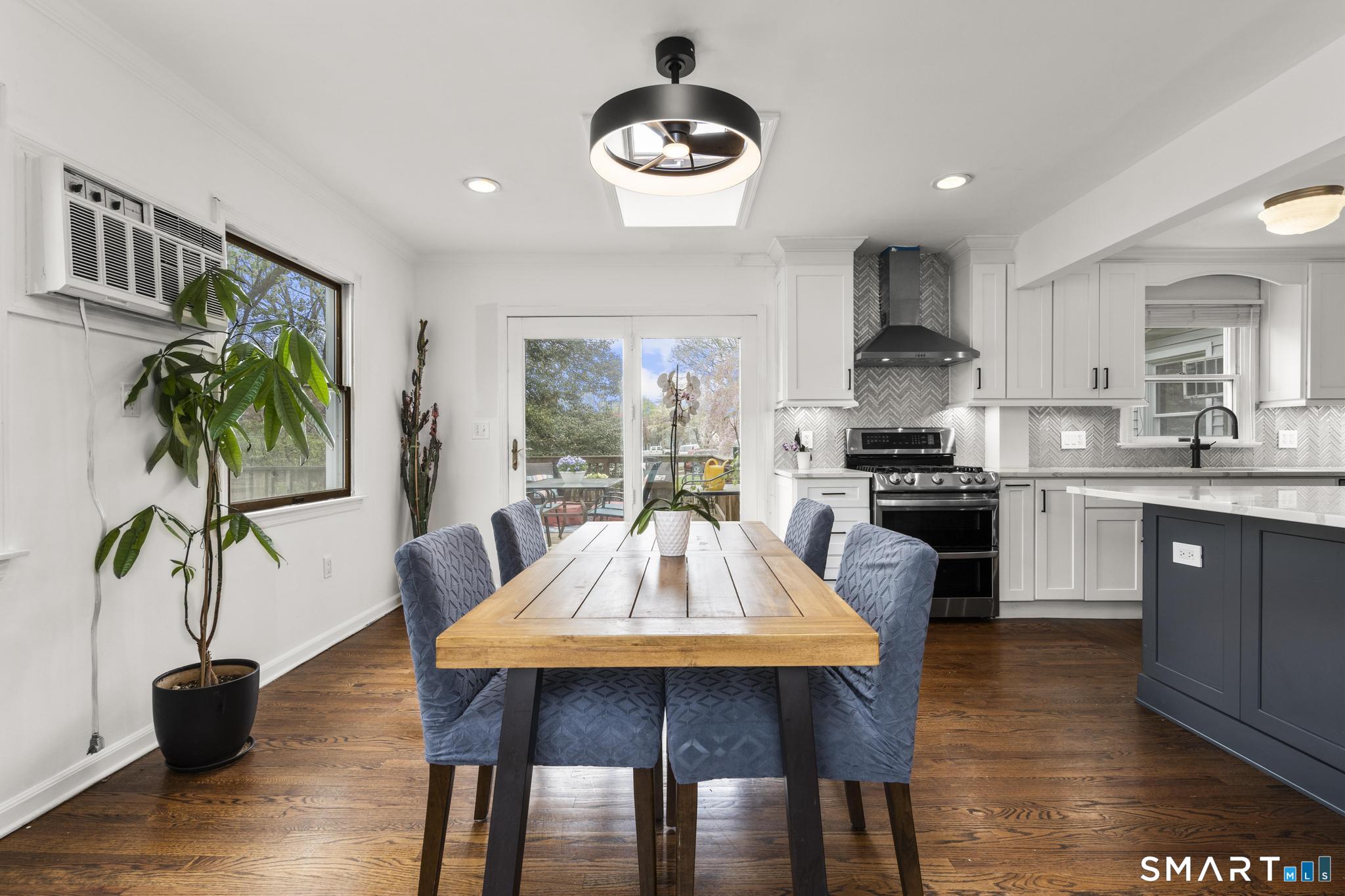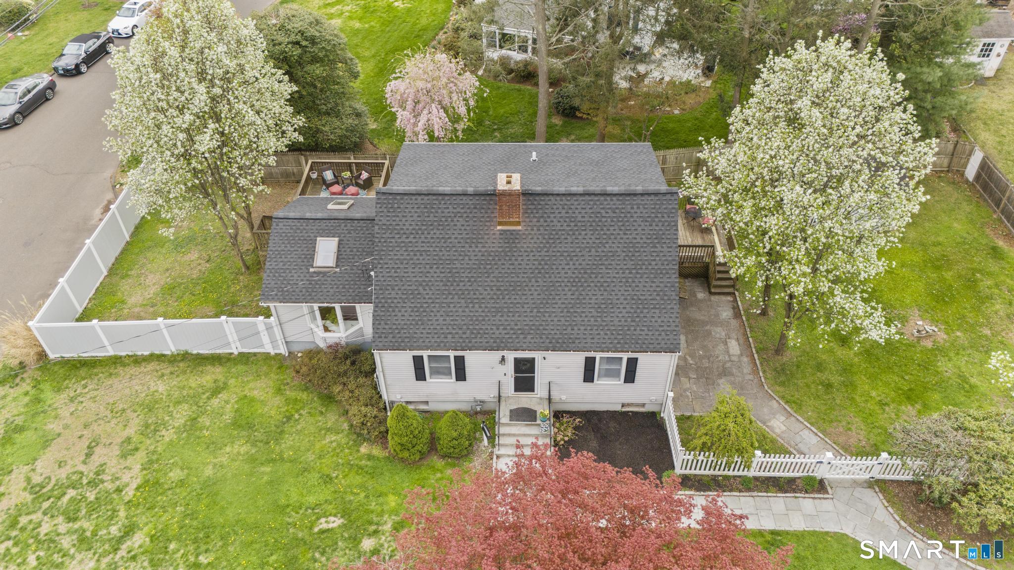 Location, Location, Location! Set on a level .22-acre corner lot in coveted Upper Springdale, this beautifully renovated 4 bedroom, 3 bath Cape offers a blend of charm & modern updates. Featuring a stunning open-concept living, dining, and kitchen area anchored by a dream kitchen with oversized island, quartz counters, white shaker cabinets, stainless steel appliances, and hardwood floors throughout. The sun-filled dining area w/ skylights & a slider that flows to a spacious deck overlooking the private, fully fenced yard-ideal for entertaining. A heated sunroom with vaulted ceilings offers flexible space for a den or home office, complete with a second deck and patio overlooking a private side yard. The main level includes two bedrooms and a full bath. Upstairs features two large bedrooms and a beautifully updated full bath. The expansive unfinished basement offers incredible potential for a future gym, office, or in-law setup, with a full bath (sold as is), cedar closet, & ample storage. Additional highlights include a new natural gas furnace with whole-home humidification system, new roof, irrigation system, city water/sewer, and a large shed w/electricity. Convenient to schools, shopping, Merritt Parkway, and Metro-North.