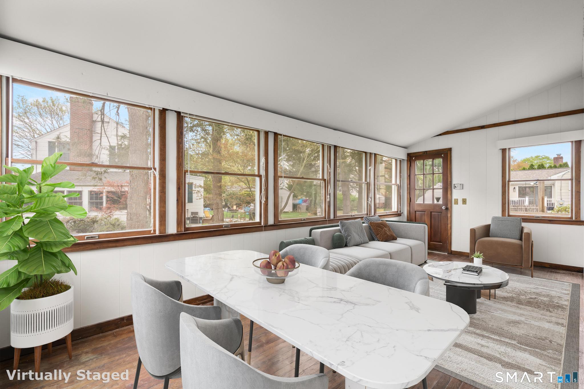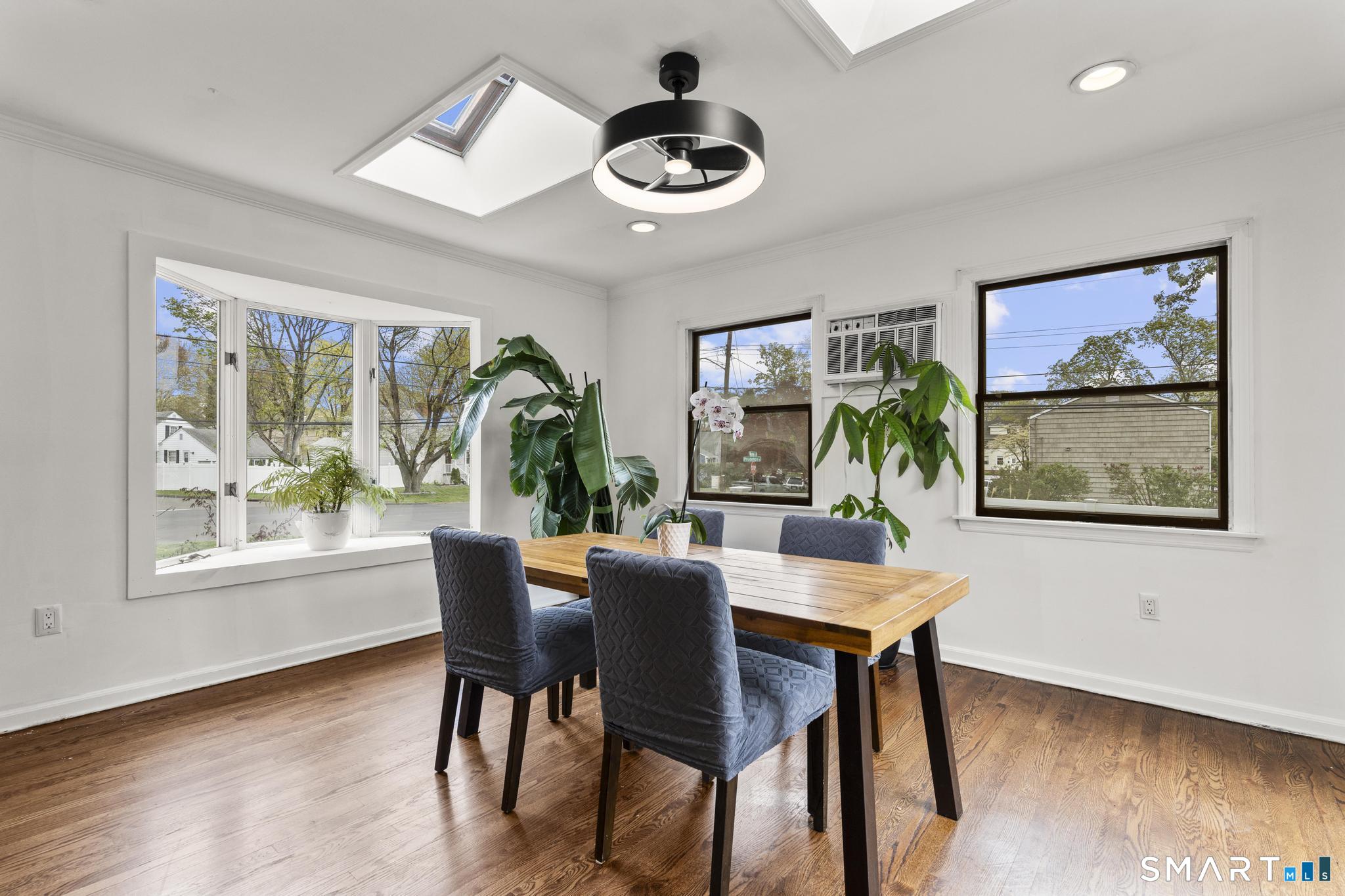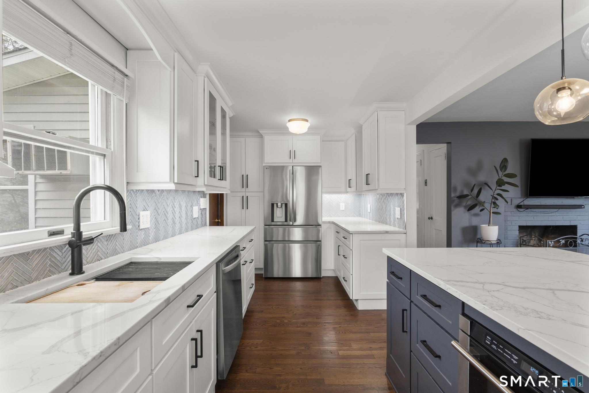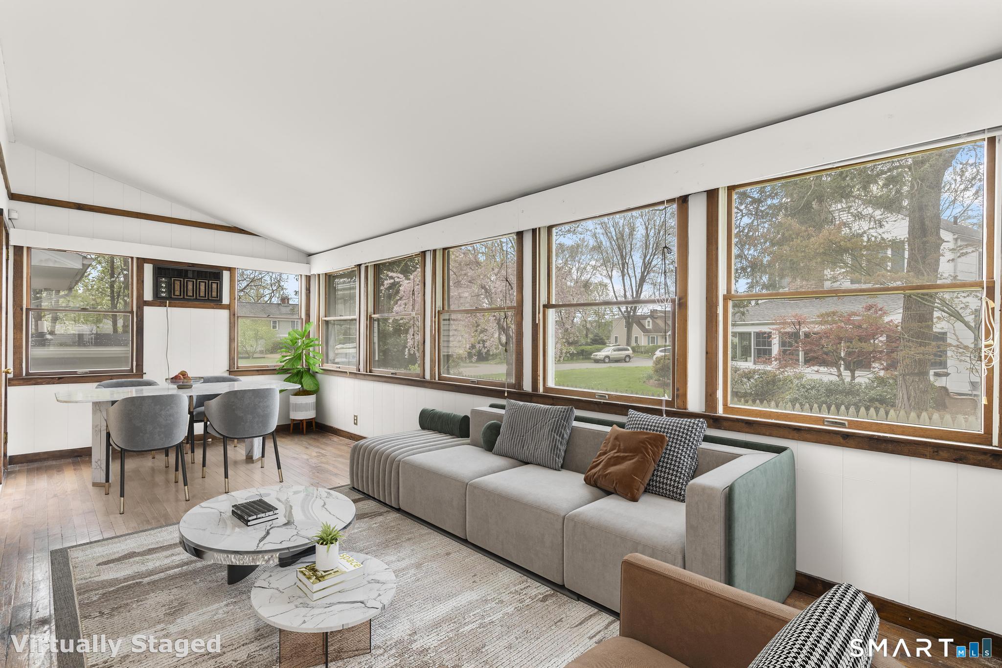 Location, Location, Location! Set on a level .22-acre corner lot in coveted Upper Springdale, this beautifully renovated 4 bedroom, 3 bath Cape offers a blend of charm & modern updates. Featuring a stunning open-concept living, dining, and kitchen area anchored by a dream kitchen with oversized island, quartz counters, white shaker cabinets, stainless steel appliances, and hardwood floors throughout. The sun-filled dining area w/ skylights & a slider that flows to a spacious deck overlooking the private, fully fenced yard-ideal for entertaining. A heated sunroom with vaulted ceilings offers flexible space for a den or home office, complete with a second deck and patio overlooking a private side yard. The main level includes two bedrooms and a full bath. Upstairs features two large bedrooms and a beautifully updated full bath. The expansive unfinished basement offers incredible potential for a future gym, office, or in-law setup, with a full bath (sold as is), cedar closet, & ample storage. Additional highlights include a new natural gas furnace with whole-home humidification system, new roof, irrigation system, city water/sewer, and a large shed w/electricity. Convenient to schools, shopping, Merritt Parkway, and Metro-North.