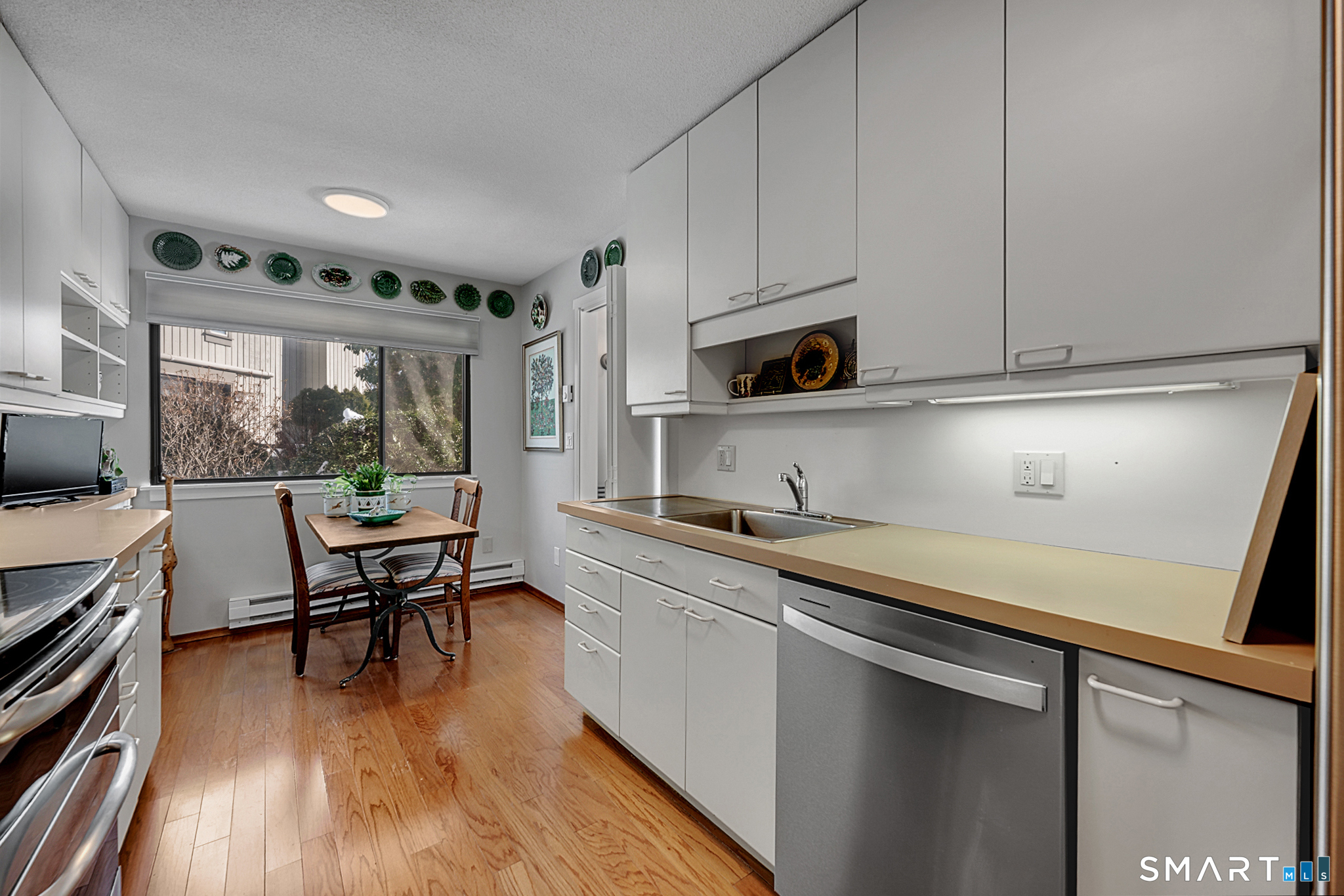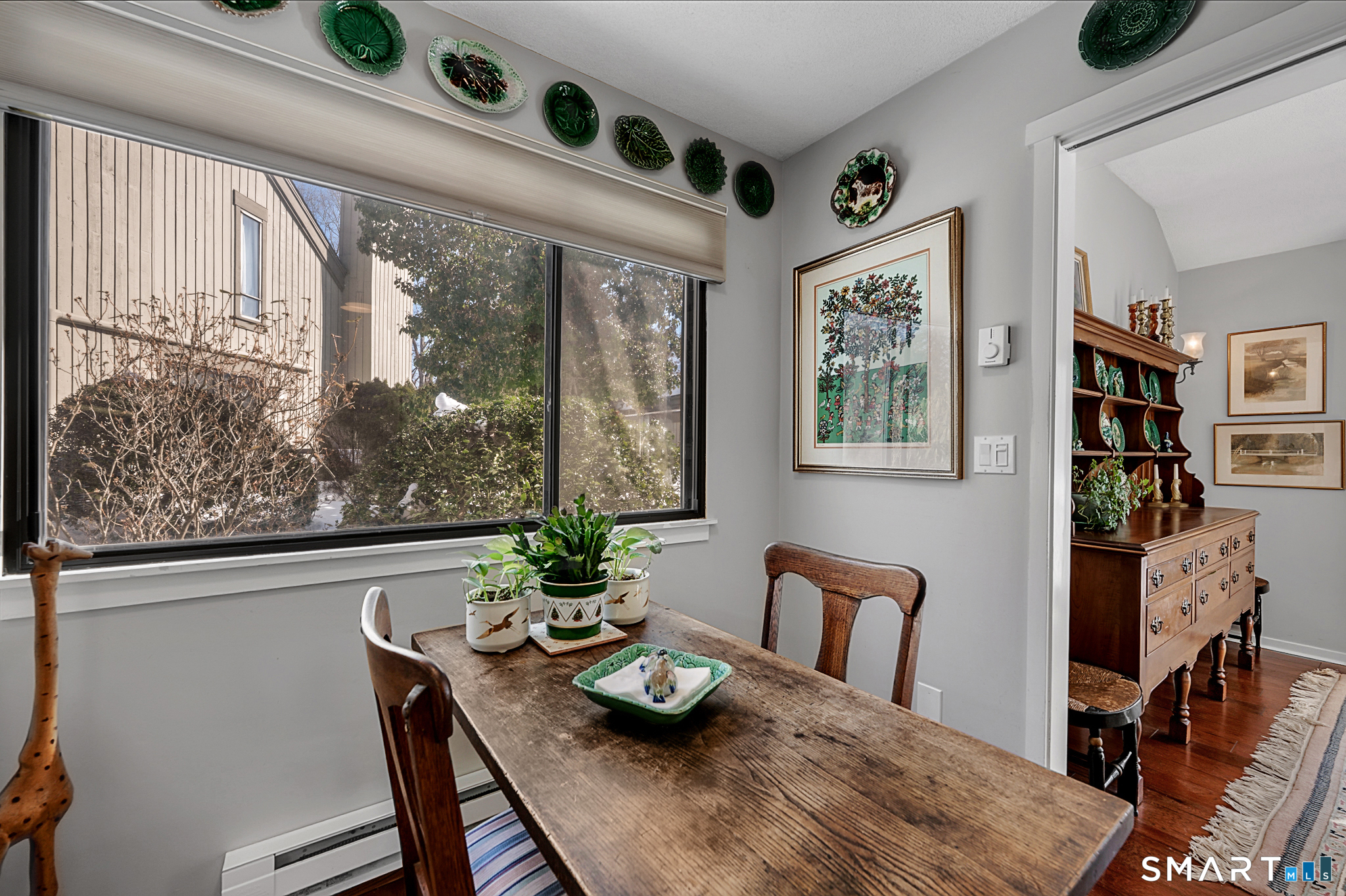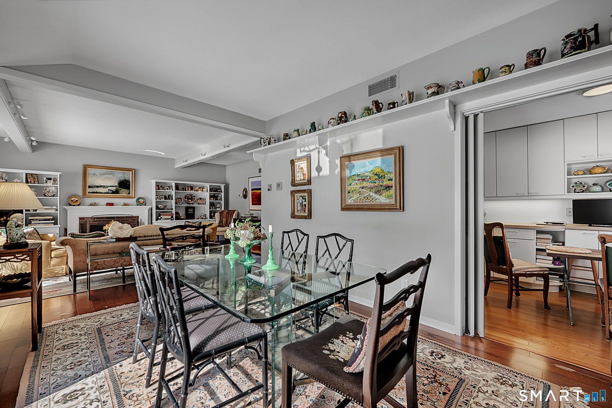 Desirable Berkshire end unit situated close to town, featuring a level entry and lawn with a short, easy stroll to the end garage. The open and airy living space enjoys picturesque views of North Pond. A light-filled living room with fireplace and built-ins opens to the dining room; both offer sliders to a generously sized back patio with level lawn and tranquil pond views. The eat-in kitchen includes stainless steel appliances and plenty of cabinet and counter space. The home offers three bedrooms and two full baths, including a primary bedroom with generous closet space, a charming window seat and a full bath. Two additional bedrooms are well-sized with large closets. An unbeatable location-walk to activities, the meeting house, and amenities just steps away. Enjoy peaceful strolls along the ponds and all that Heritage Village has to offer, an award-winning 55+ community with resort-style amenities including multiple pools, golf, fitness center, tennis and pickleball courts, scenic walking trails, and a wide variety of clubs and activities.