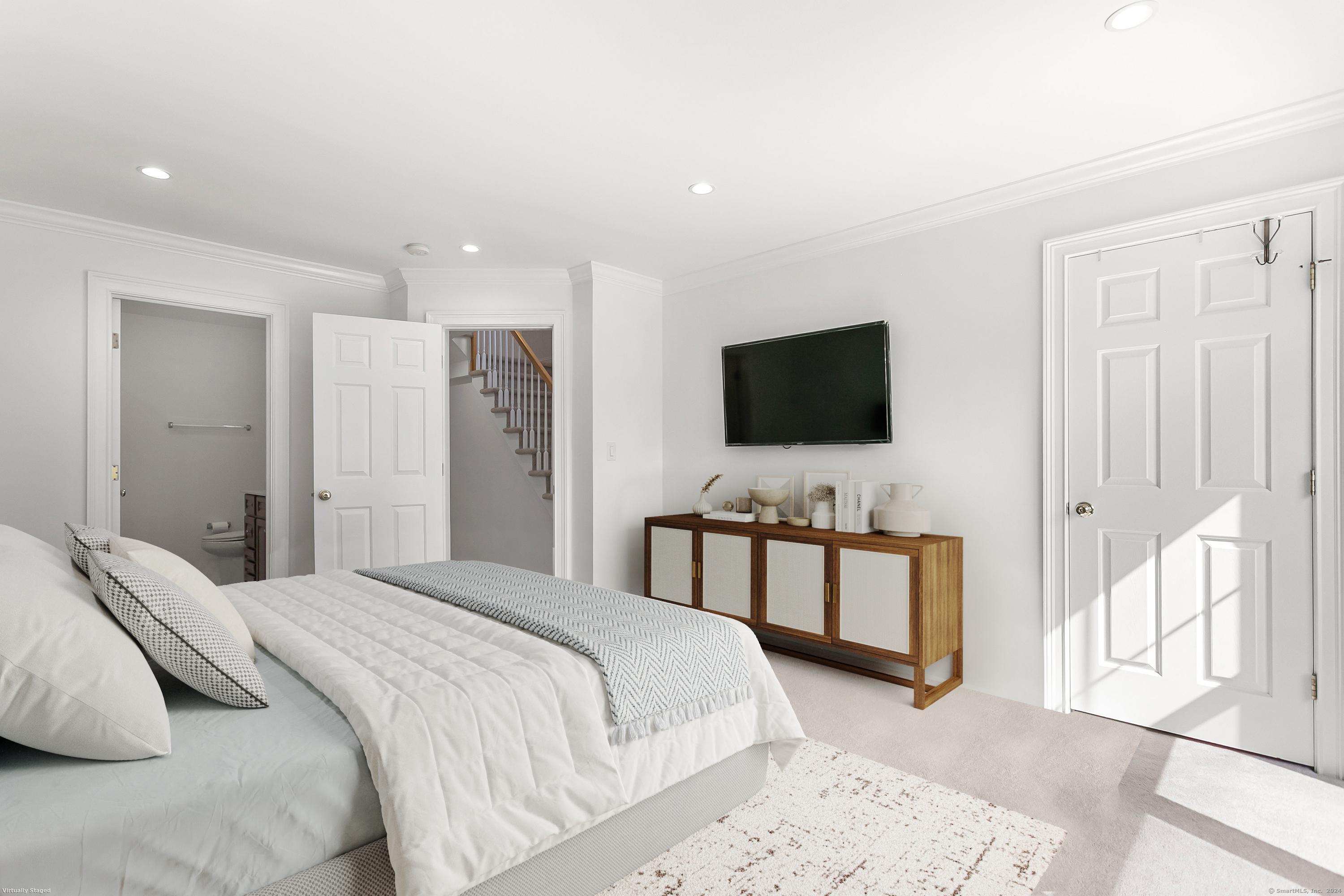 Exceptionally Elegant Townhome with Ultra-Stylish Loft and Finished Lower-Level! Ideally situated less than 1-mile from Downtown Stamford's boutiques and restaurants, this 2+BR/2.5BA property delivers further convenience with a quick commute to Metro North to NYC. Emanating sophistication with classic exterior stonework and impeccable landscaping, the residence is both impressive and memorable. Designed with modern lifestyles in mind, the main level features hardwood flooring, crown molding, luminous recessed lighting, powder room, and a spacious living room. Adjoining the picture-perfect formal dining room, the eat-in kitchen boasts granite countertops, white cabinets, white subway tile backsplash, and a gas stove. Oversized for maximum comfort, the second-floor primary bedroom delights with a walk-in closet and an en suite featuring a jetted tub, separate rain shower, and dual sinks. One extra bedroom also has a walk-in closet and an attached full bathroom. Working from home is elevated to new heights in the third-floor loft, which surprises with luxurious woodwork, chic built-ins, and a meditation/reading nook. Offering even more flex space, the lower-level boasts a large family room and closet. Additional considerations include an attached one-car garage, laundry area, deck, patio, close to parks, I-95, and entertainment, and so much more! Take advantage of this rare opportunity to occupy a move-in ready townhome just steps from Downtown Stamford.