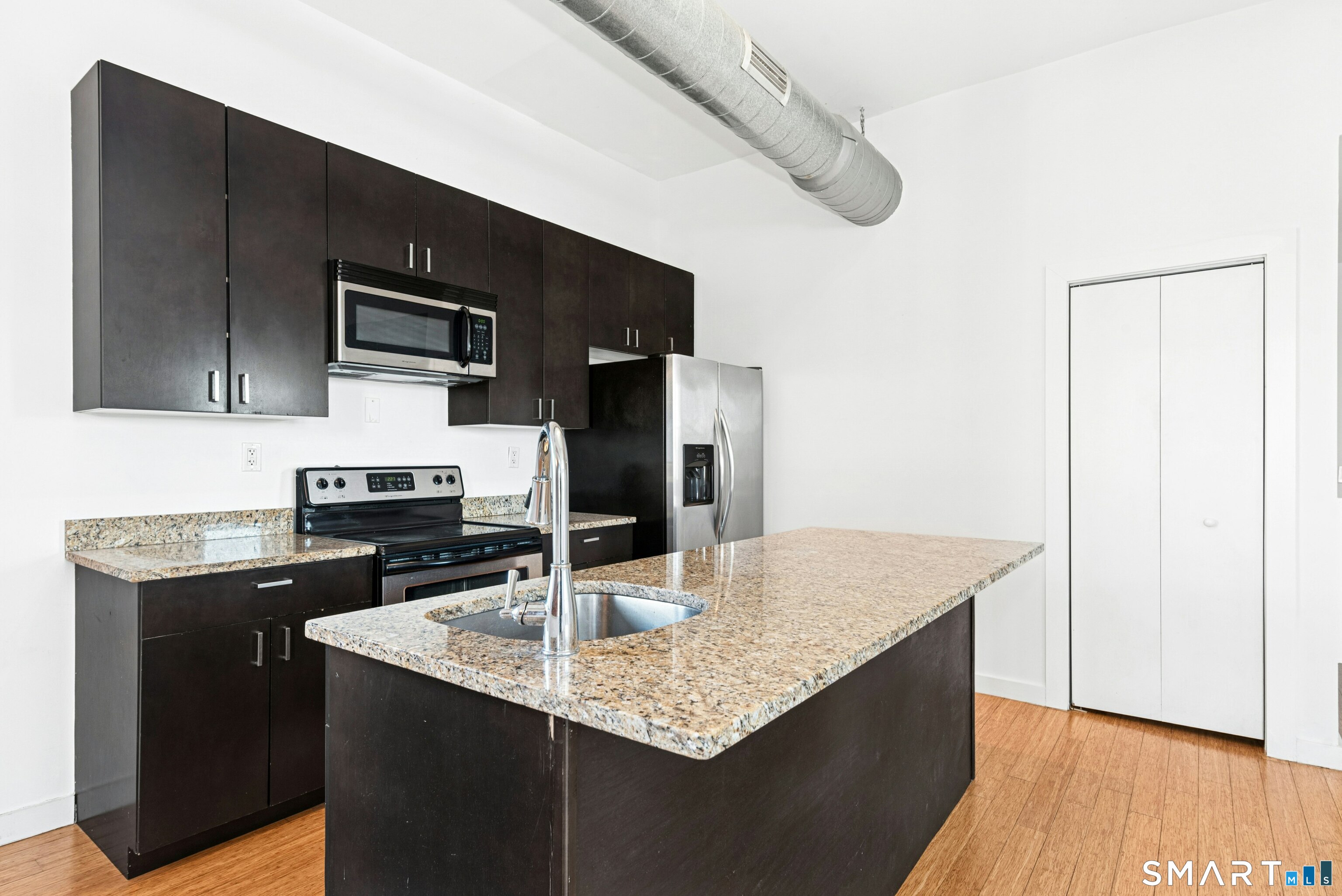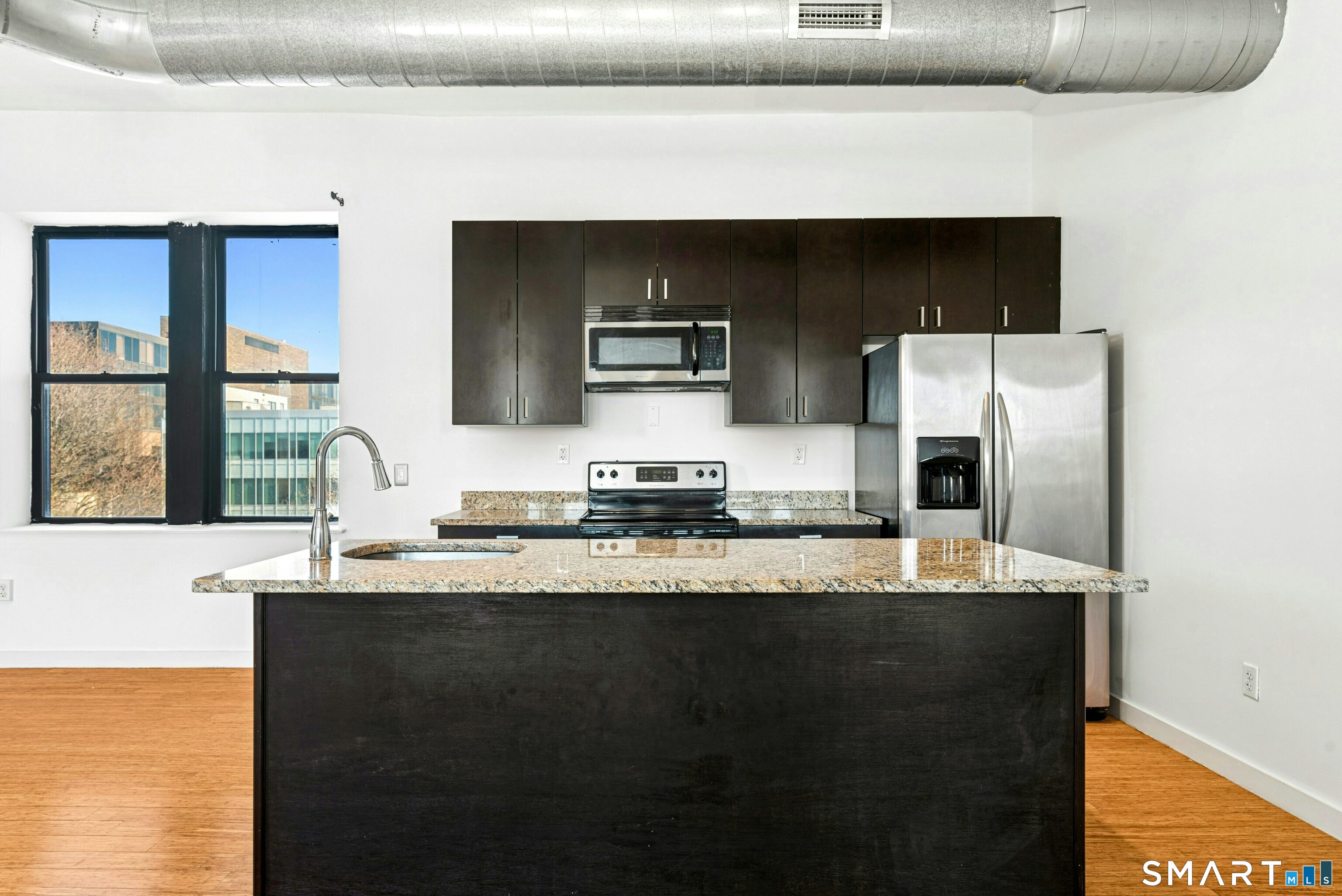 Downtown Bridgeport Loft Apartment in a prime location surrounded by major corporate offices, colleges, restaurants, and city amenities, with easy access to the Webster Arena & Port Jeff Ferry. This well-maintained one-bedroom, one-bath corner loft is located on the 4th floor and offers 910 sq ft of open, sun-filled living space. Features include exposed brick, high ceilings, industrial details, oversized windows, an open-concept kitchen with granite countertops and stainless steel appliances, in-unit washer and dryer, and fresh paint throughout. Additional highlights include a brand-new HVAC system installed June 2023, one assigned parking space, and an immaculately maintained building with security systems. Strong rental demand in the downtown corridor makes this an excellent investment opportunity or low-maintenance owner-occupied option. Elevator building. Move-in ready.