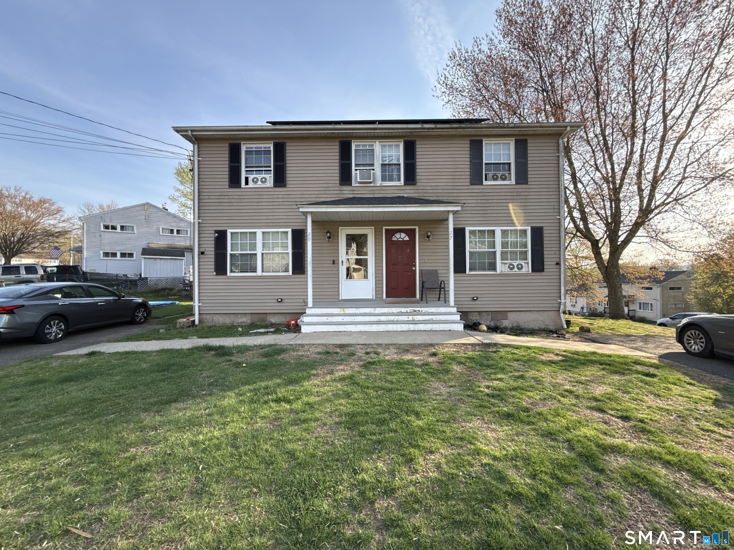 27 McLaughlin Terrace is a spacious two family home situated on a comer lot, Located in the hill top neighborhood of Derby, CT. One unit consist of 2 bedrooms, & 1 full bath. The other has 3 bedrooms, & 1 full bath. Each unit is side by side with their own small paved driveway. The left side unit has been modestly updated over the years with minimal work needed. the second unit could use some minor updates to maximize the homes potential. This property is on gas utilities with solar panels in place for both units. The roof and solar panels are newer. This home is 5 minutes away from the route 8, route 34 connector and route 15, the Merritt parkway. Also in very close proximity to parks, restaurants, gas stations, shop rite and big y shopping centers, and much more. only 20 minutes to Bridgeport, Milford, New Haven, or Waterbury.