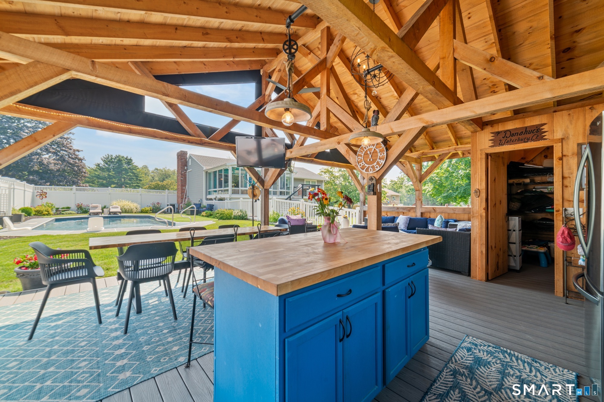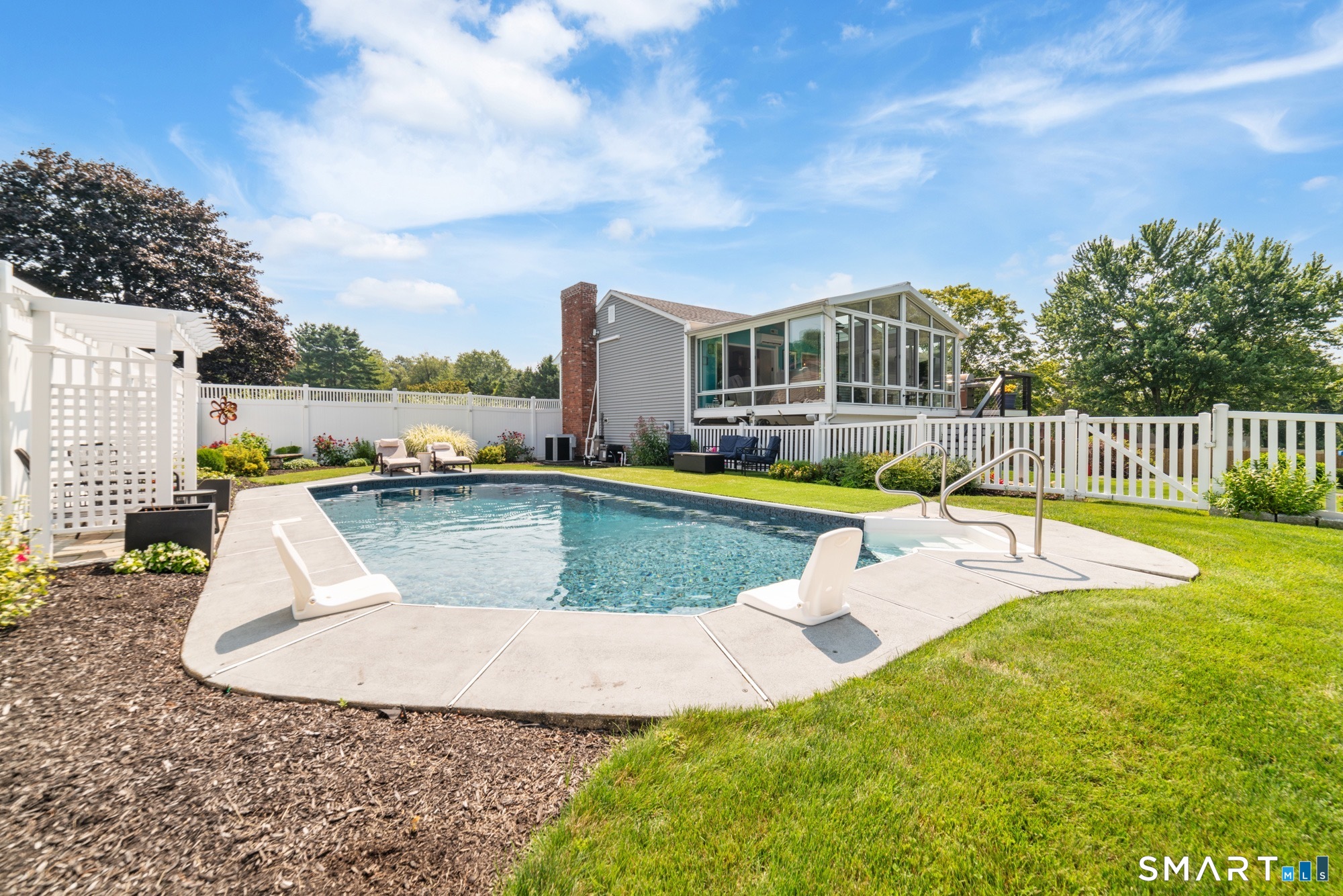 Welcome to 221 Charter Oak Drive, a stunning 3-bed, 2-bath single-family home nestled on a spacious 1.39-acre lot in desirable Watertown, CT. The thoughtful layout offers abundant living space, an open floor plan with a heated and cooled 4 season room bringing in natural light with panoramic outdoor views. The functional floor plan is ideal for everyday living and/or entertaining. Updates are endless to include 4 zone heating system, 5 year old roof and so much more. Continue downstairs to your finished lower level complete with a full bath, jacuzzi tub and a 2 car garage. Bring yourself outdoors and the magic continues with your in ground pool, post and beam outdoor pool house complete with outdoor kitchen, with stainless steel appliances, fire pit, jacuzzi and half bath. Additionally there is a detached 6 car garage for your vehicle storage or flex space for your liking. Enjoy the privacy of a generous lot while still being close to local amenities, schools, and commuter routes. Don't miss your chance to make this home your own!